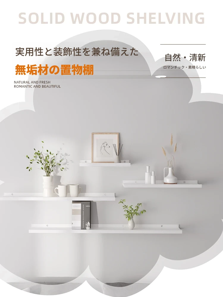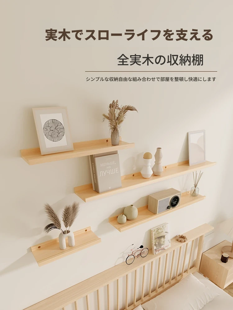 ホワイトウォール用天然木製シェルフ - ベッドサイドやリビング、キッチンでの収納と装飾に最適な一字型棚板!おしゃれで機能的な壁掛けシェルフで、あなたの空間を美しく整理整頓しましょう。