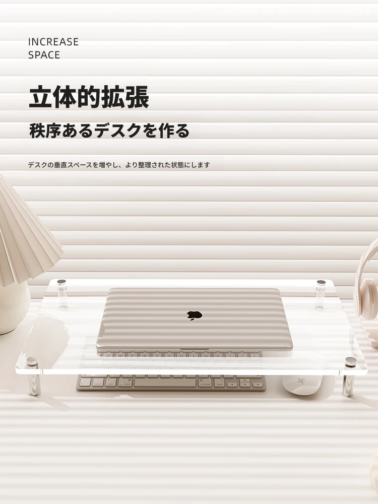 透明アクリルデスクトップパソコンスタンド - おしゃれで機能的な収納ラック!オフィスや自宅での快適な作業環境を実現。ノートパソコンやモニターをすっきり整理して、デスク周りをスリムに!