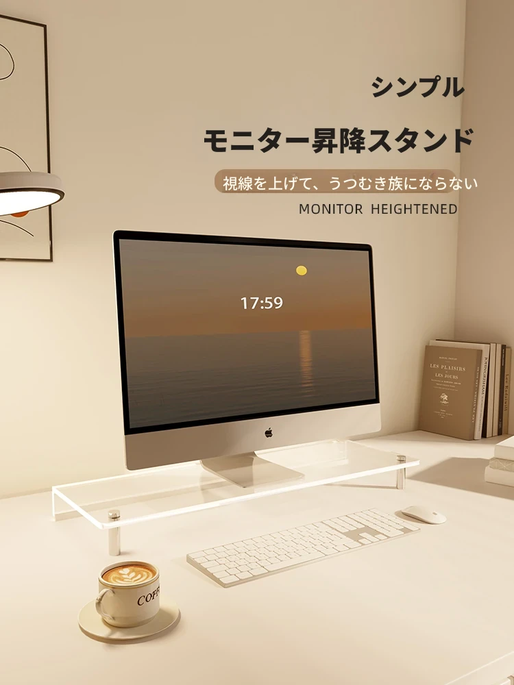 アクリル製モニター昇降スタンド - 透明デスク収納ラック、オフィス用パソコンディスプレイ台、効率的なスペース活用で快適な作業環境を実現!