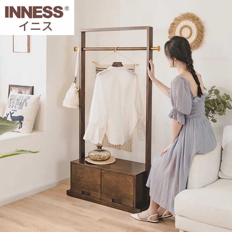 イニスの無垢材フロアハンガー - シンプルでモダンなデザイン、家庭やオフィスに最適!衣類を美しくディスプレイし、整理整頓をサポート。あなたの寝室やリビングをスタイリッシュに演出します!