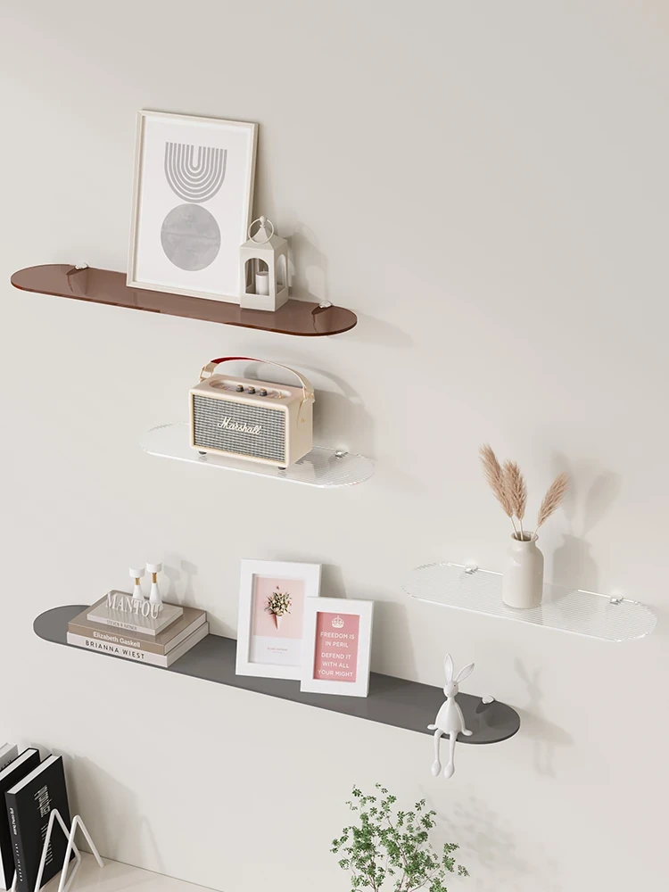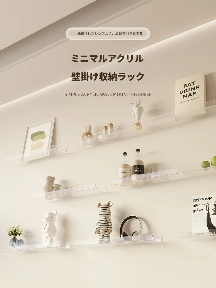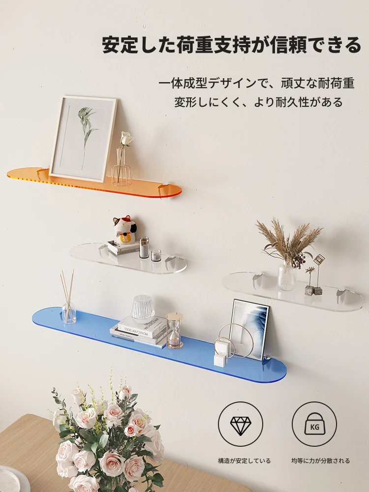 アクリル壁掛け棚 - 透明でスタイリッシュな浮遊収納ラック。リビングやバスルームに最適なデコレーションと展示スペースを提供します!