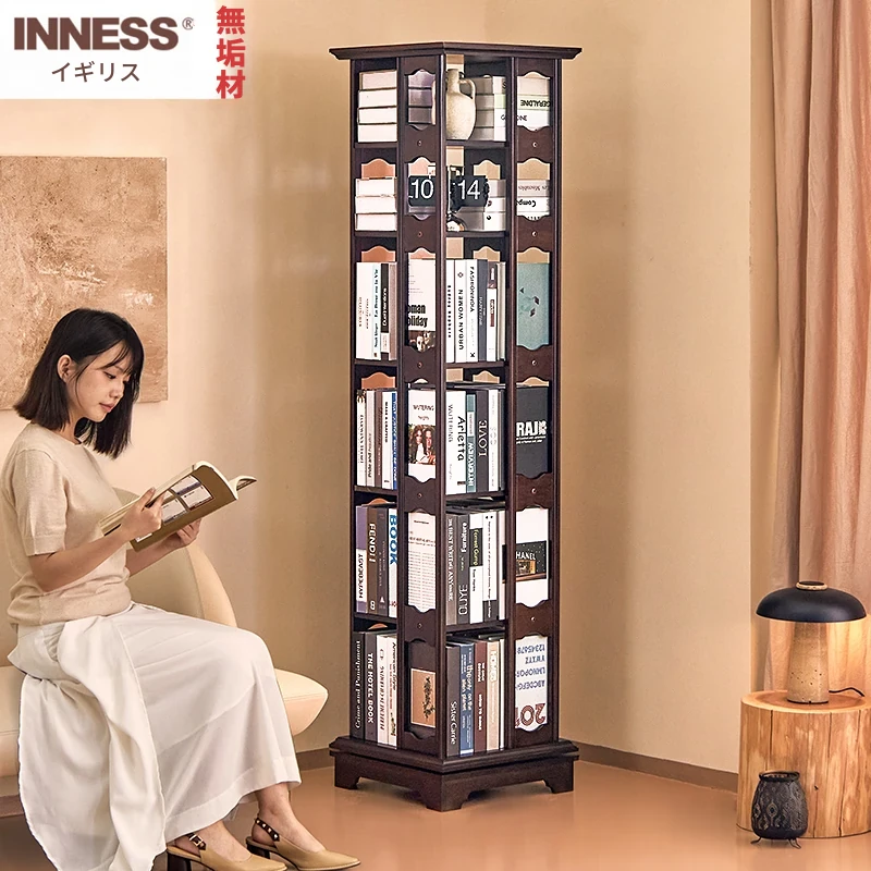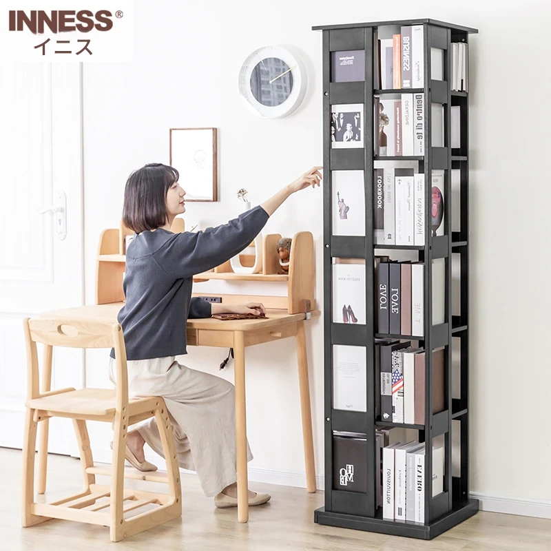 イニス全木製360度回転ブックシェルフ 家庭用書棚 リビング収納 子供・学生用スタンドラック おしゃれで機能的な収納スペースを実現!
