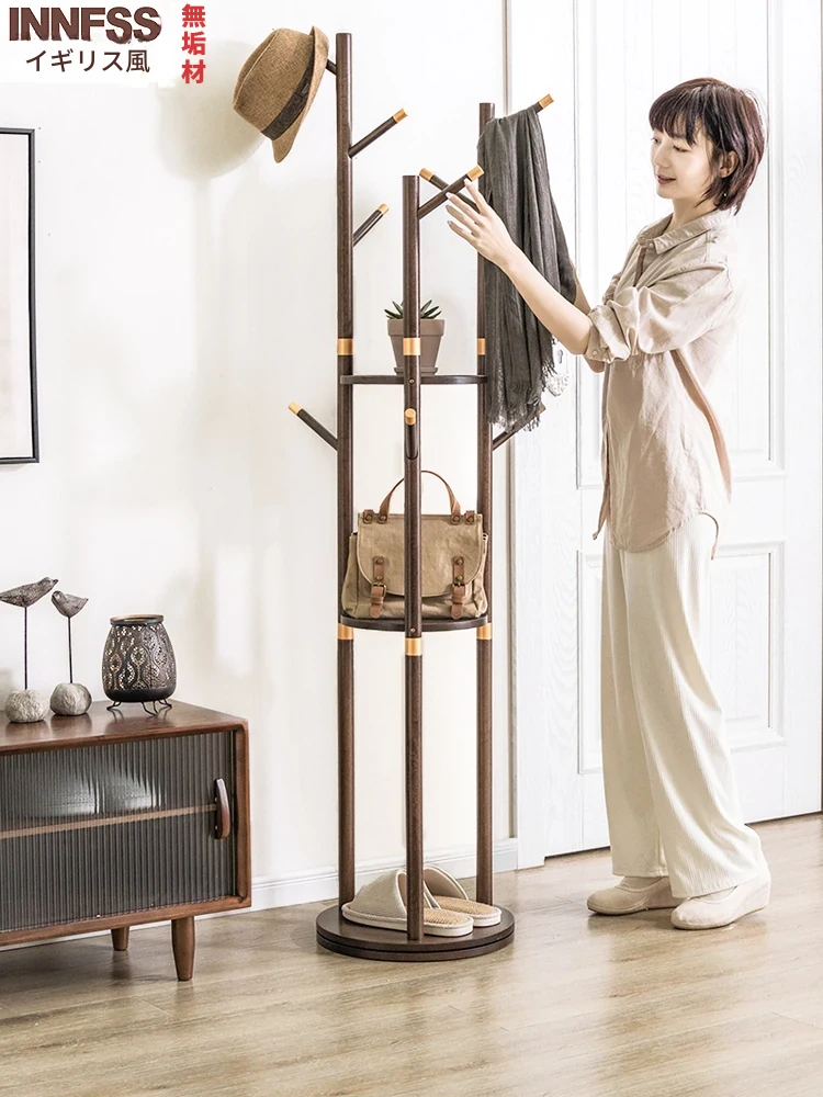 イニス無垢材の回転式衣類ラック - 家庭用のスタイリッシュなコートハンガー、寝室にぴったりの収納力抜群なスタンド型衣服ラック!おしゃれなデザインでお部屋をスッキリ整理。