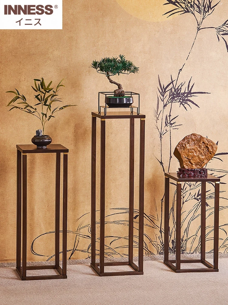 イニス製実木フラワースタンド - リビングルームにぴったりの落地式プランターラック!室内植物を美しくディスプレイし、中華風の置物ラックとしても最適。バルコニーにも最適なスタイリッシュなインテリアアイテム!