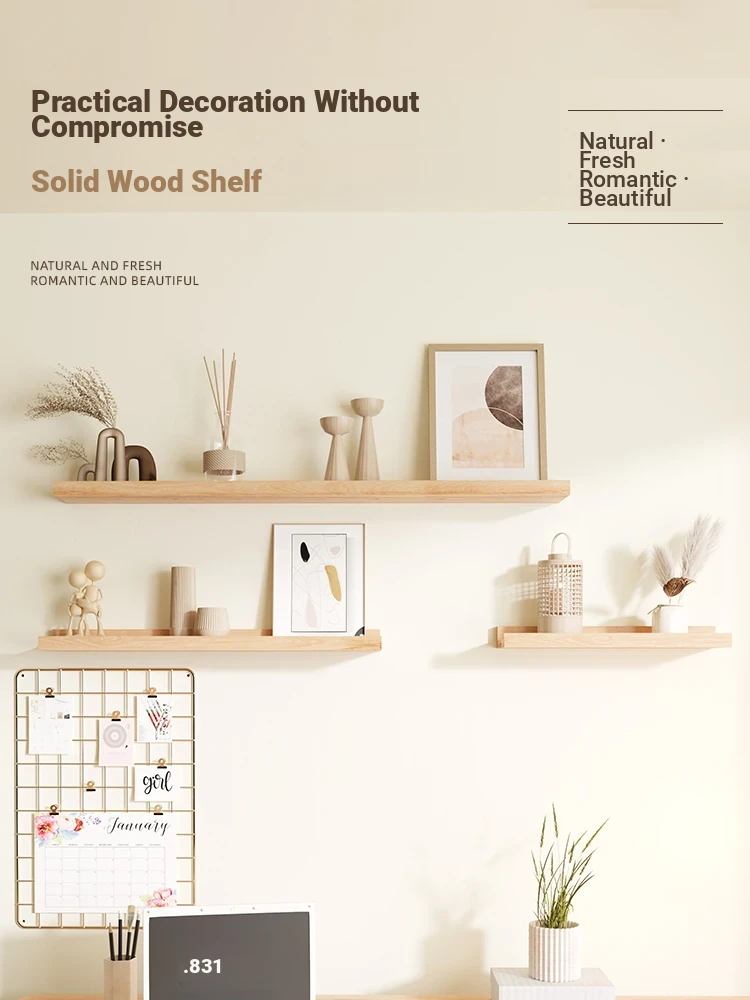 Creative Solid Wood Wall-Mounted Shelves - Elegant One-Line Shelf for Living Room Art Display and Wall Storage Solutions