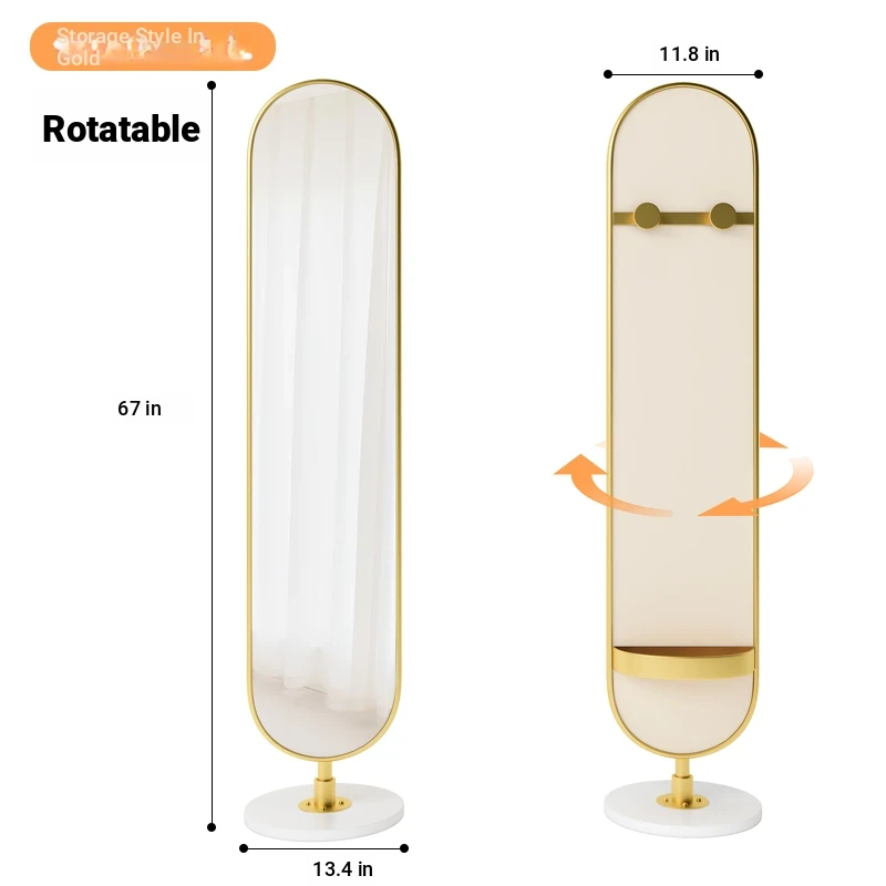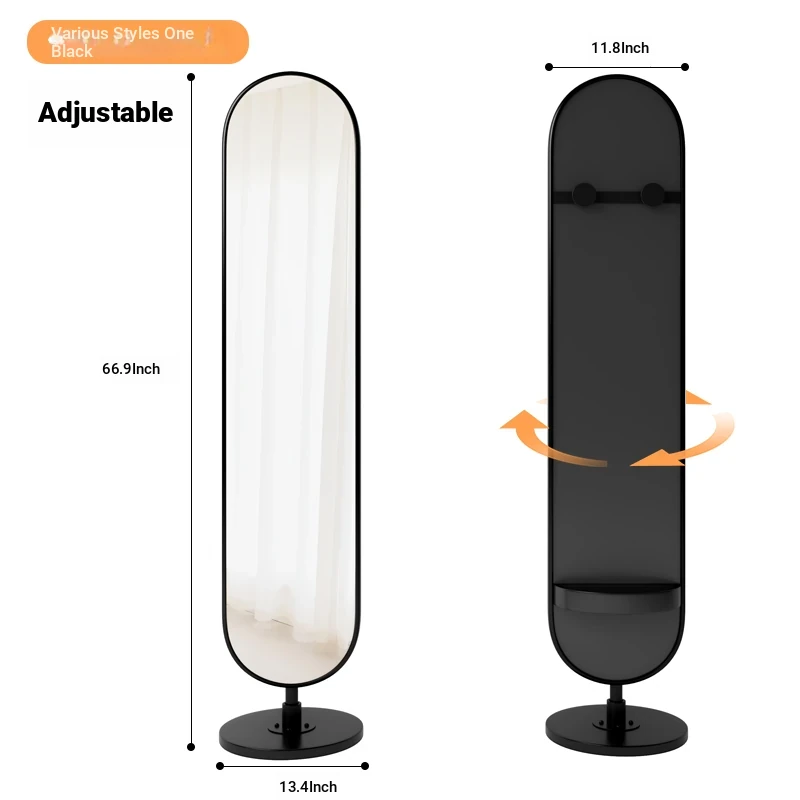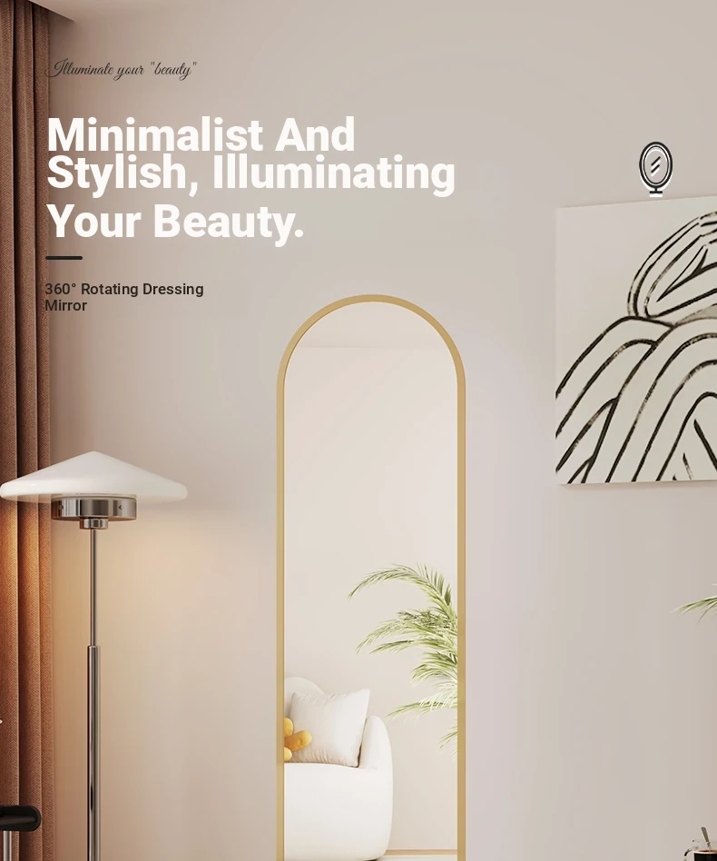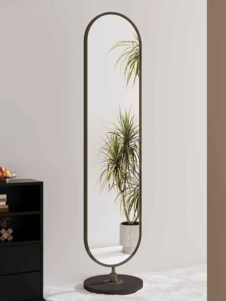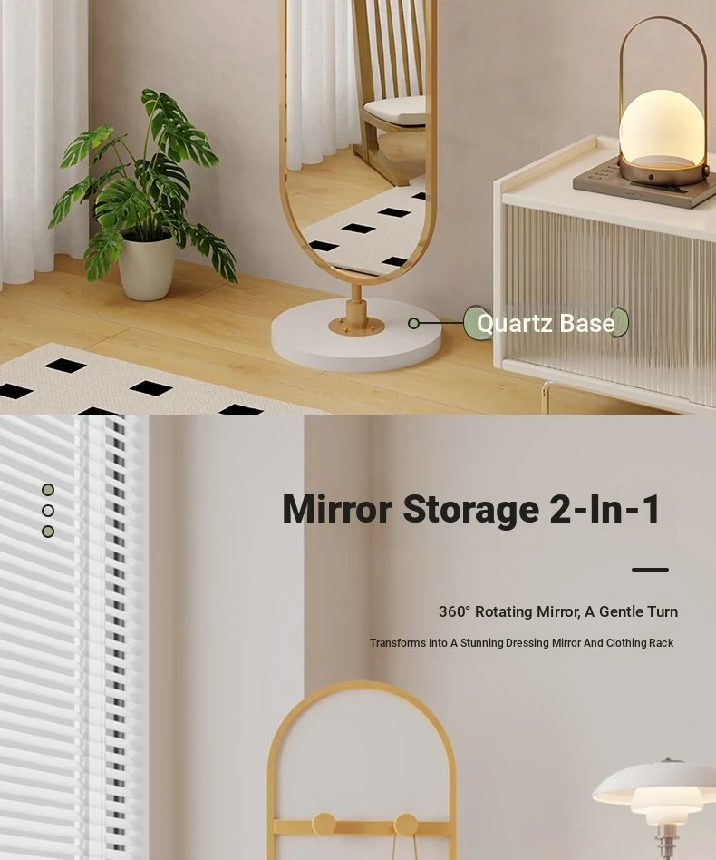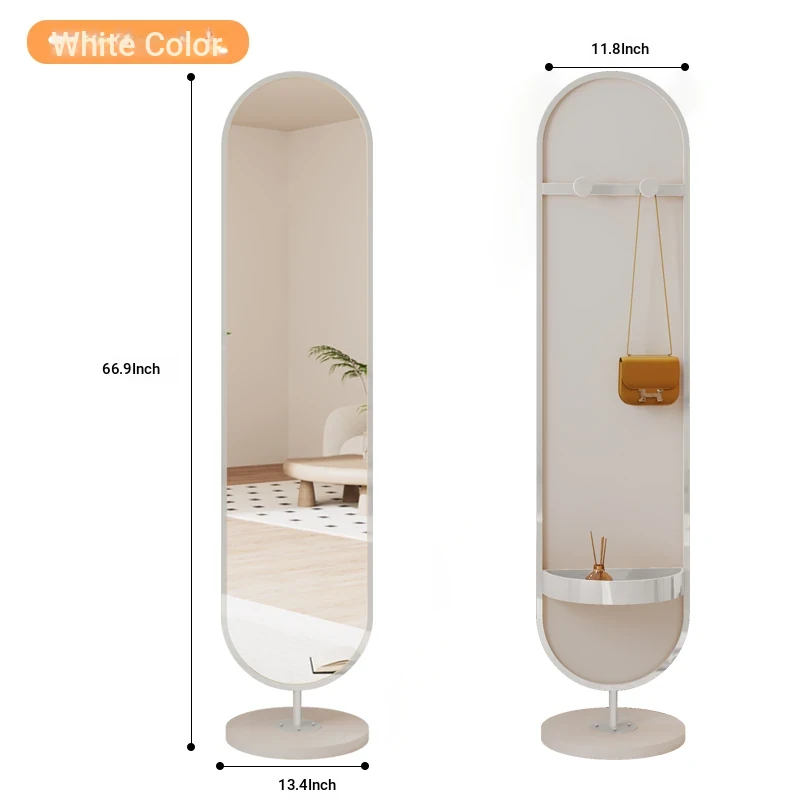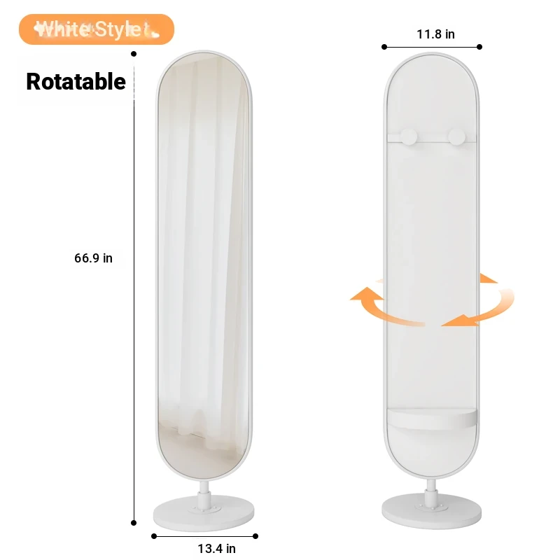 Creamy Minimalist Full-Length Floor Mirror – Stylish and Rotatable Dressing Mirror for Small Spaces, Perfect for Bedrooms and Try-On Sessions.