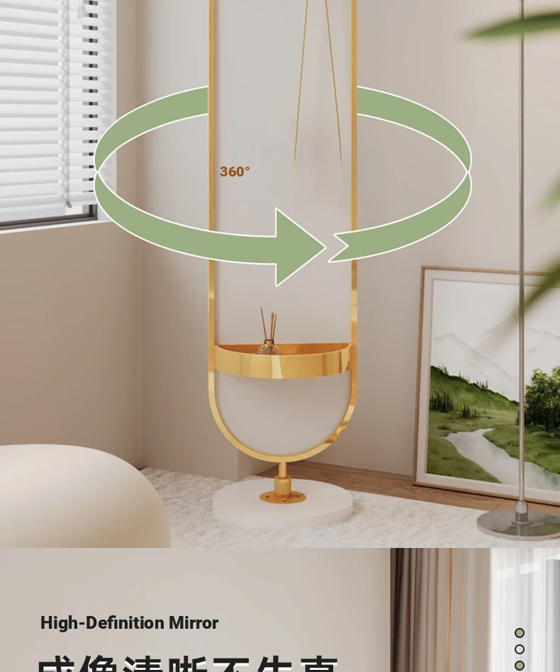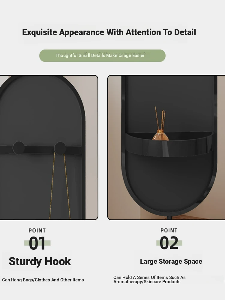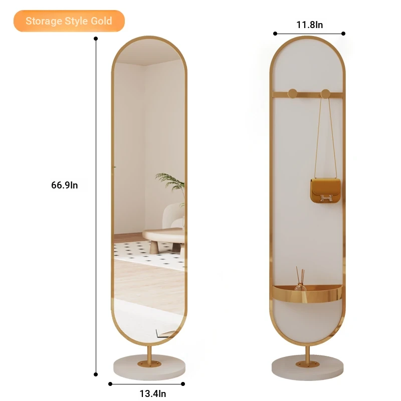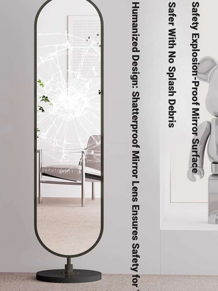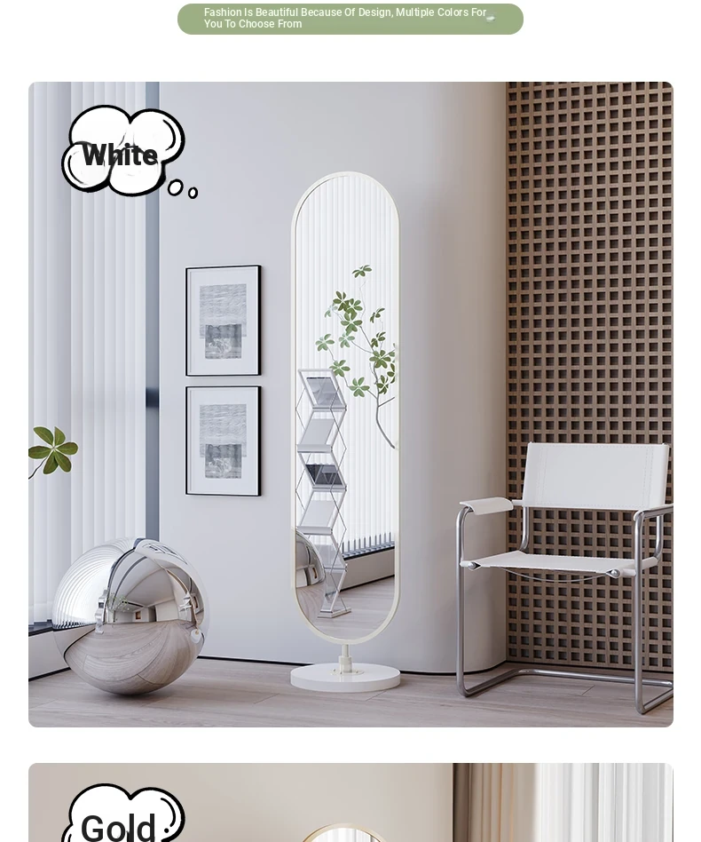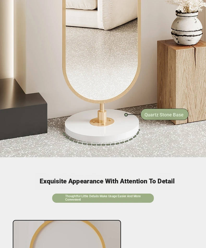 Creamy Minimalist Full-Length Floor Mirror – Stylish and Rotatable Dressing Mirror for Small Spaces, Perfect for Bedrooms and Try-On Sessions.