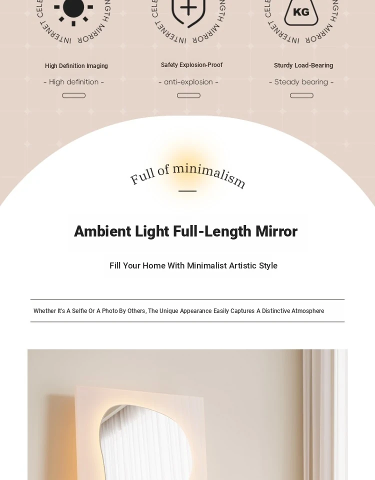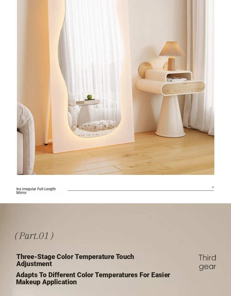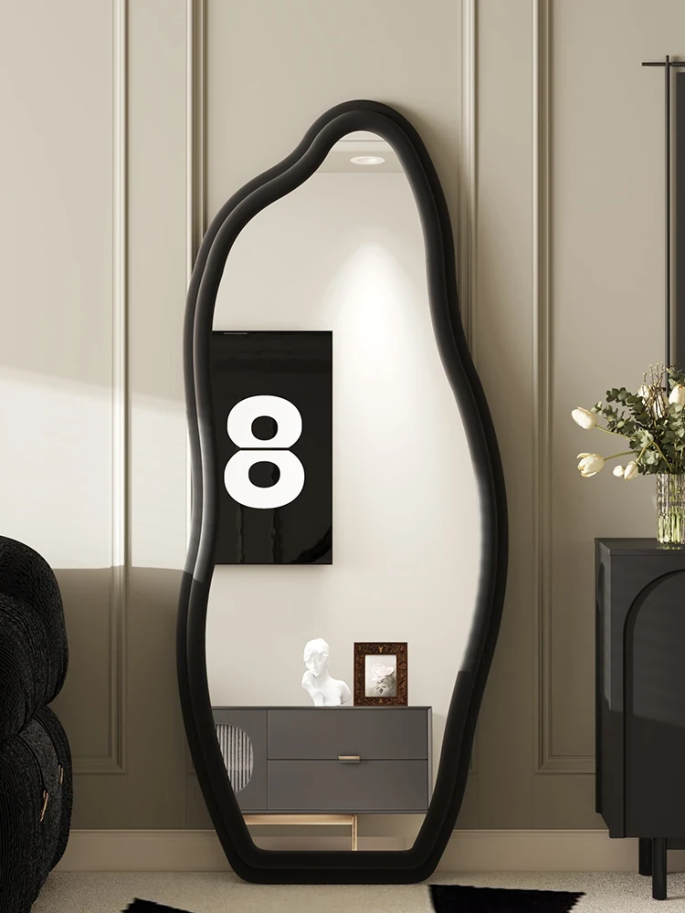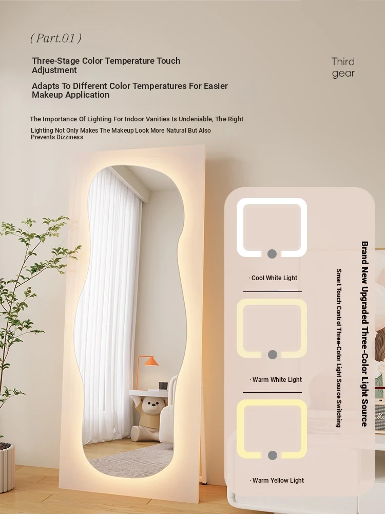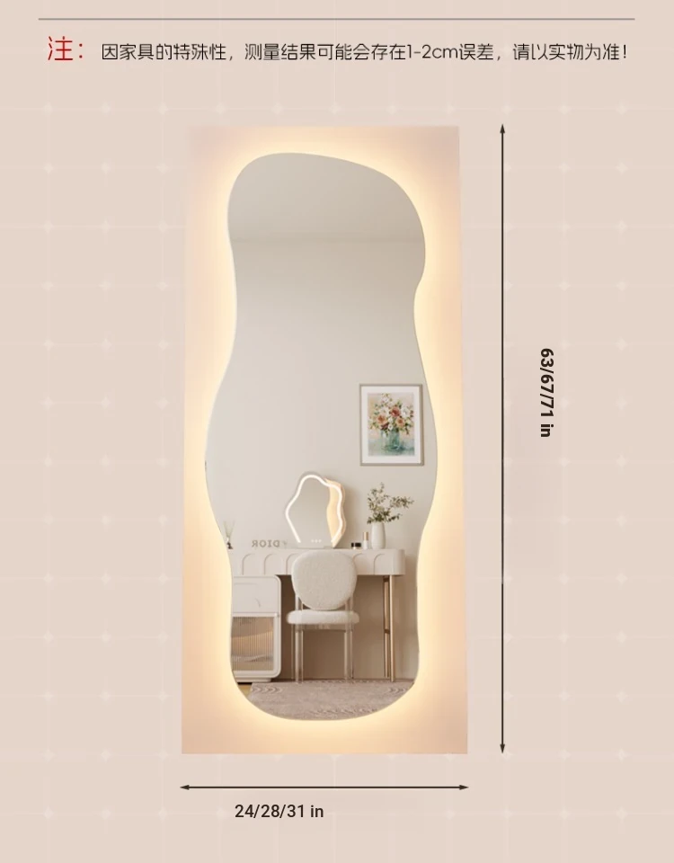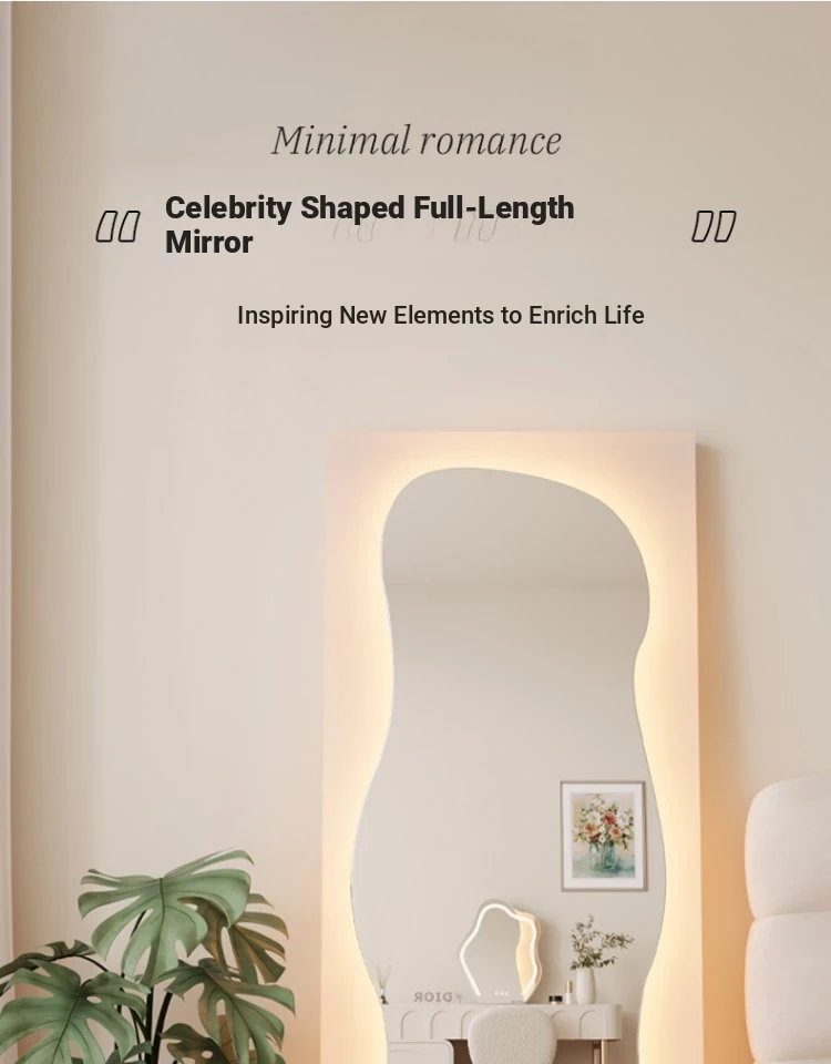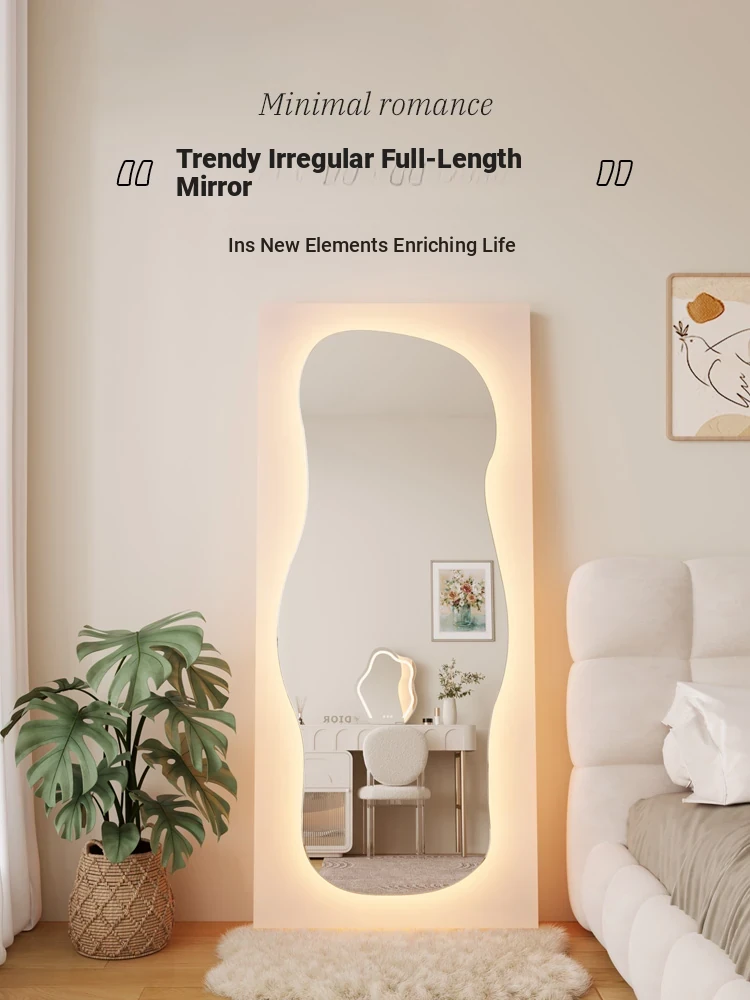 Creative Full-Length Floor Mirror with Unique Design - Stylish Wall-Mounted Dressing Mirror with LED Lighting for Home Use, Perfect for Try-On and Elevating Your Space