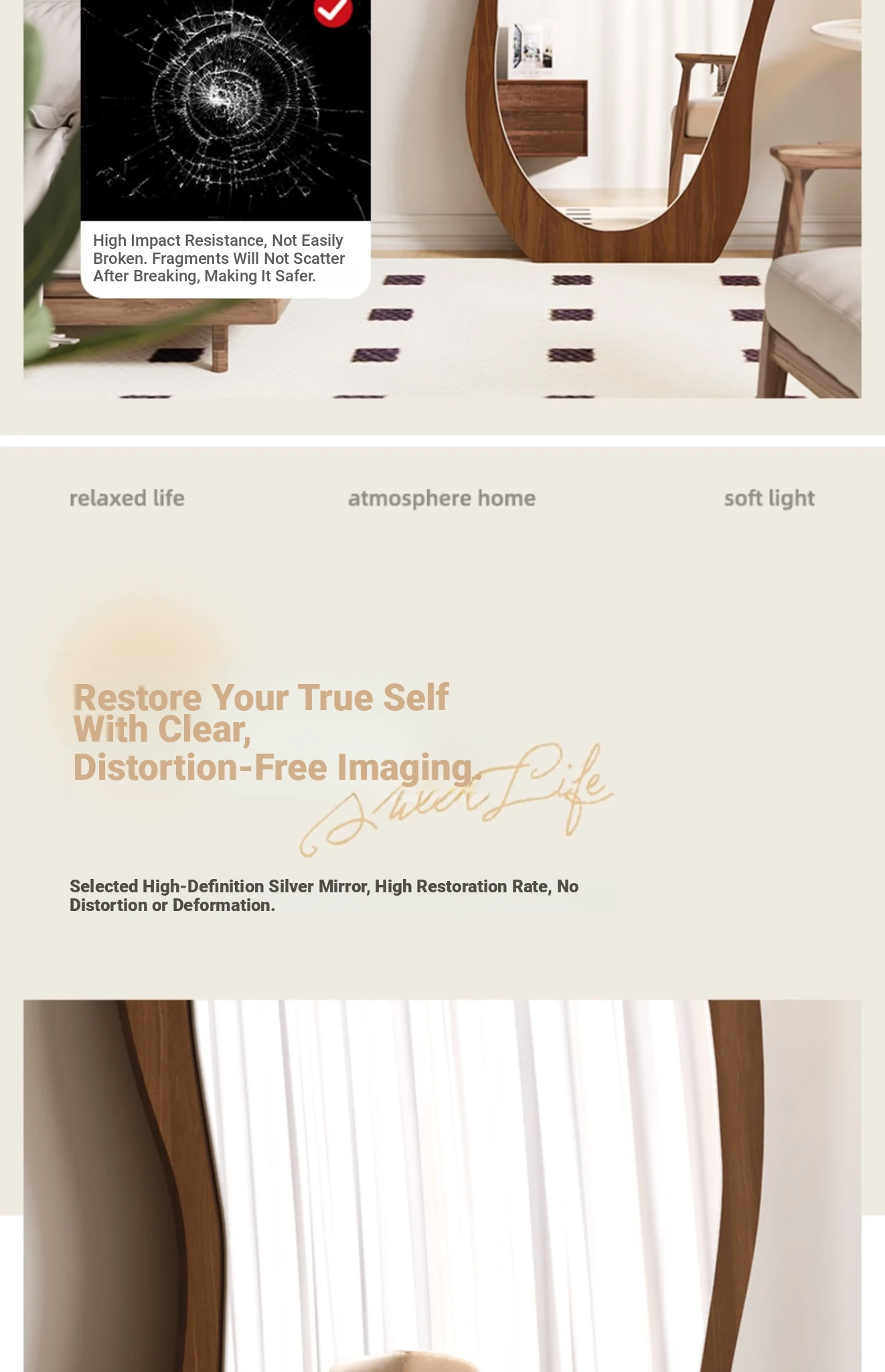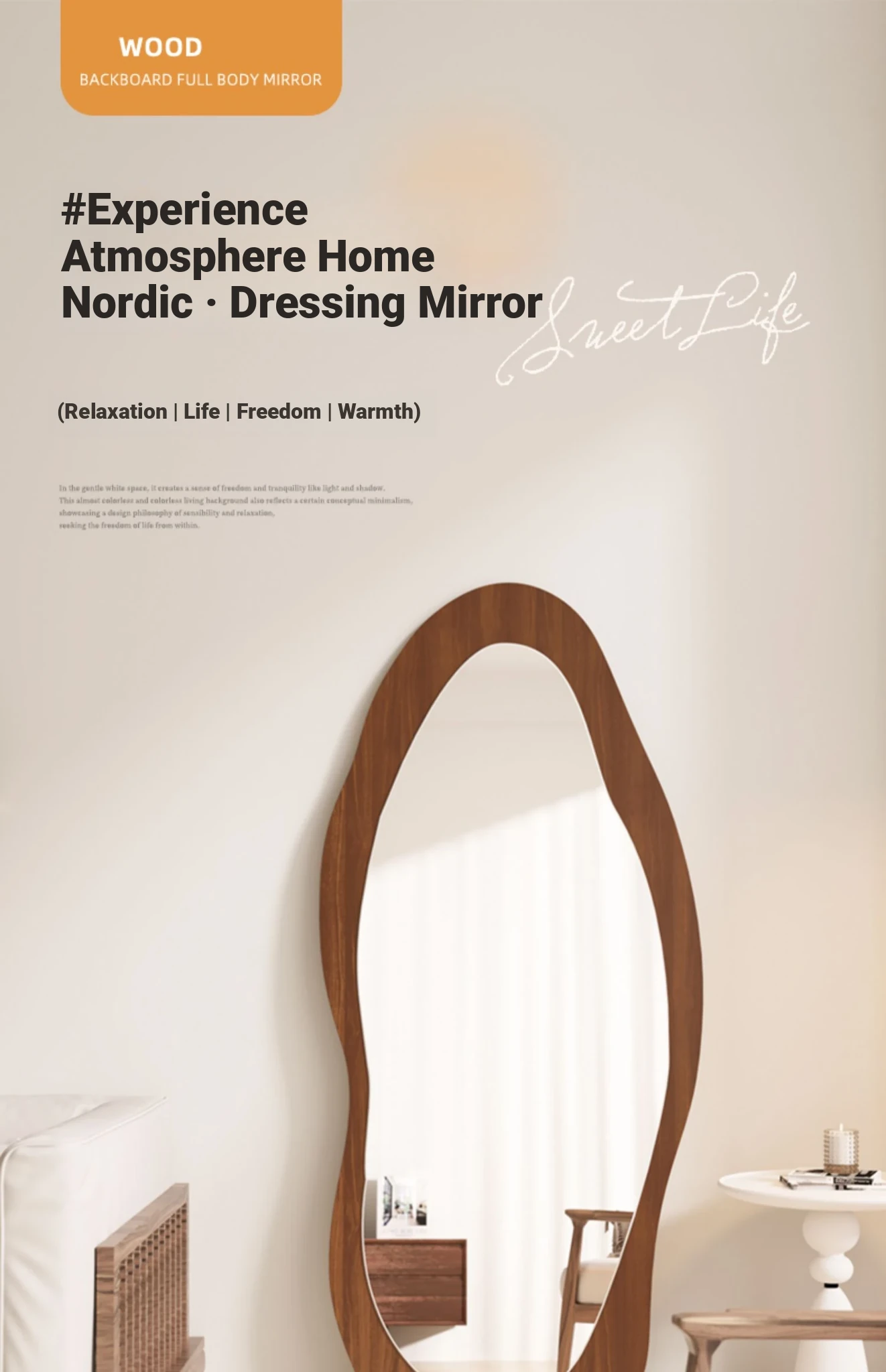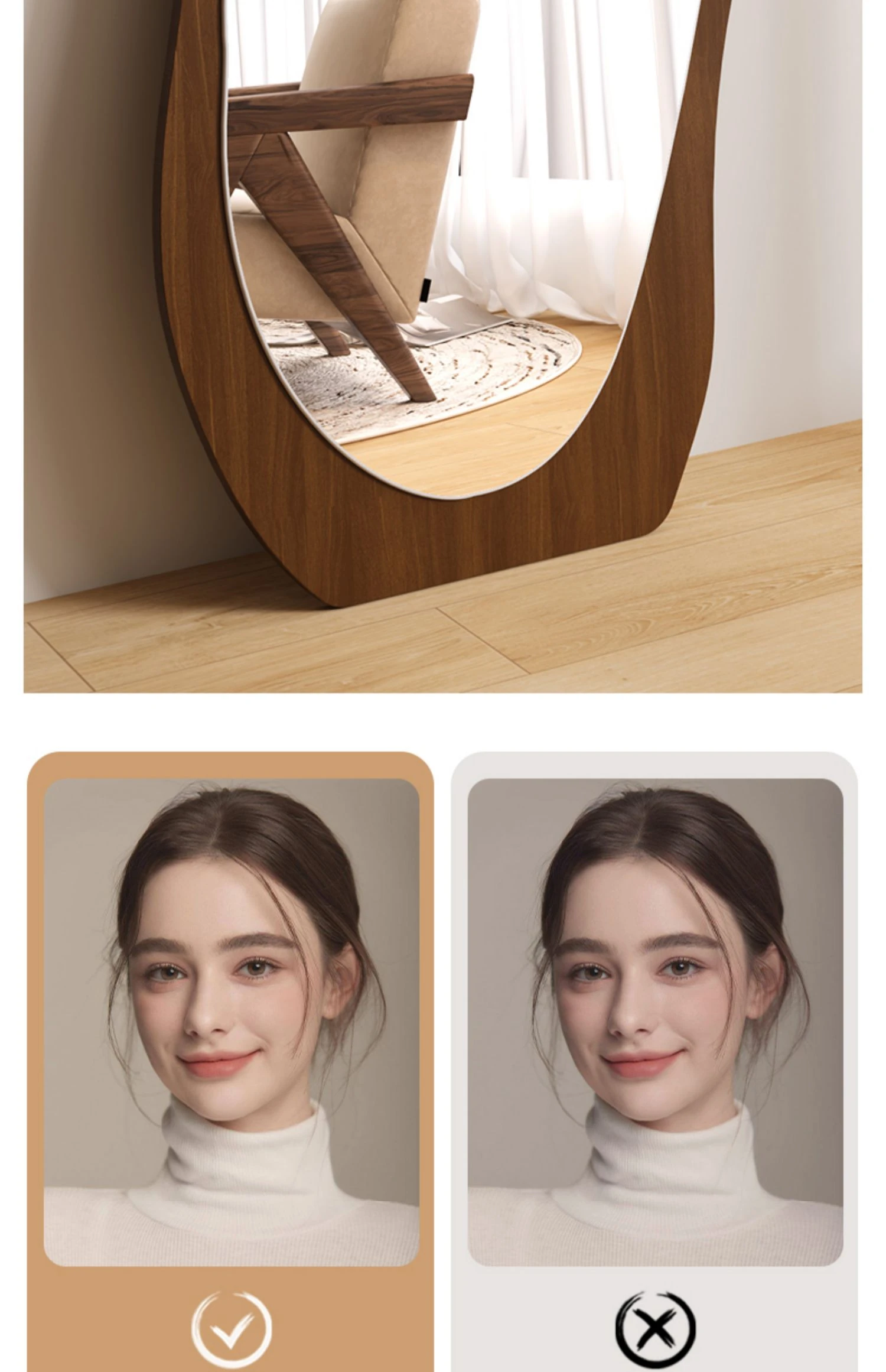 Designer Full-Length Dressing Mirror - Wall-Mounted or Floor-Standing, Unique Shape, Ideal for Home Use, Perfect for Women's Bedrooms, Minimalist Style