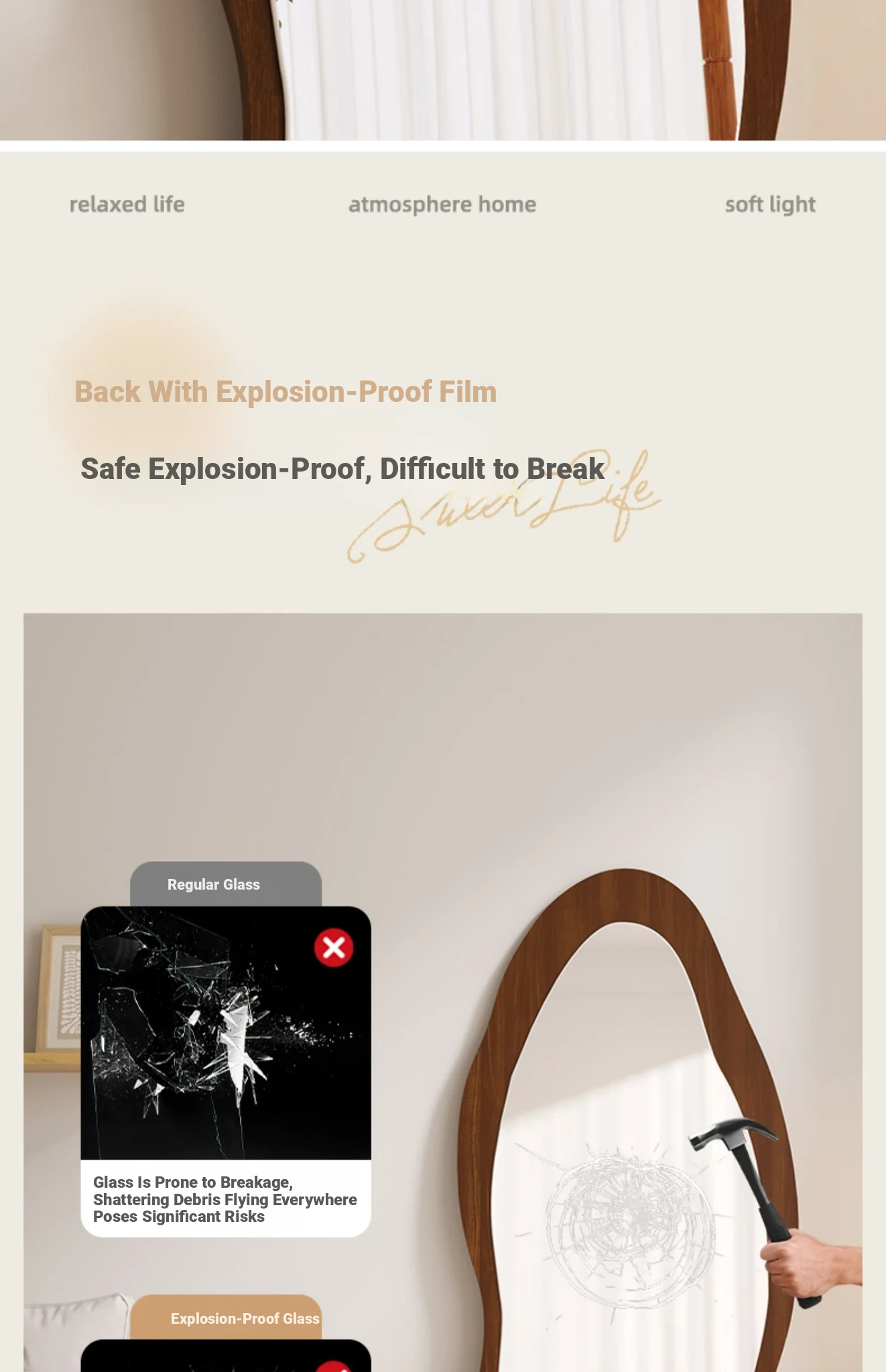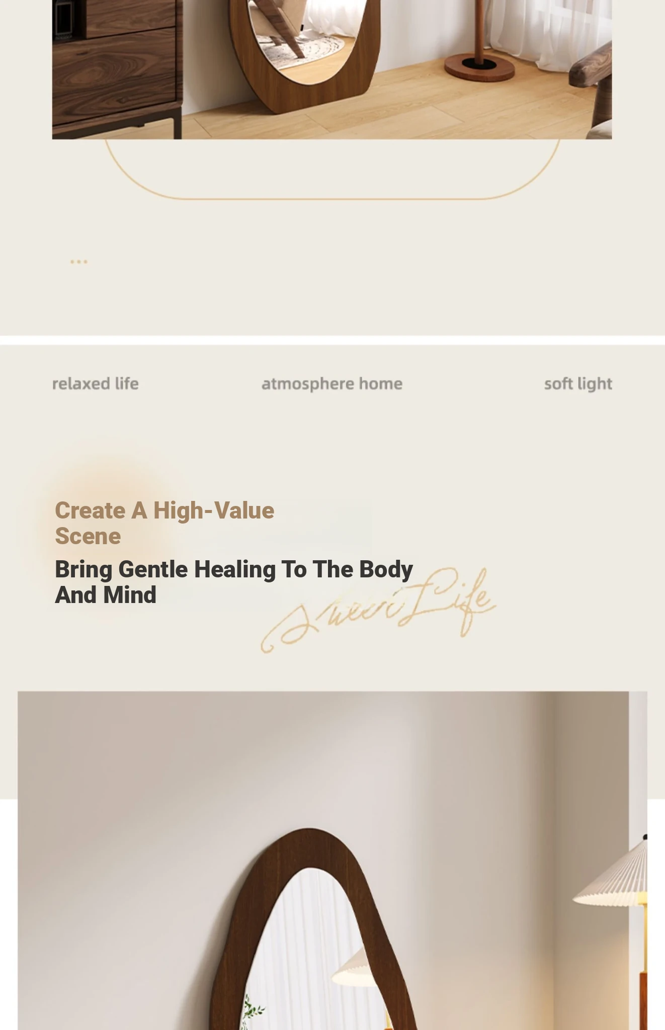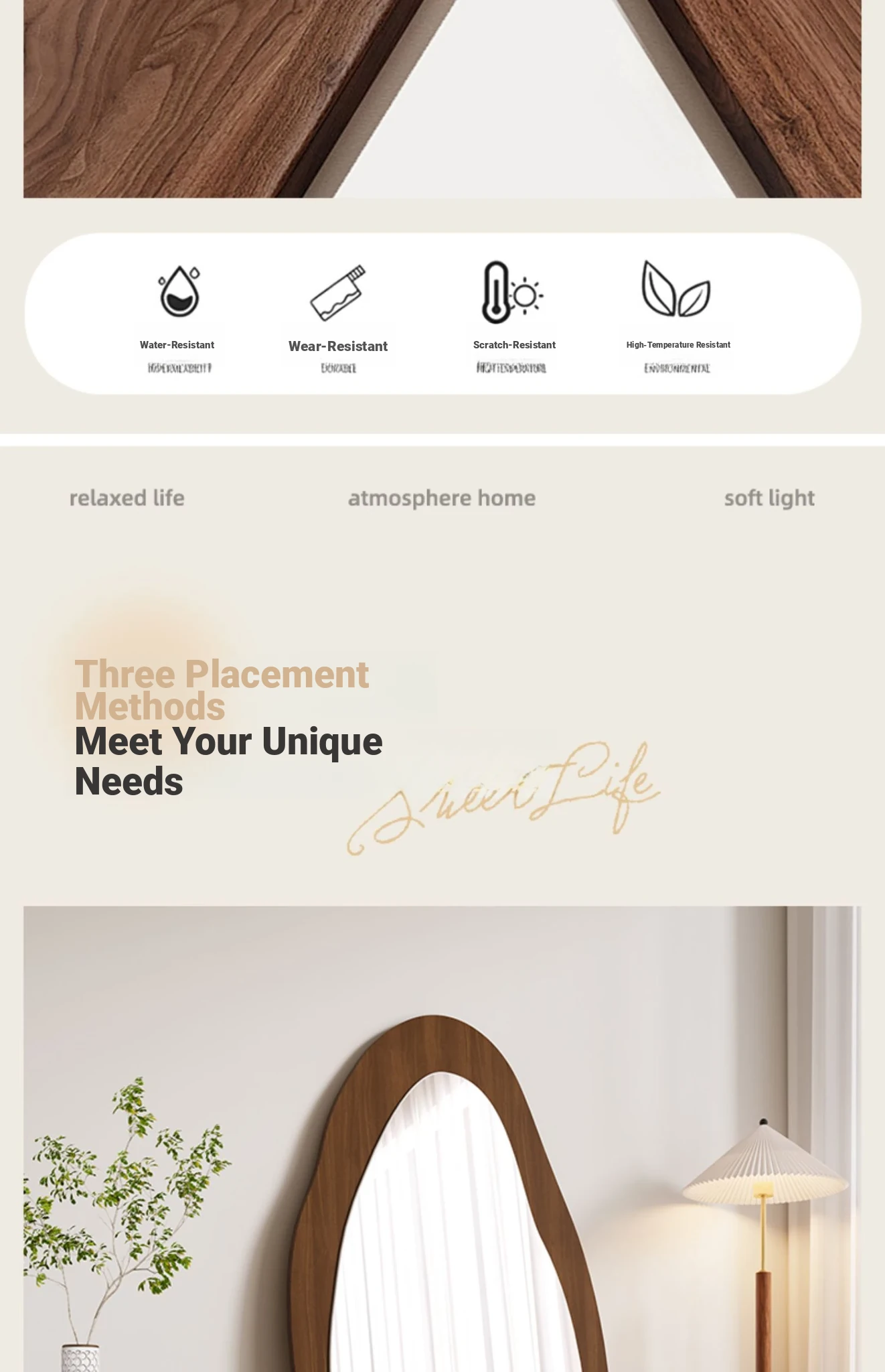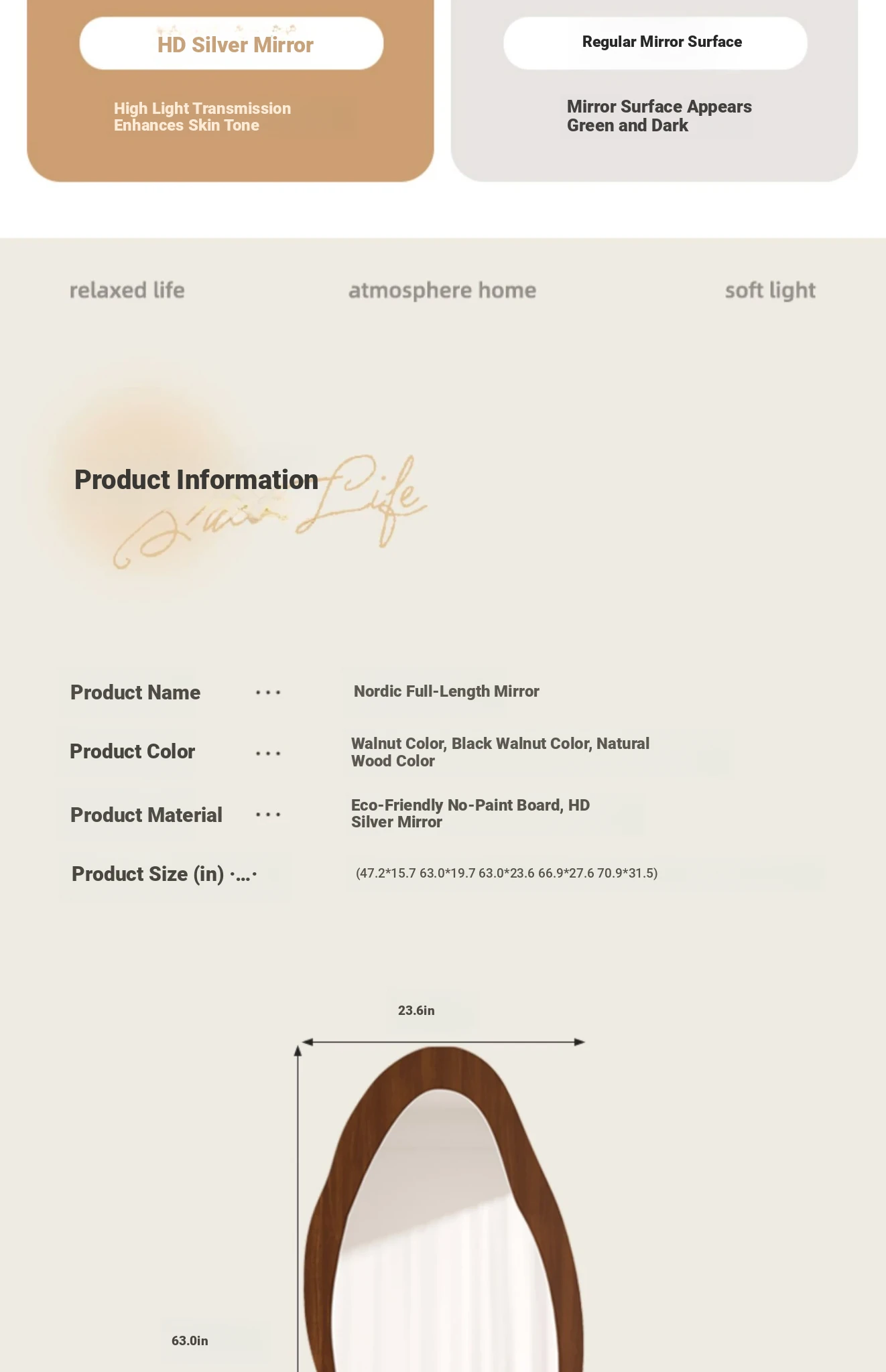 Designer Full-Length Dressing Mirror - Wall-Mounted or Floor-Standing, Unique Shape, Ideal for Home Use, Perfect for Women's Bedrooms, Minimalist Style