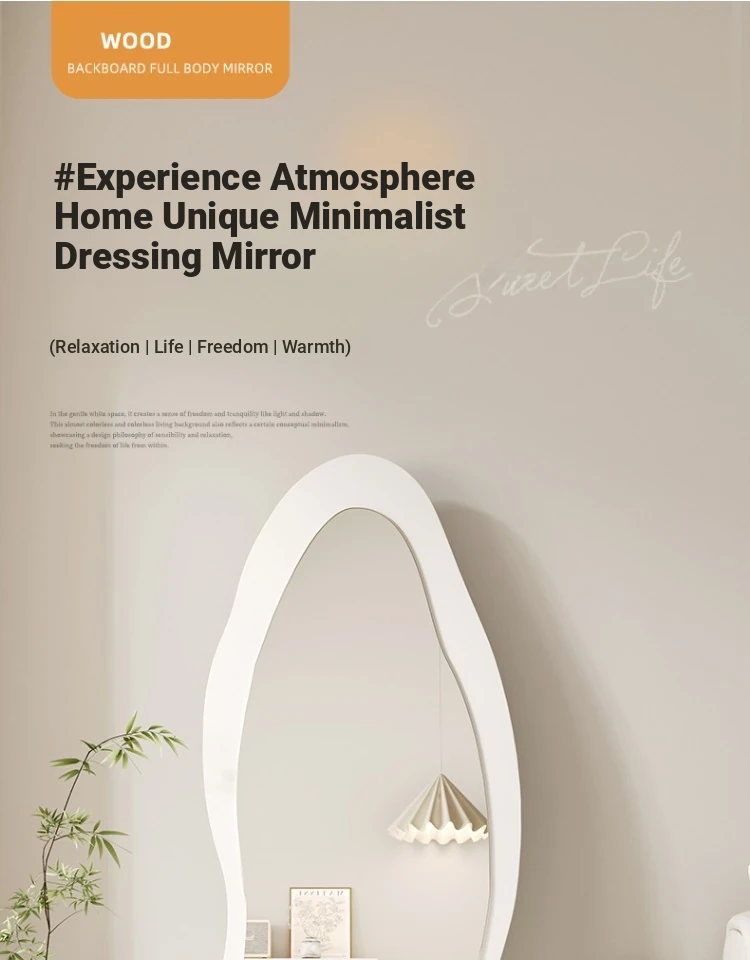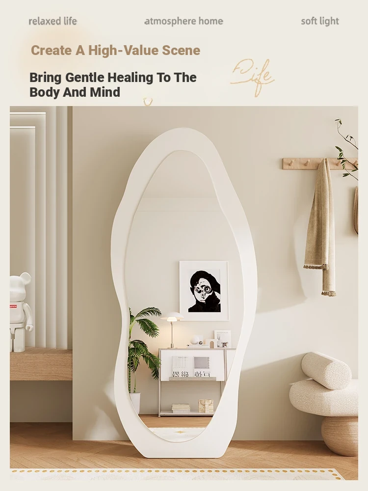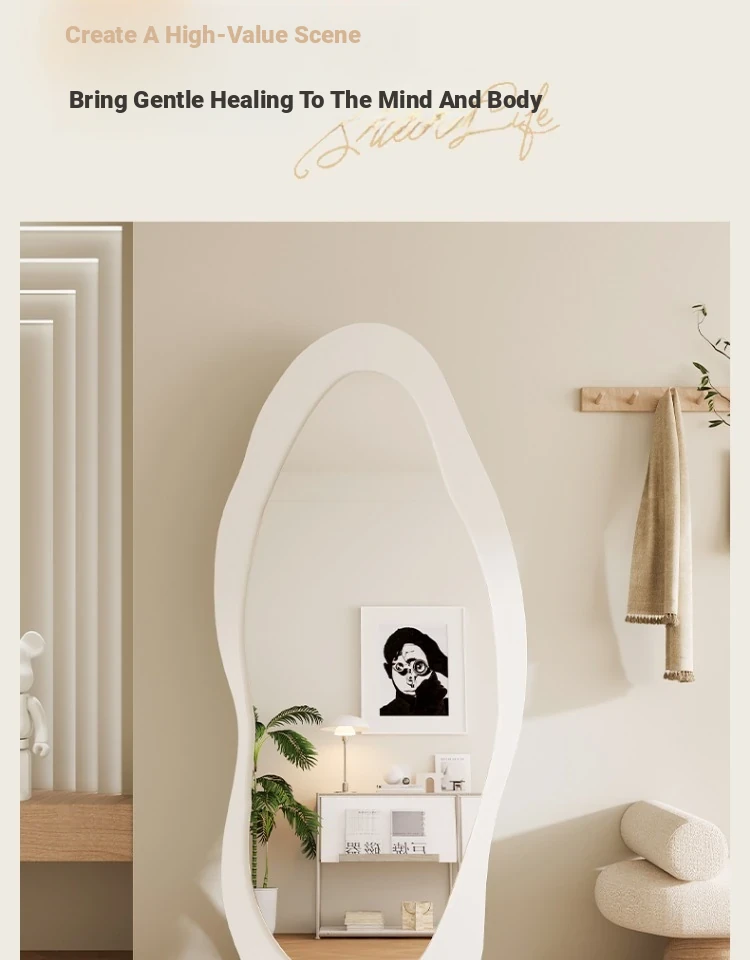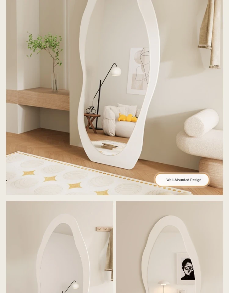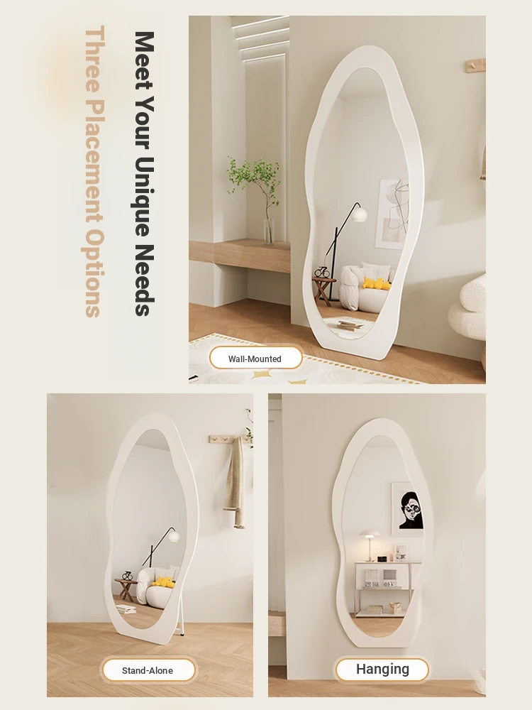 Full-Length Wall Mirror - Creamy Aesthetic Dressing Mirror for Home, Stylish and Elegant Design, Versatile Hanging or Standing Options, Perfect for Fashion Lovers