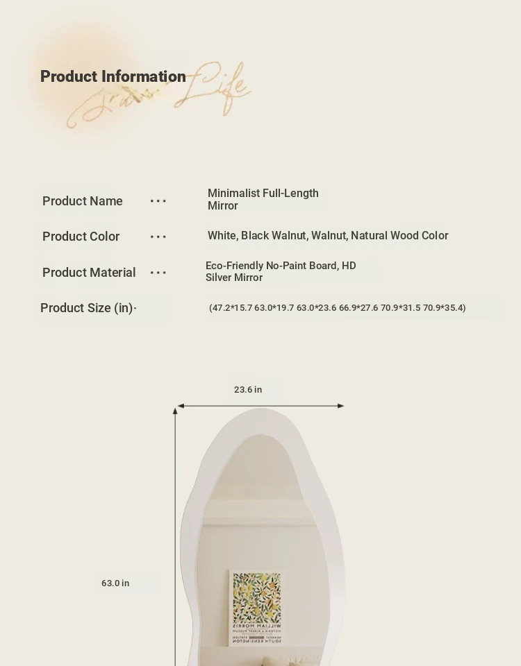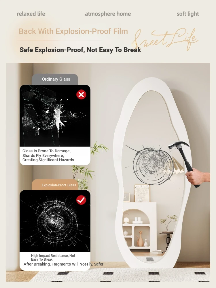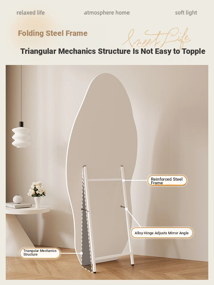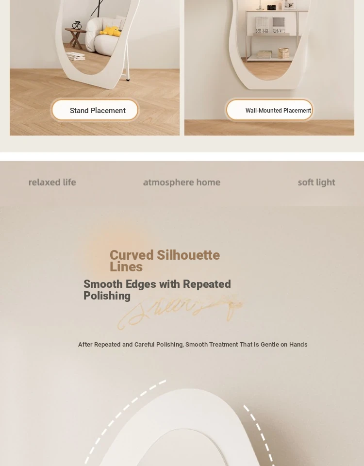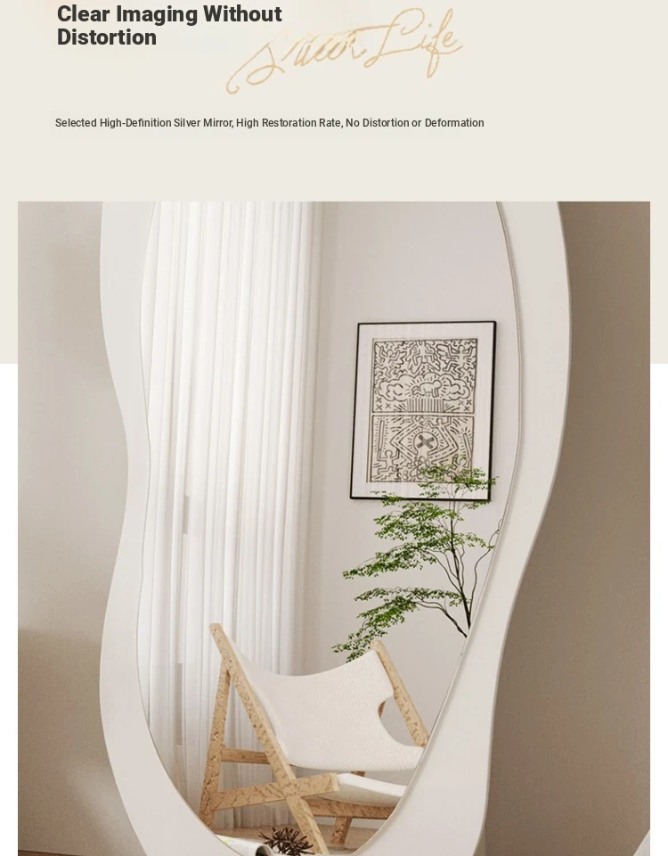 Full-Length Wall Mirror - Creamy Aesthetic Dressing Mirror for Home, Stylish and Elegant Design, Versatile Hanging or Standing Options, Perfect for Fashion Lovers