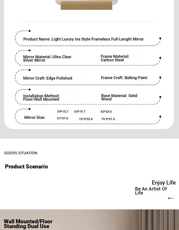Full-Length Wall-Mounted Dressing Mirror - Stylish Self-Adhesive Home Mirror for Fashion Stores, Slimming Effect, Perfect for Trying On Outfits in Ins Style