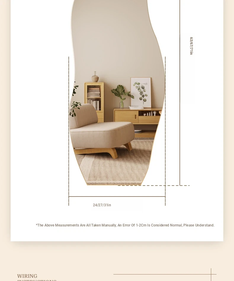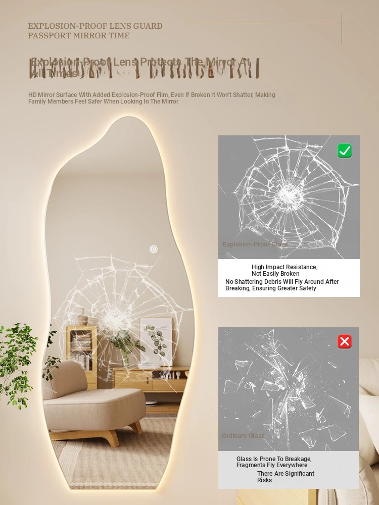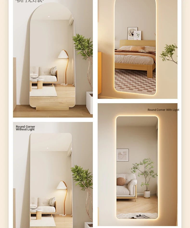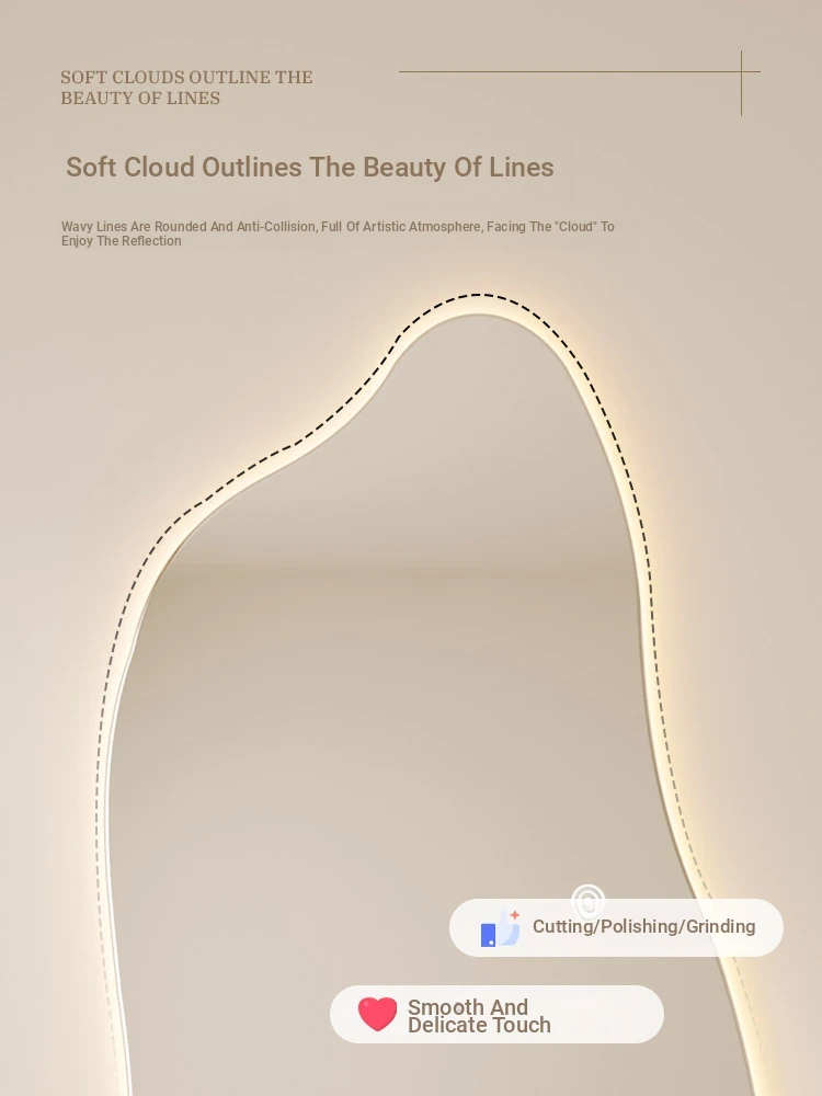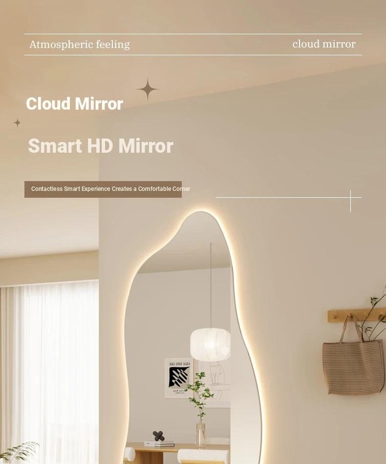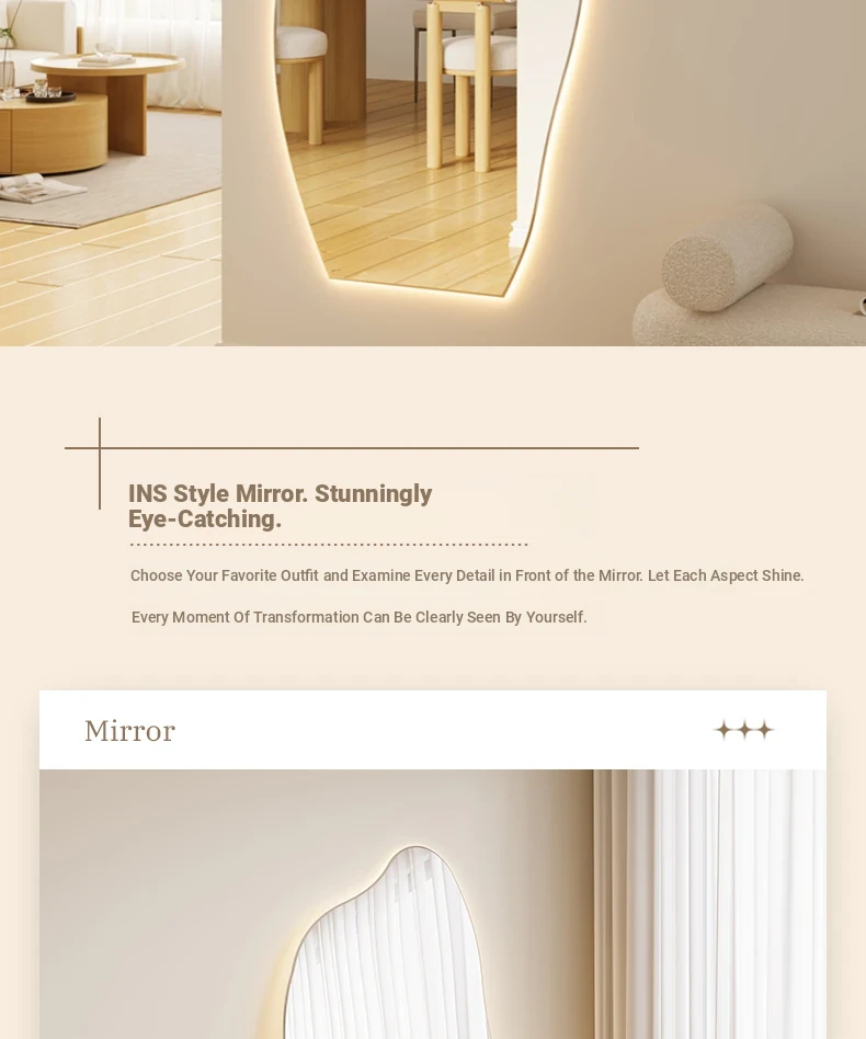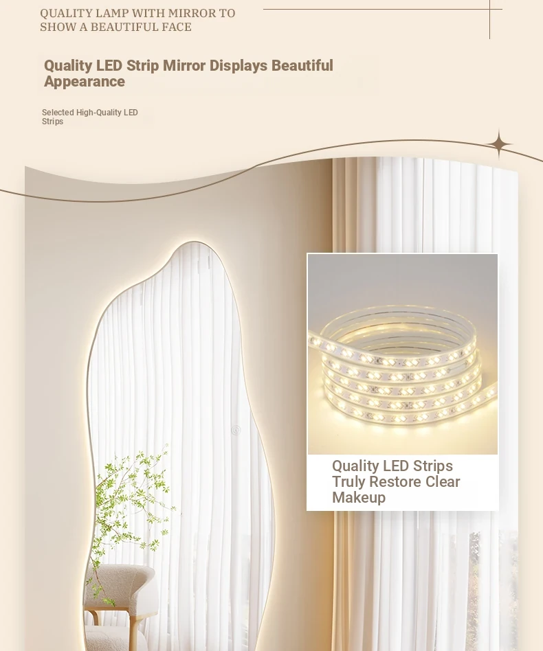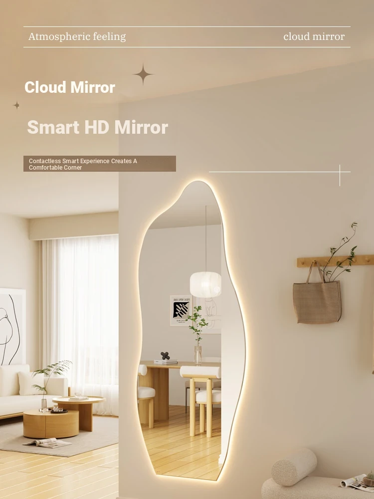 Full-Length Wall-Mounted Mirror with Smart LED Lighting - Adhesive Floor Mirror for Home Use, Irregular Dressing Mirror for Stylish Try-On