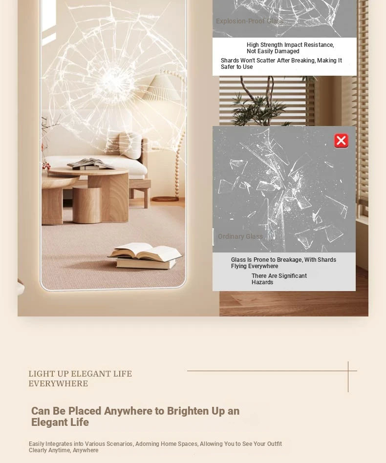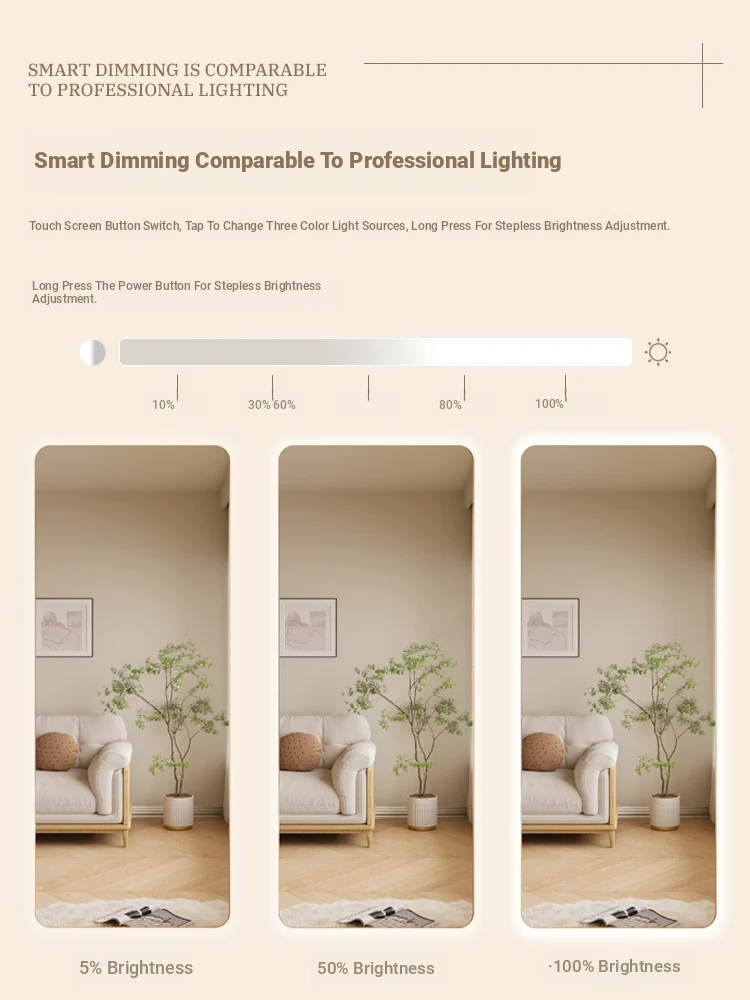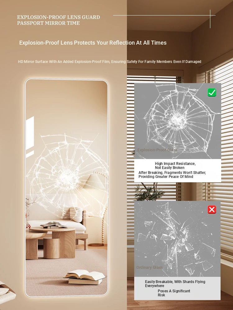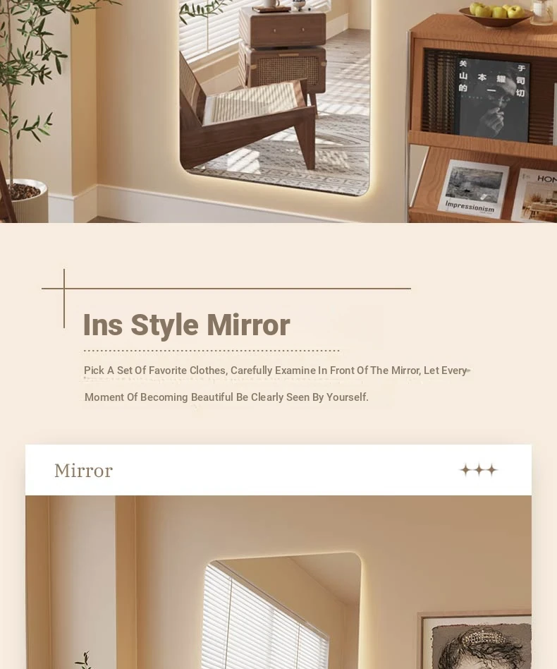 Illuminated Wall-Mounted Dressing Mirror with Touch Screen - Smart LED Full-Length Mirror in Trendy Ins Style for Home Use
