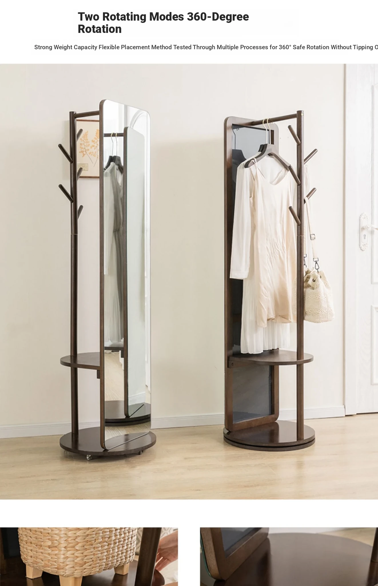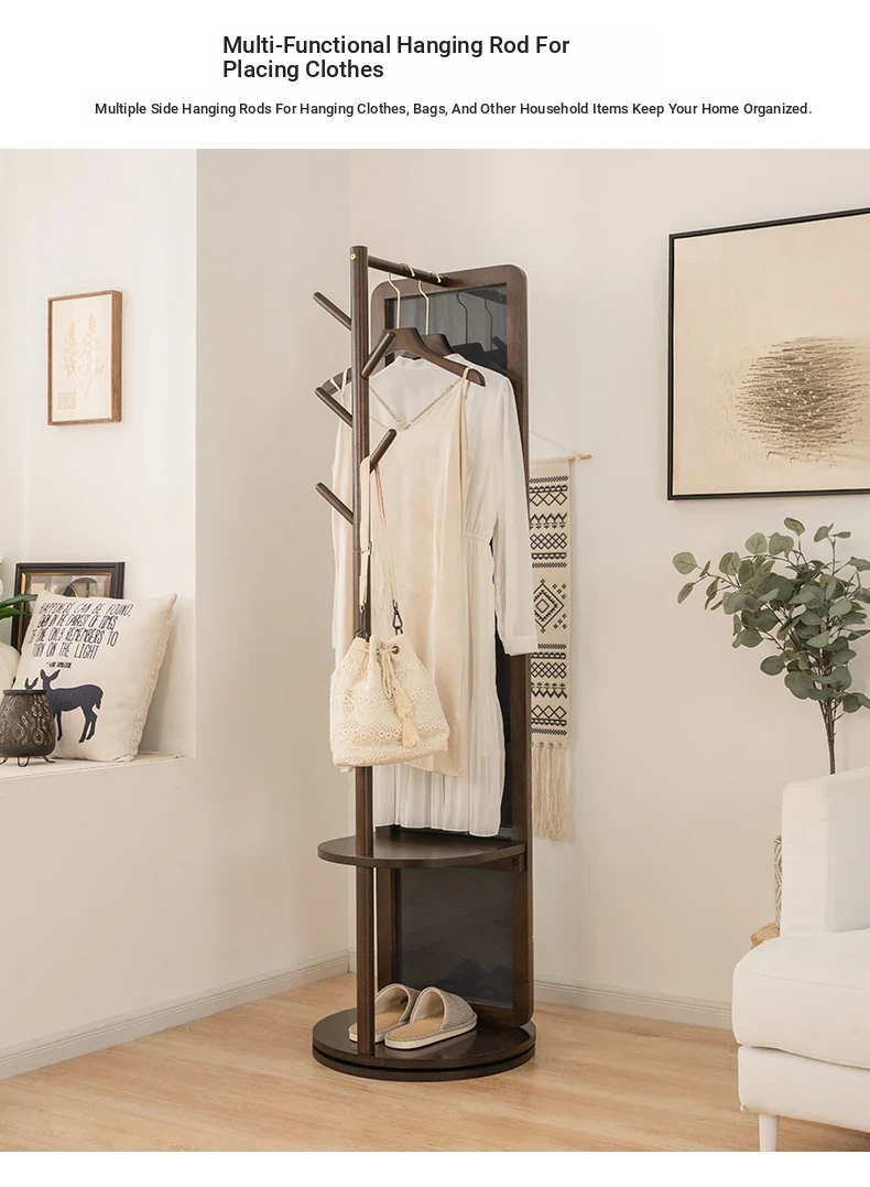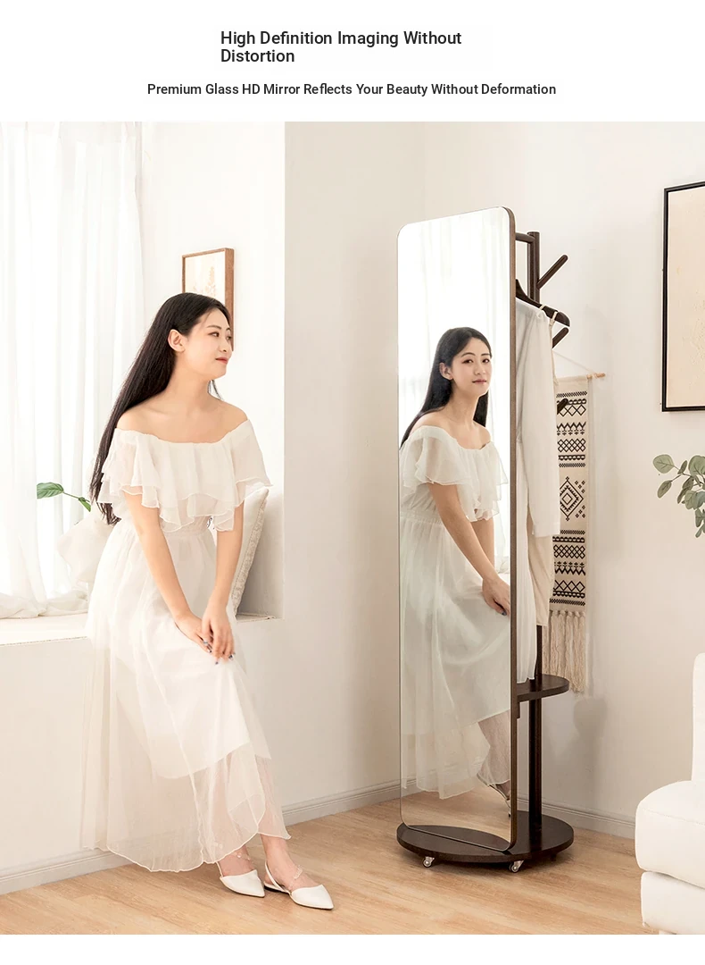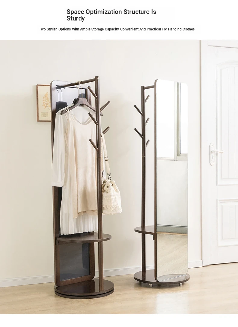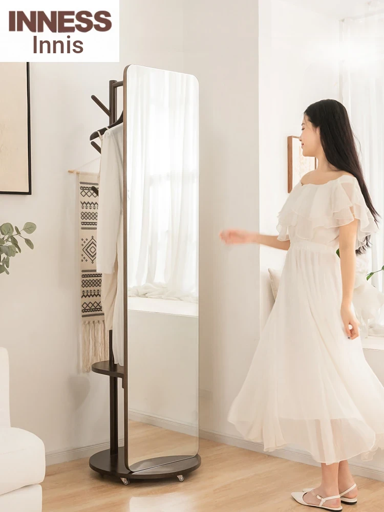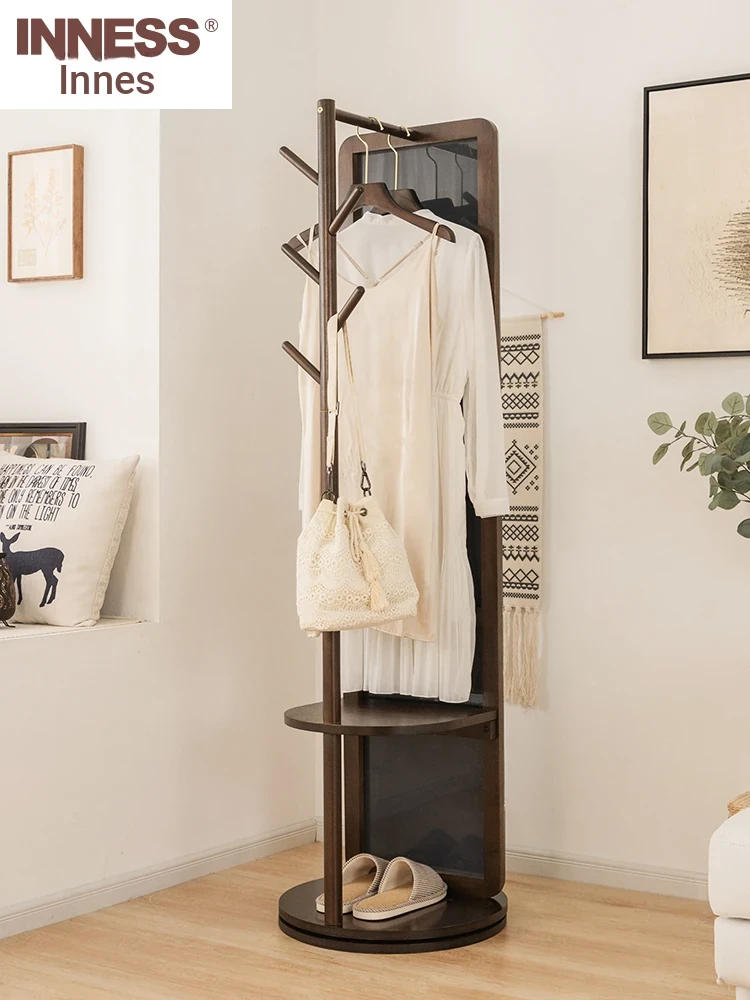 Innis Solid Wood Full-Length Dressing Mirror with Rotatable Coat Rack - Stylish and Functional Floor Mirror for Bedroom, Perfect for Trying on Outfits and Organizing Your Space