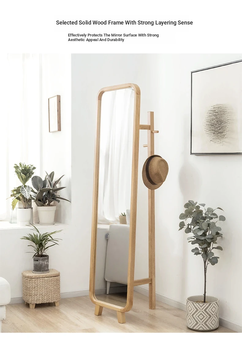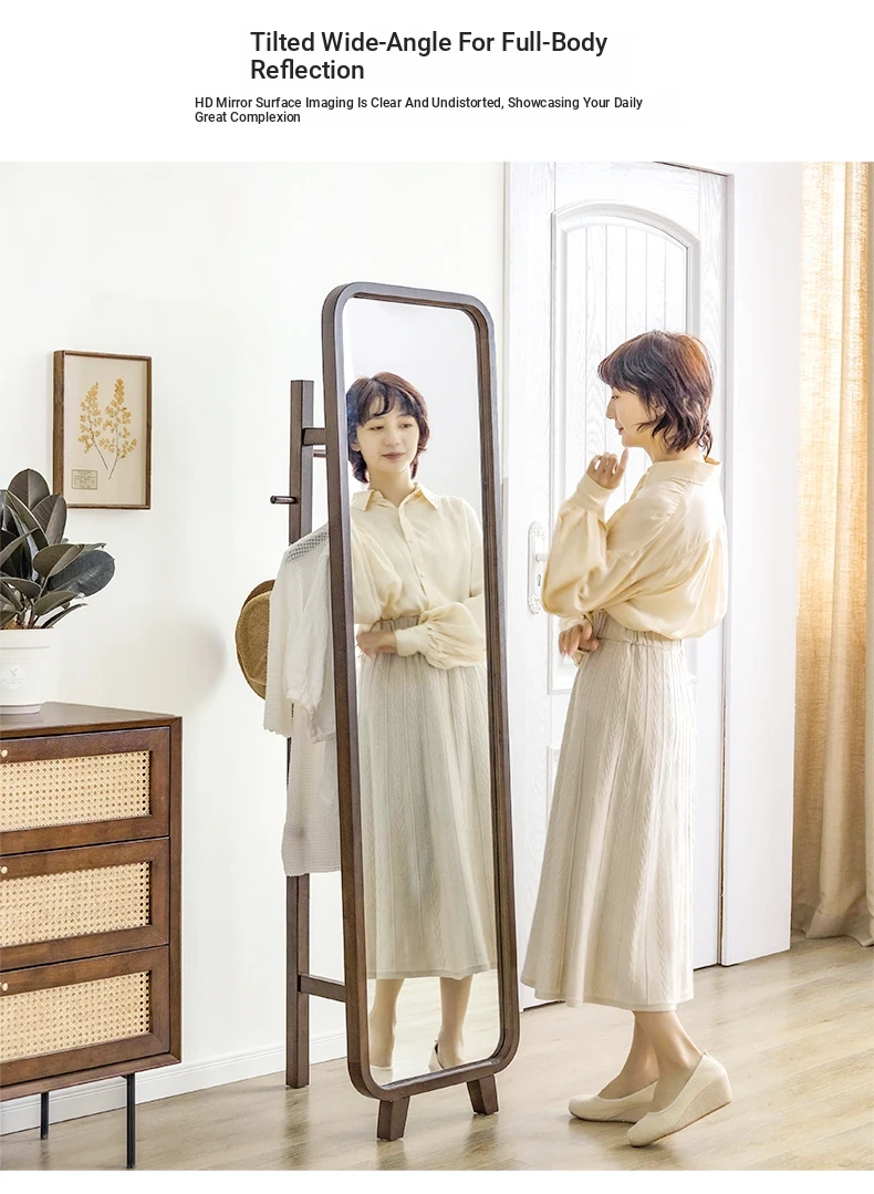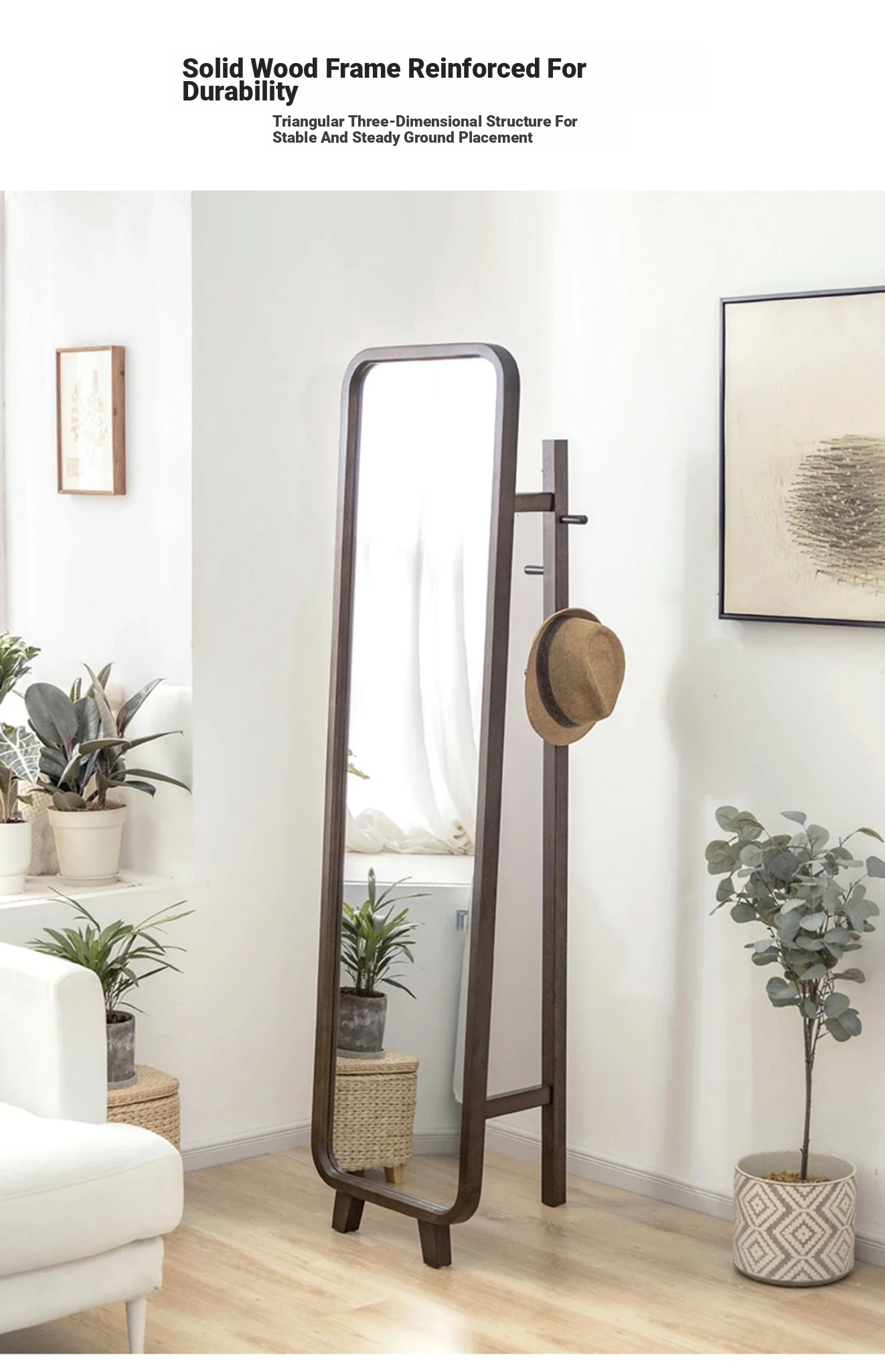 Innis Solid Wood Full-Length Mirror - Versatile Dressing Mirror with Coat Rack for Bedroom, Stylish Floor Mirror for Try-On and Dressing Needs