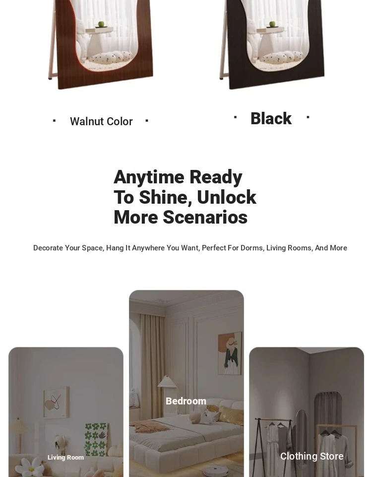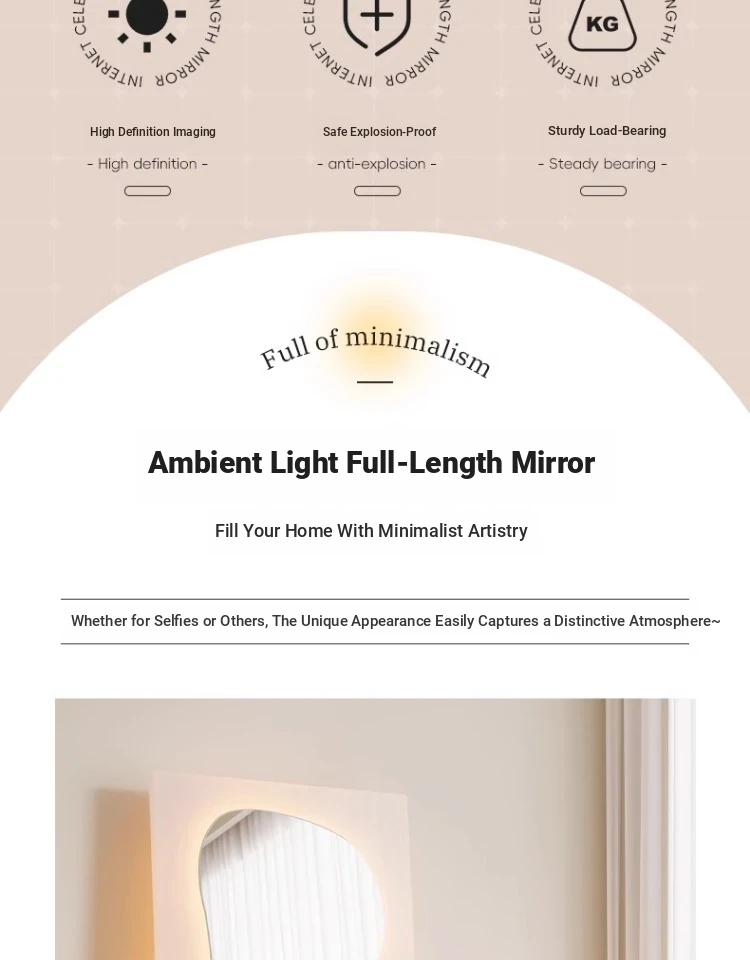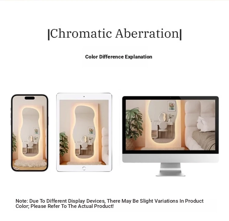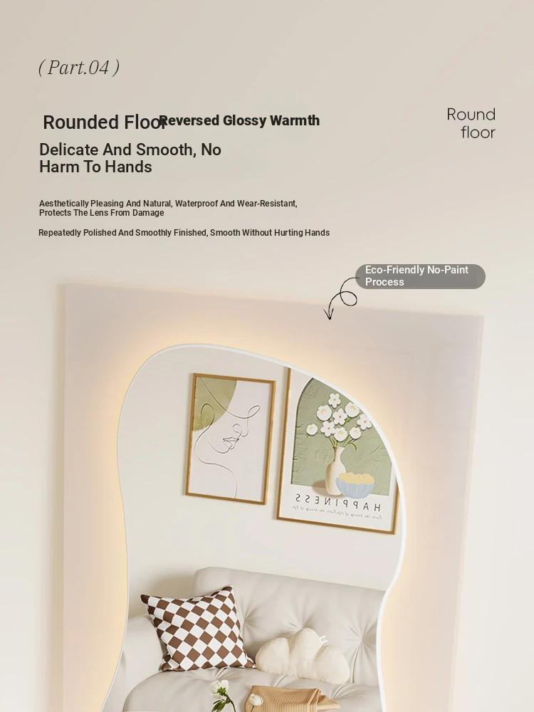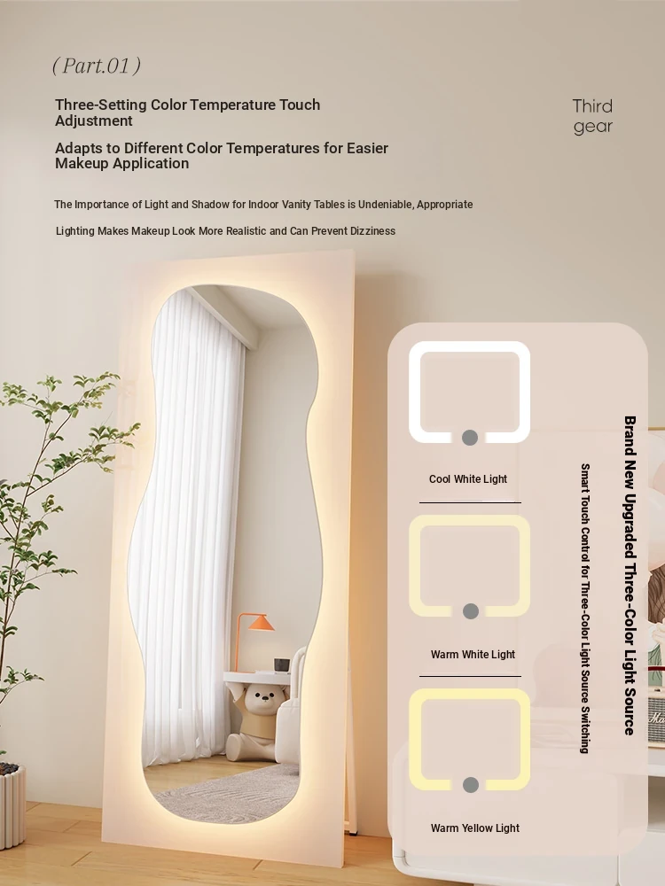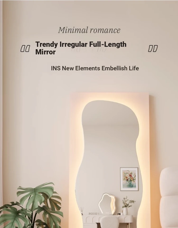 Irregular Shaped Full-Length Mirror with LED Lights - Wall-Mounted or Standing Dressing Mirror for Home Use, No Distortion, Perfect for Try-On Sessions.