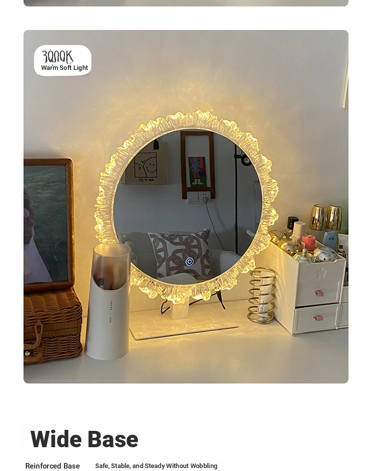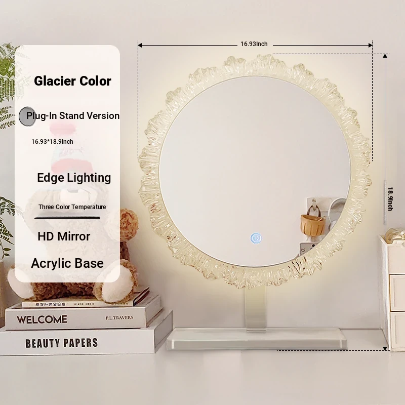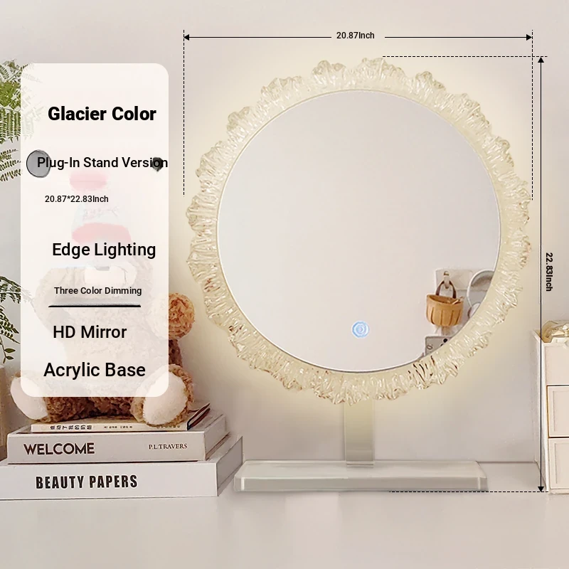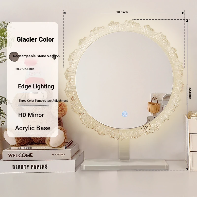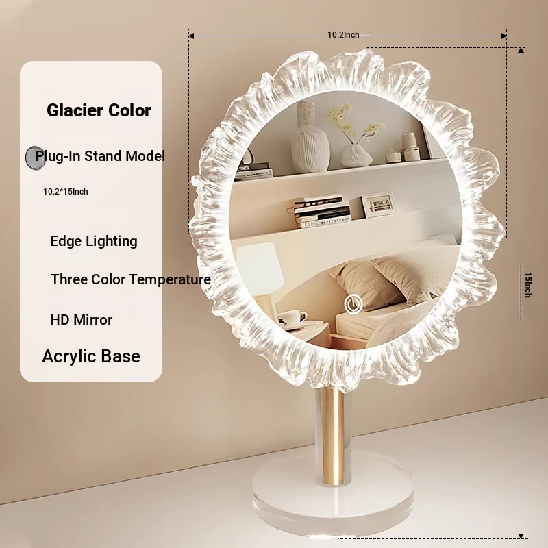 LED Makeup Mirror - Stylish Desktop Vanity Mirror with Acrylic Design, Smart Illuminated Beauty Mirror for a Gorgeous Makeup Experience in Trendy Aesthetic Style