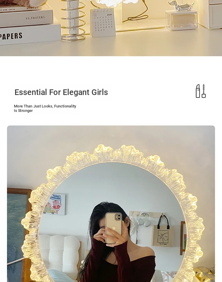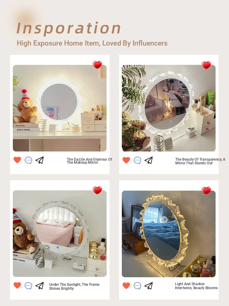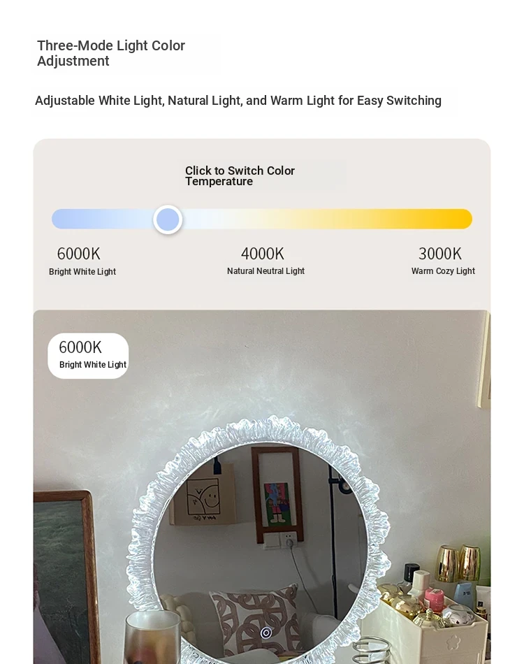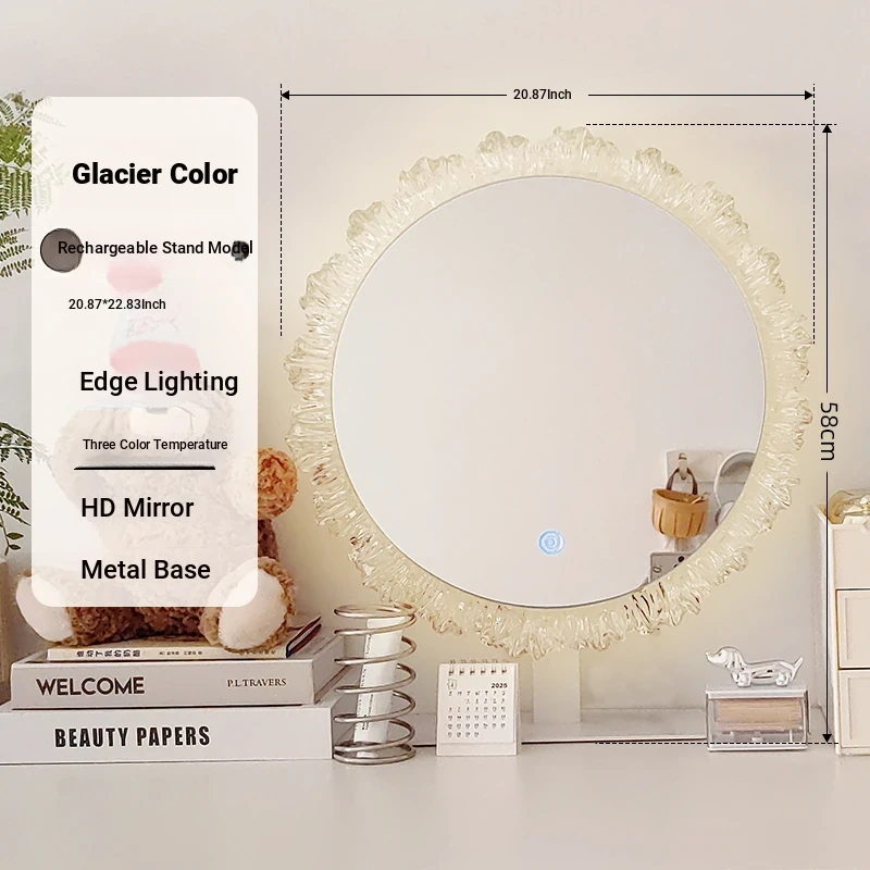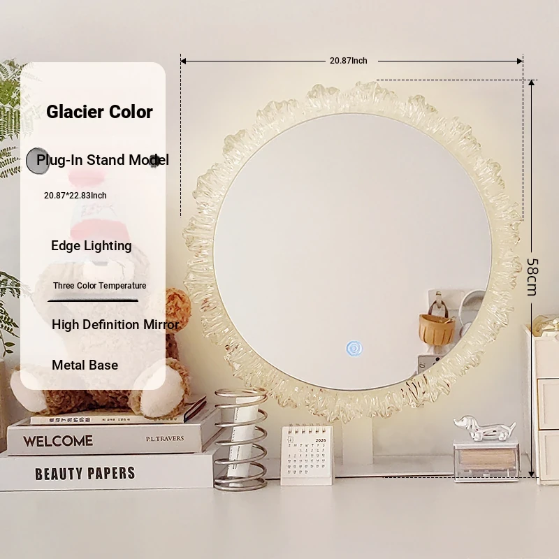 LED Makeup Mirror - Stylish Desktop Vanity Mirror with Acrylic Design, Smart Illuminated Beauty Mirror for a Gorgeous Makeup Experience in Trendy Aesthetic Style