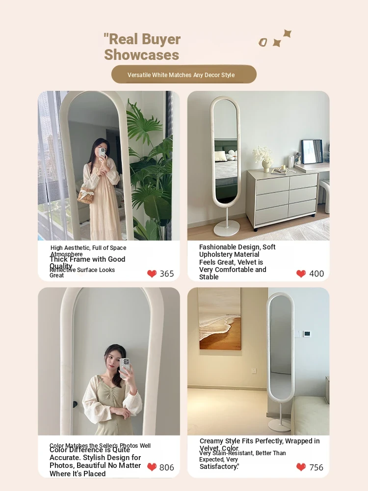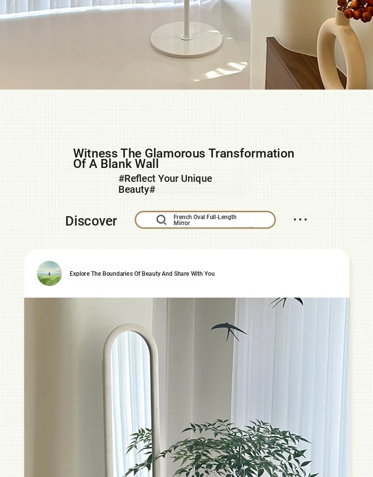 Luxury Full-Length Floor Mirror for Home - Stylish Wall-Mounted Dressing Mirror for Women, Perfect for Living Room and Fashion Try-Ons, Influencer-Approved Design