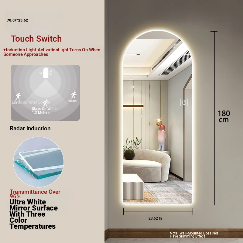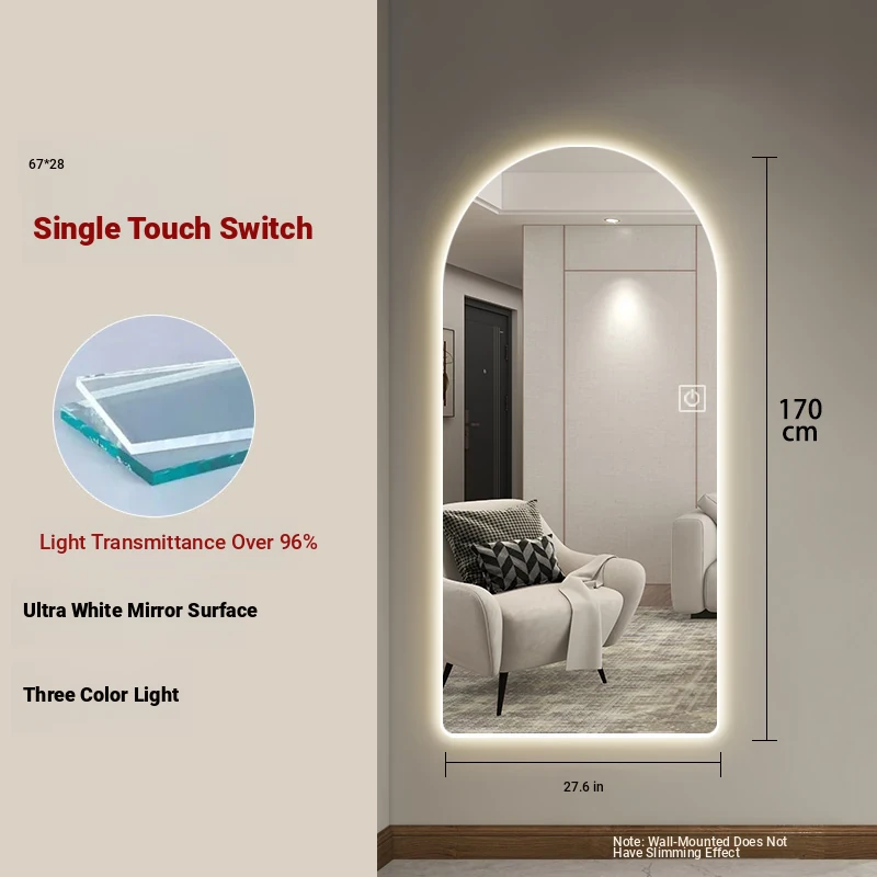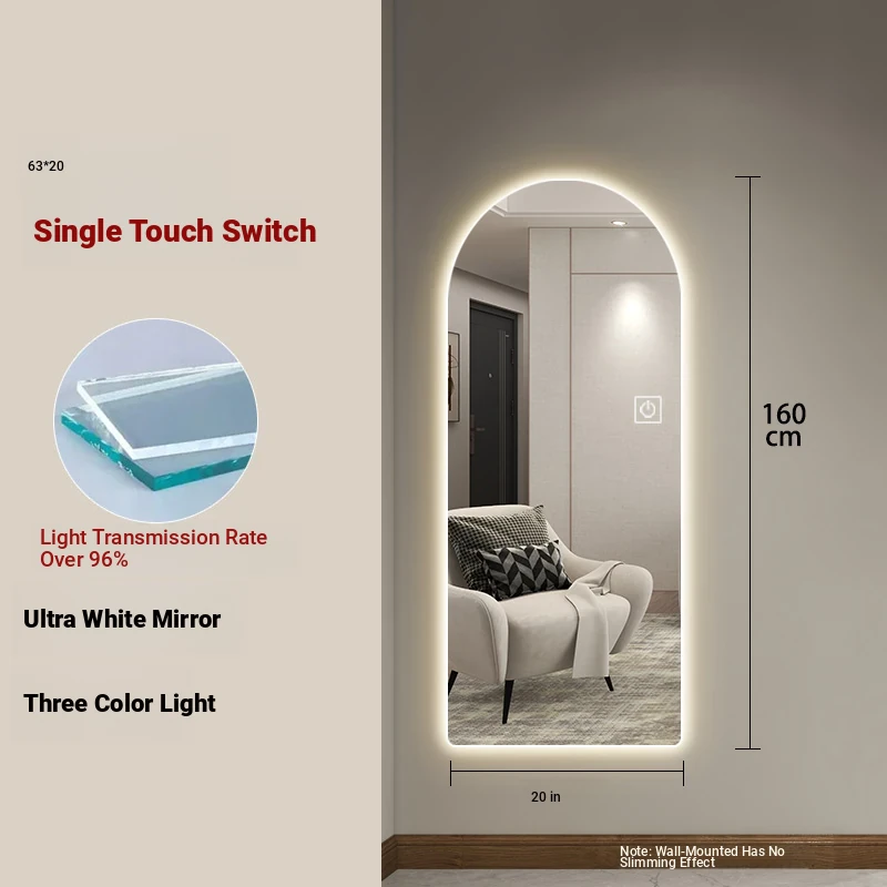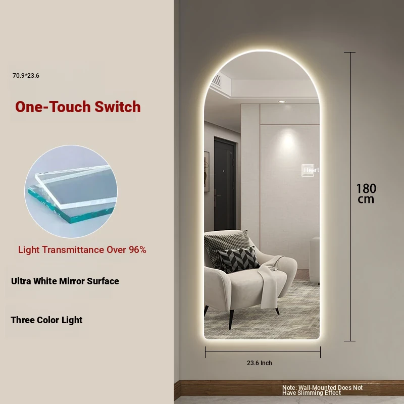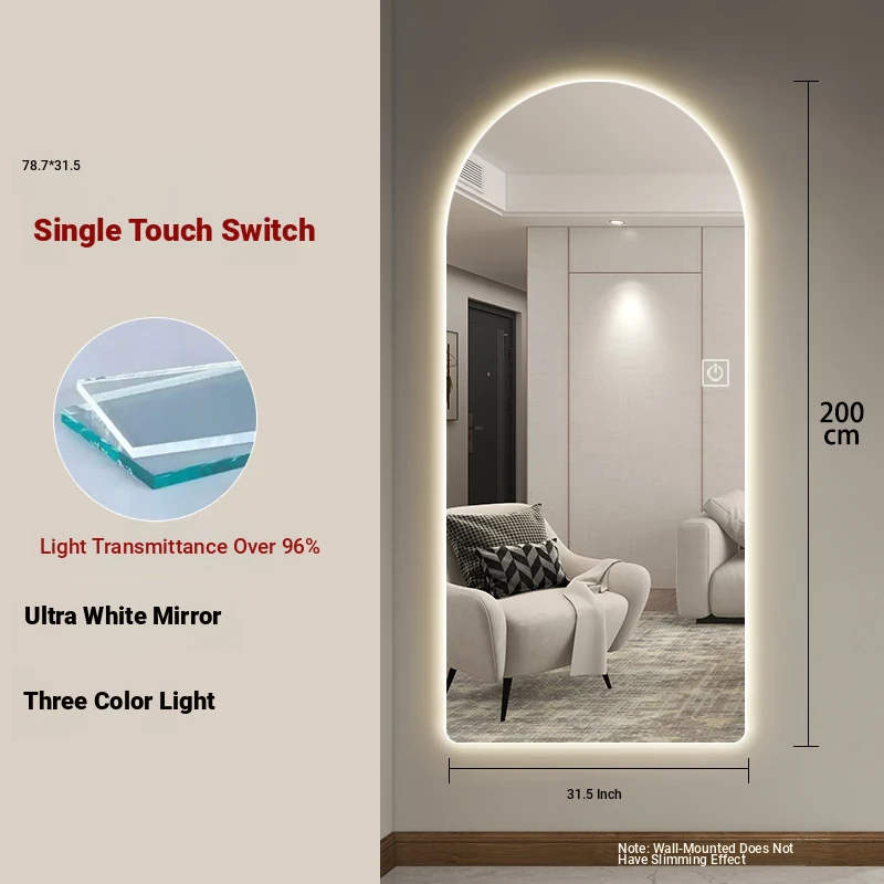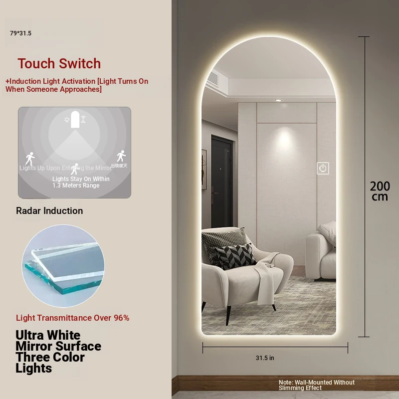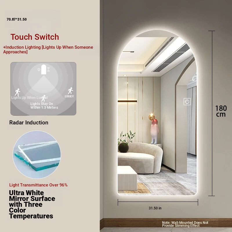 New Smart Dressing Mirror with LED Backlight - Arch-Shaped Wall-Mounted Full-Length Mirror for Home Entryway, Frameless Design for Convenient Try-On