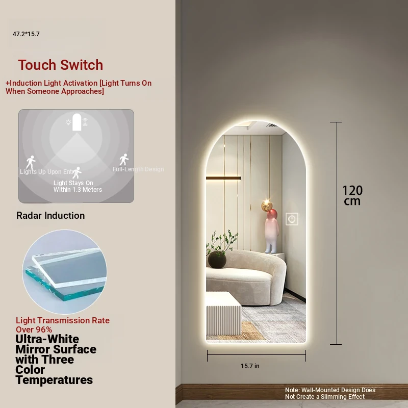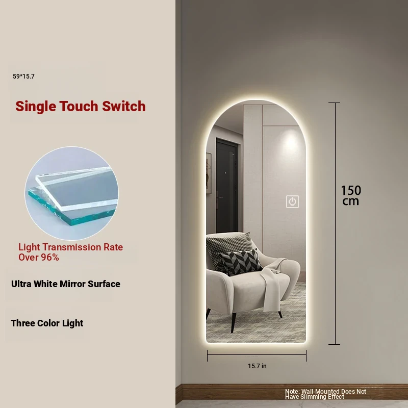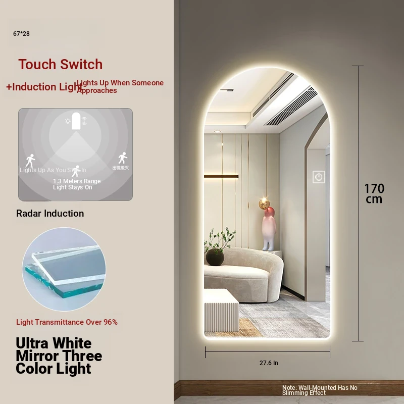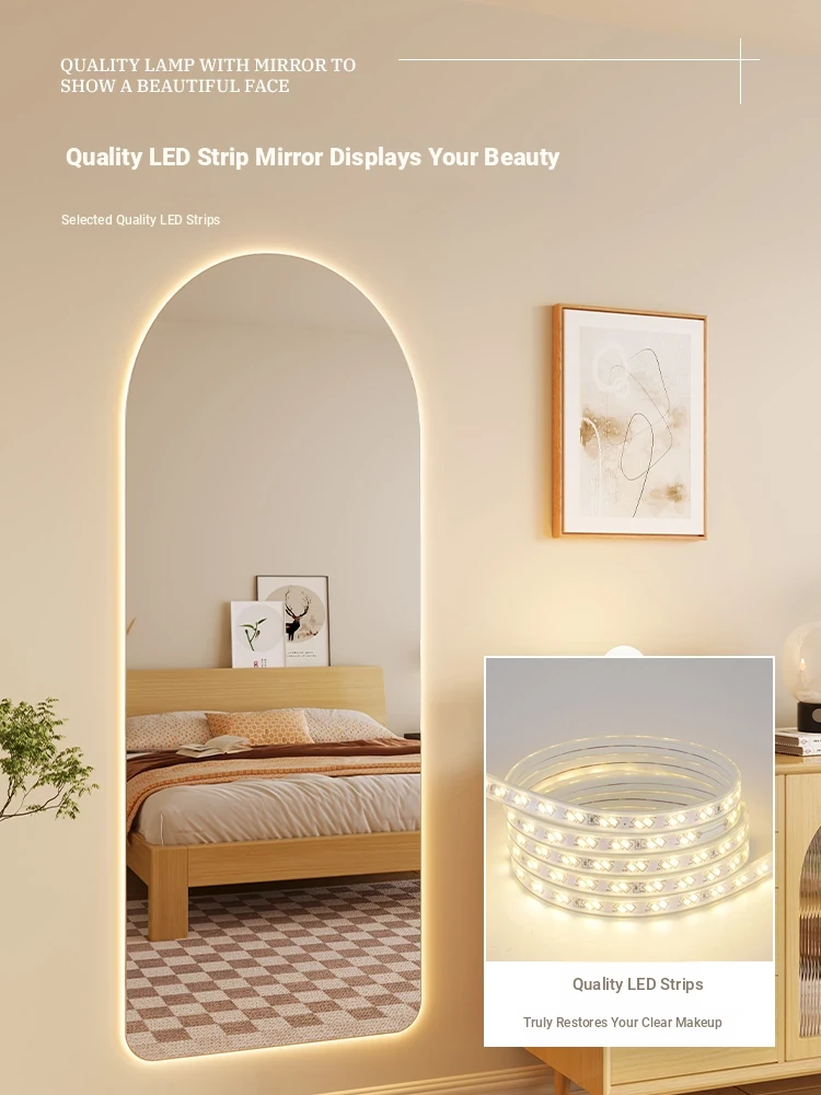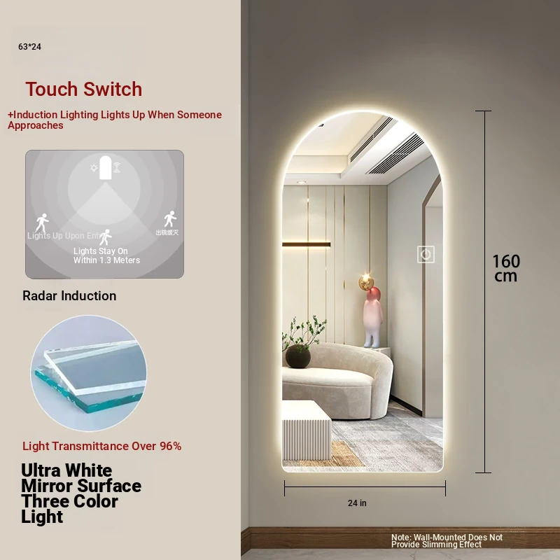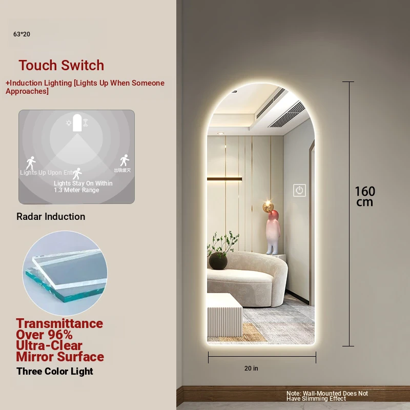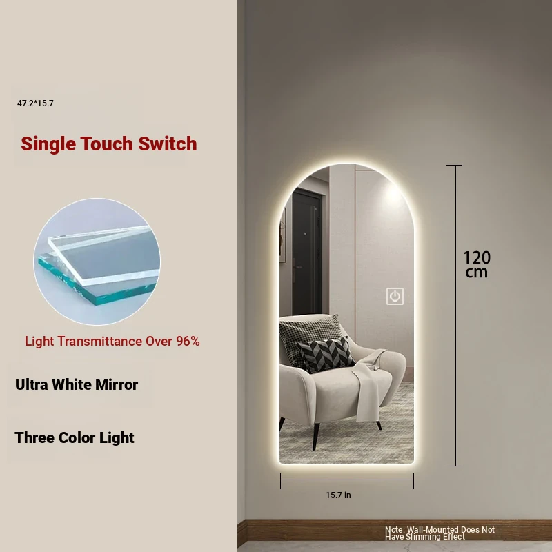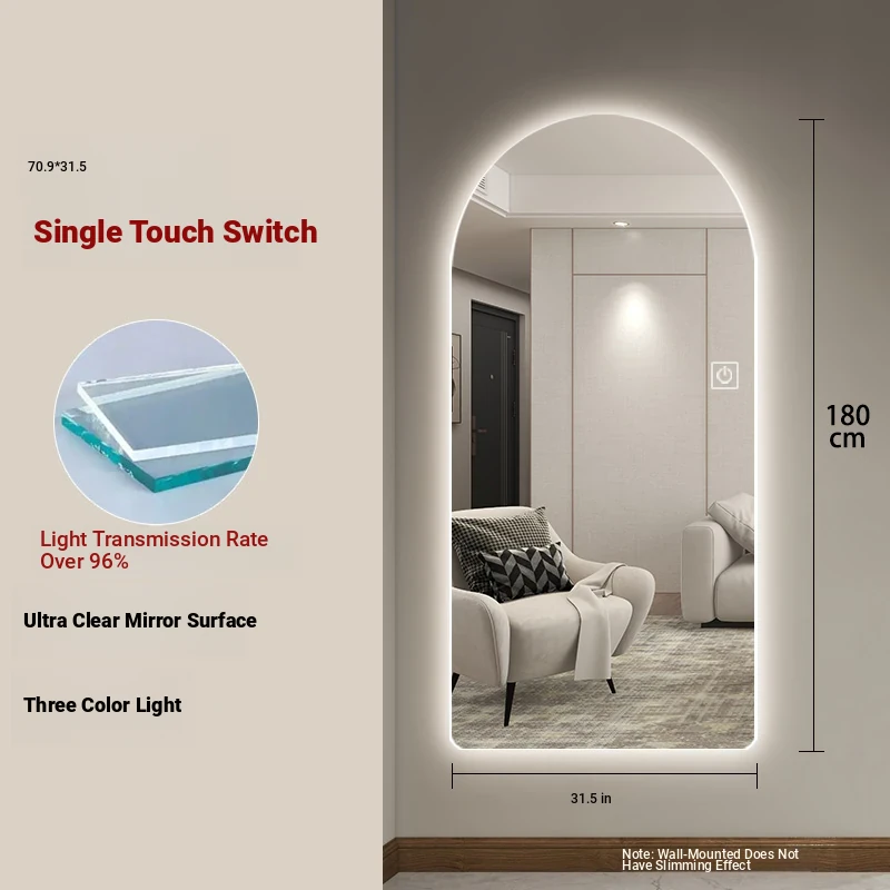 New Smart Dressing Mirror with LED Backlight - Arch-Shaped Wall-Mounted Full-Length Mirror for Home Entryway, Frameless Design for Convenient Try-On