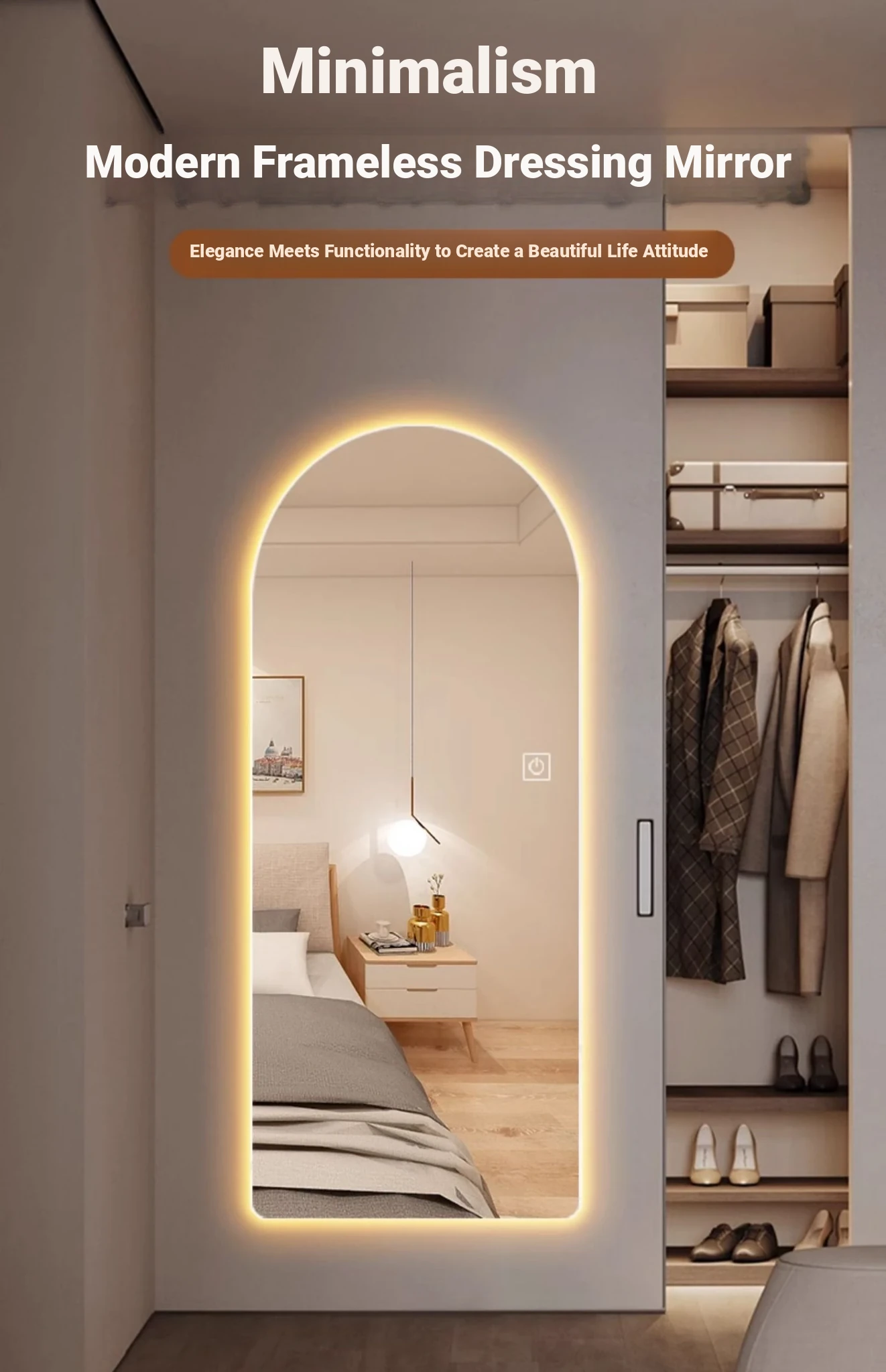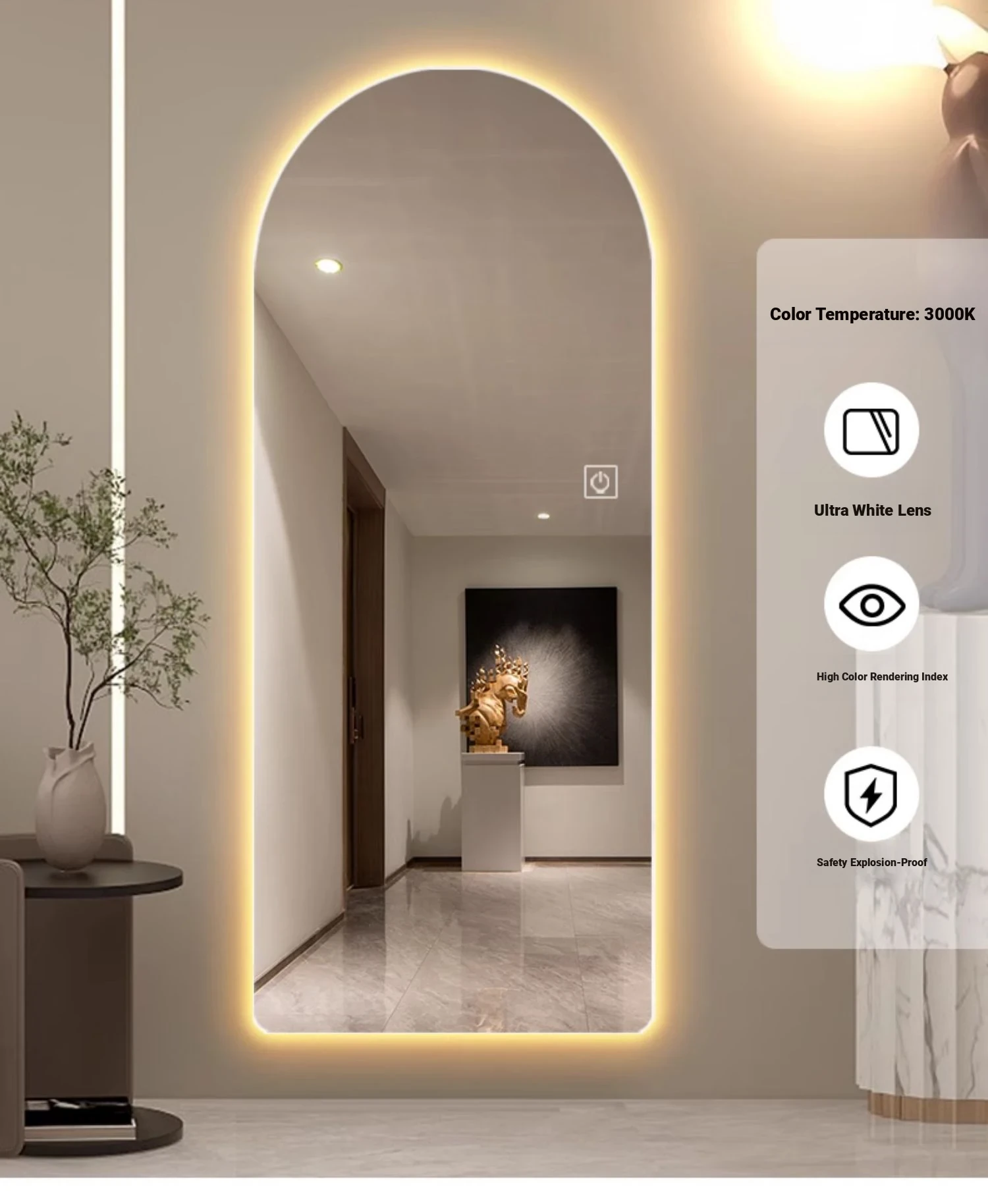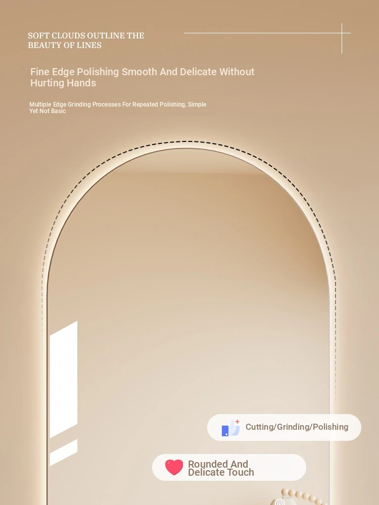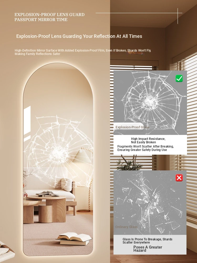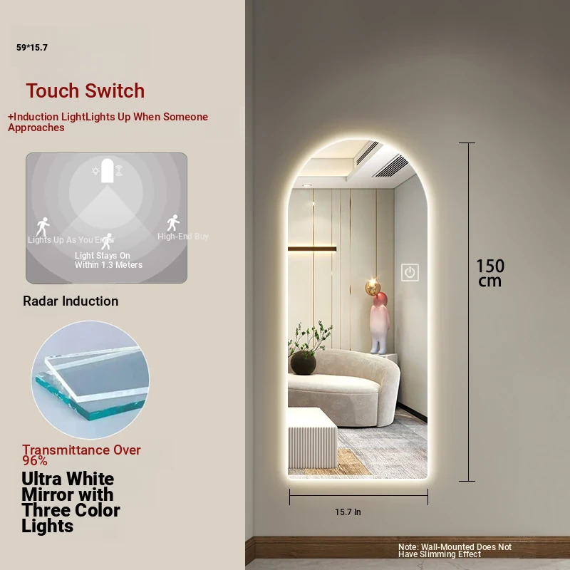 New Smart Dressing Mirror with LED Backlight - Arch-Shaped Wall-Mounted Full-Length Mirror for Home Entryway, Frameless Design for Convenient Try-On