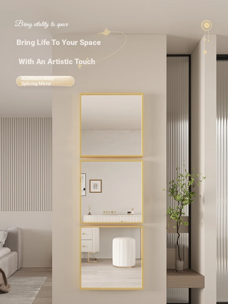 Self-Adhesive No-Drill Wall Mirror for Living Room and Entryway - Stylish Full-Length Hanging Dressing Mirror, Perfect for Home Decor and Fashion Try-Ons