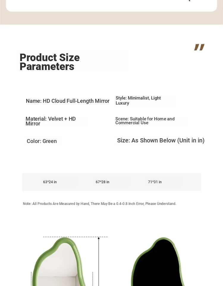 Stylish Full-Length Wall-Mounted Mirror for Women - Perfect for Dressing Rooms and Bedrooms, Ideal for Makeup and Outfit Try-Ons, Trendy and Space-Saving Design