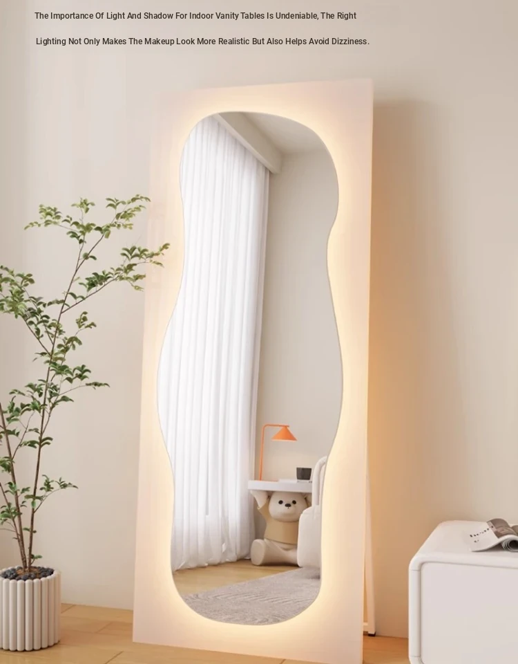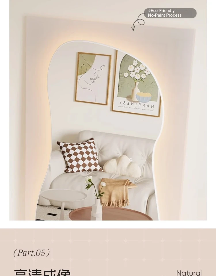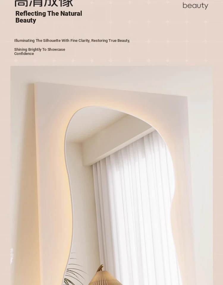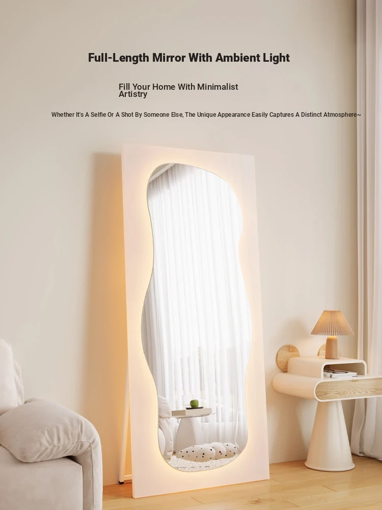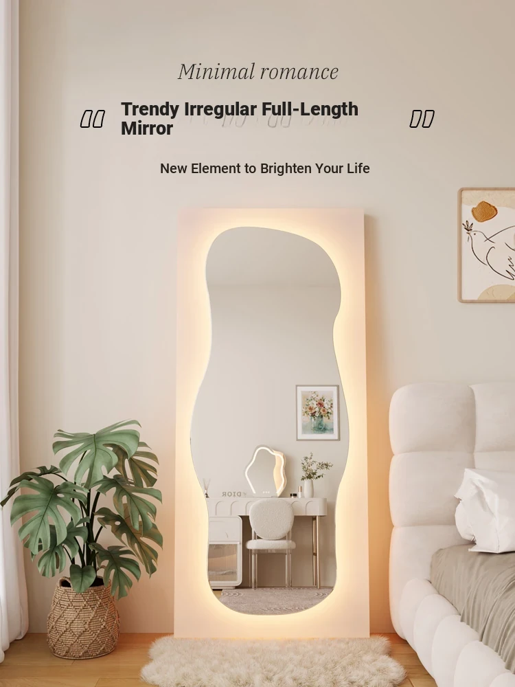 Unique Full-Length Dressing Mirror - Stylish Floor Mirror for Home, Bedroom, and Fashion Lovers - Versatile Wall-Mounted or Adhesive Irregular Shape Try-On Mirror