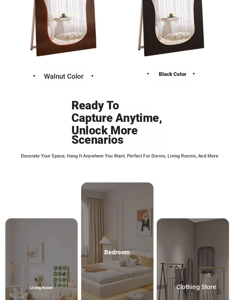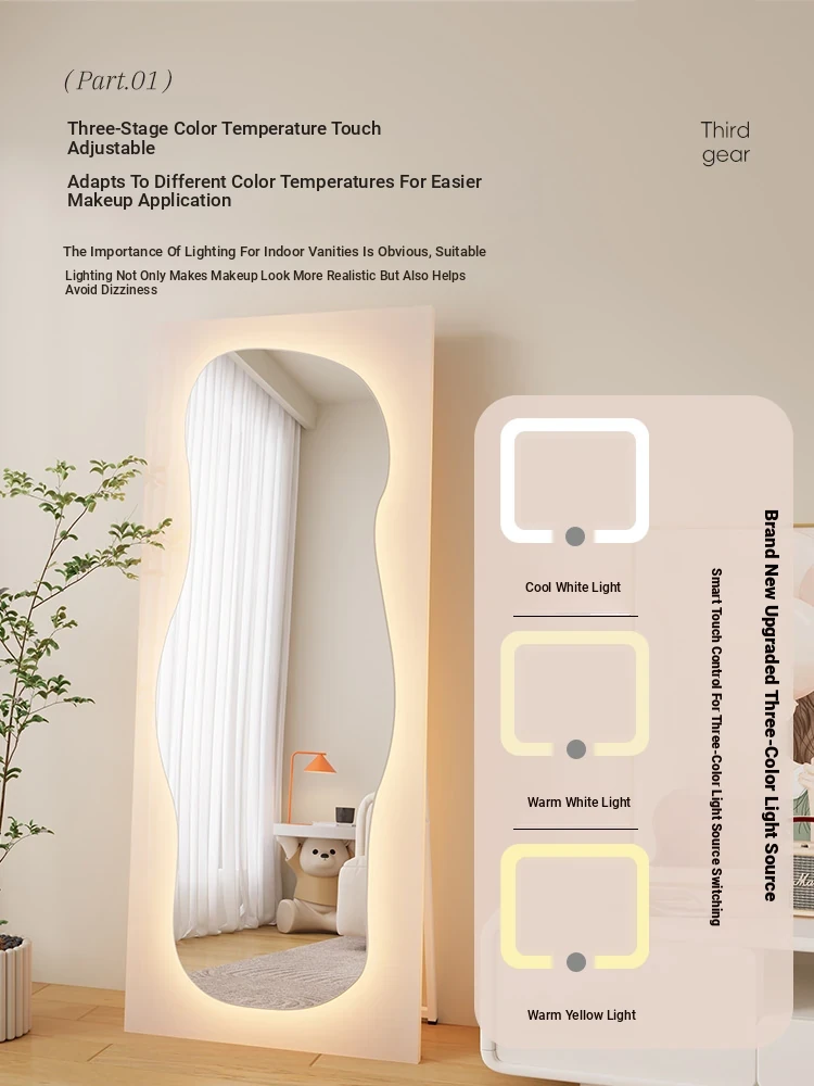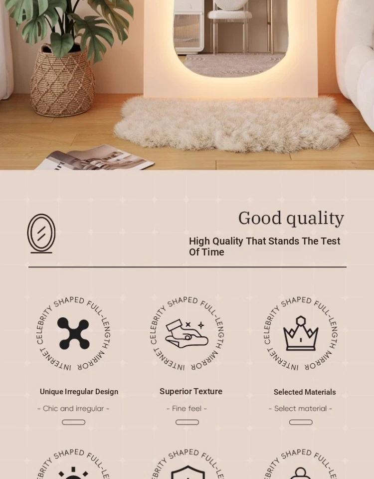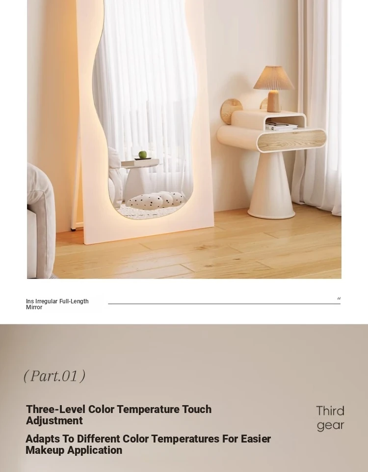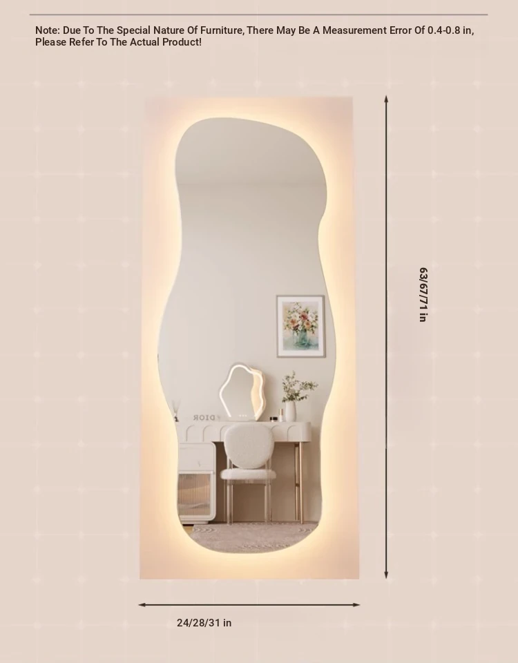 Unique Full-Length Dressing Mirror - Stylish Floor Mirror for Home, Bedroom, and Fashion Lovers - Versatile Wall-Mounted or Adhesive Irregular Shape Try-On Mirror