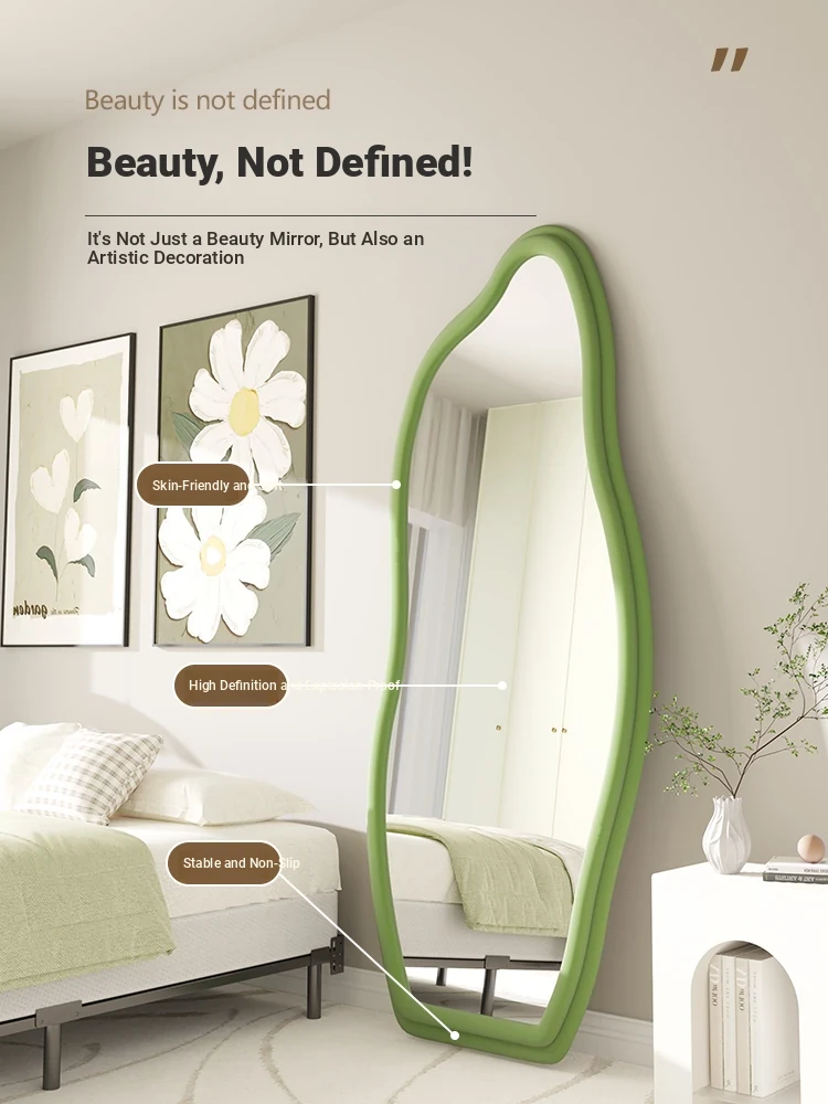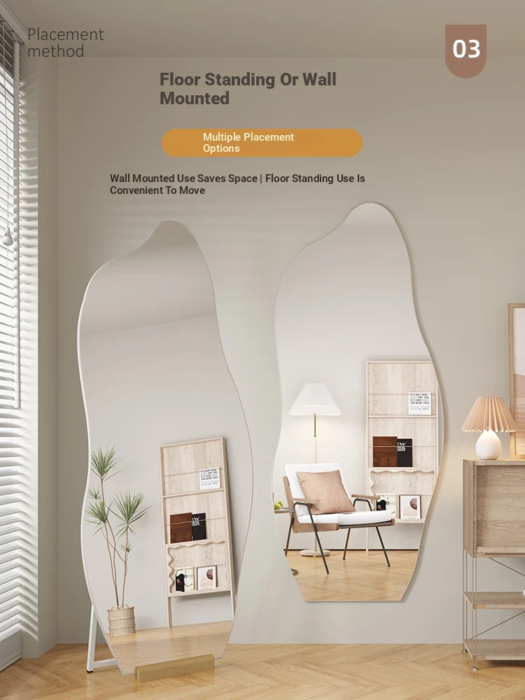 Stylish Full-Length Wall-Mounted Mirror - Irregular Design, Trendy and Versatile, Perfect for Dressing Rooms or Living Spaces, High-End Aesthetic, Can Be Freestanding or Hung