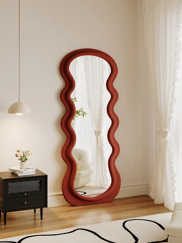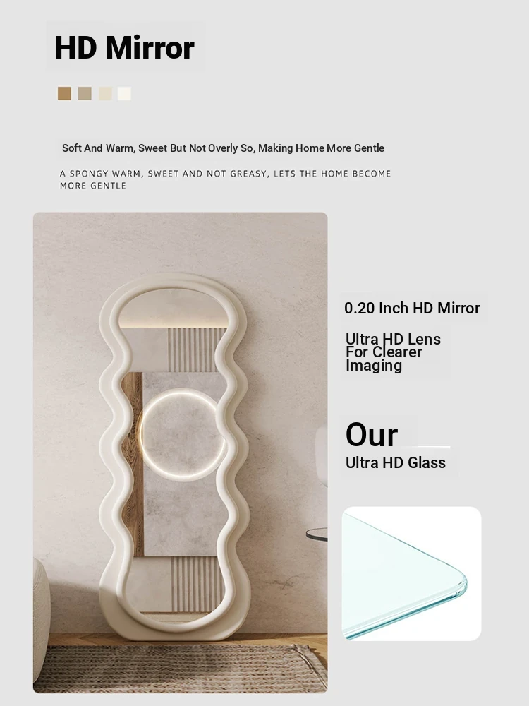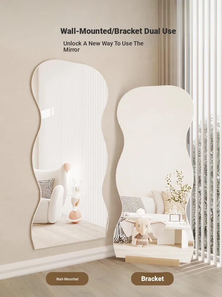 Stylish Full-Length Floor Mirror - Versatile Wall-Mounted or Free-Standing Design for Home Use, Elegant Wave-Edge Dressing Mirror, Perfect for Your Chic Space
