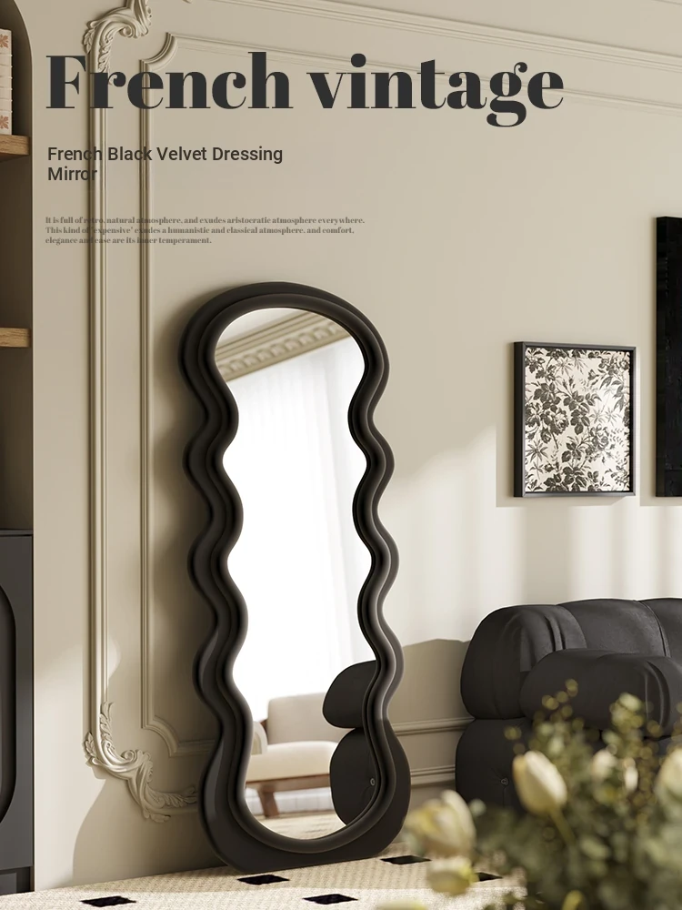 Stylish French-Inspired Irregular Full-Length Floor Mirror – Chic Home Dressing Mirror with Cloud Wall Hanging Design, Perfect for Fashion Lovers!