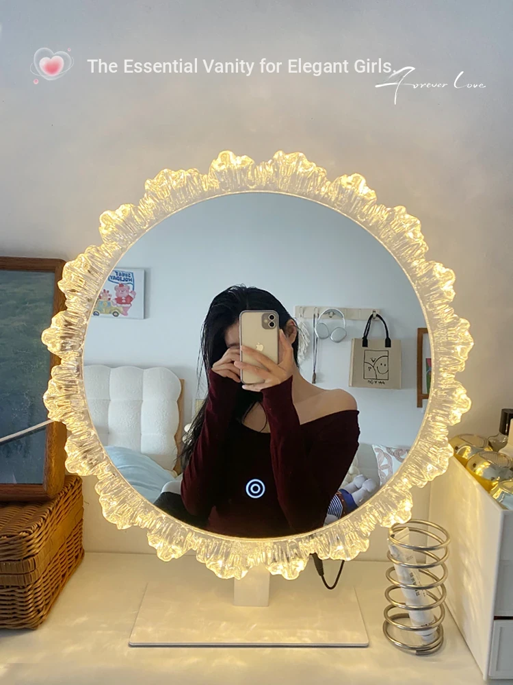 LED Makeup Mirror - Stylish Desktop Vanity Mirror with Acrylic Design, Smart Illuminated Beauty Mirror for a Gorgeous Makeup Experience in Trendy Aesthetic Style