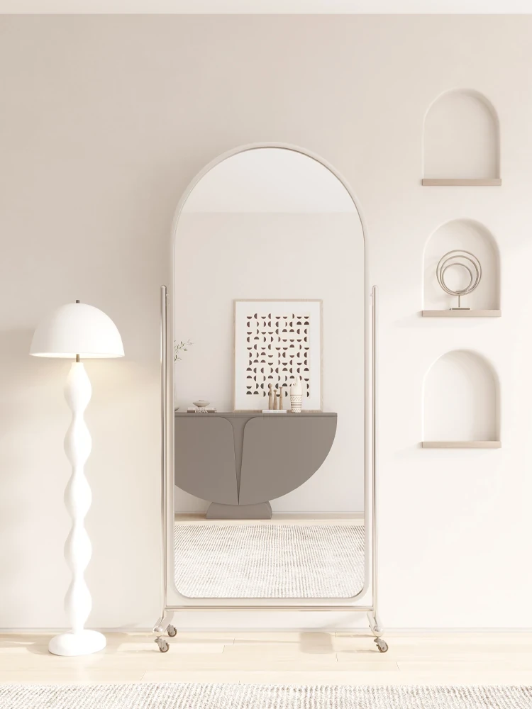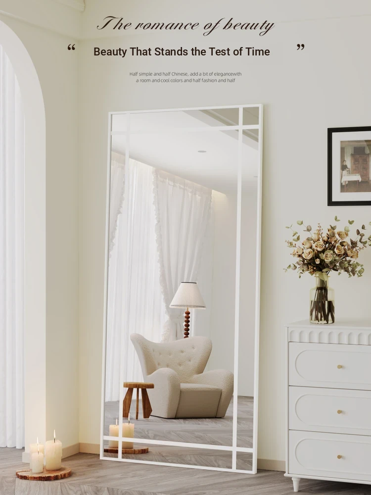 French Cream Style Full-Length Dressing Mirror - Trendy Unique Floor Mirror for Home Use, Wall-Mounted or Free-Standing, Perfect for Bedroom and Fitting Room.