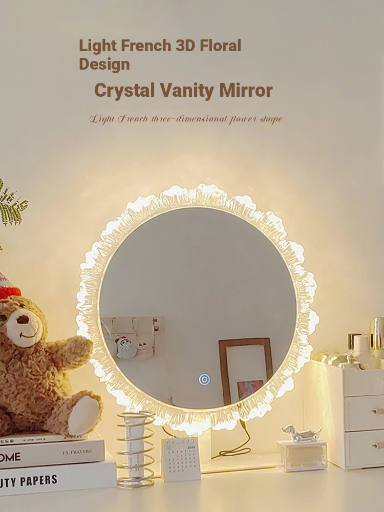 Trendy Sunflower LED Makeup Mirror - Smart Vanity Mirror for Girls' Bedrooms, Unique Irregular Design for Flawless Beauty Application