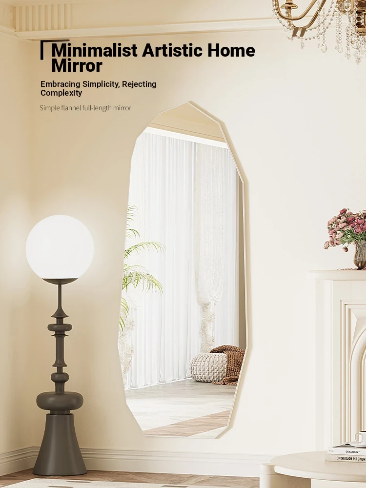 Elegant Cream Full-Length Dressing Mirror - Chic Wall-Mounted Mirror for Bedroom, Irregular Design Perfect for Girls' Fashion Styling
