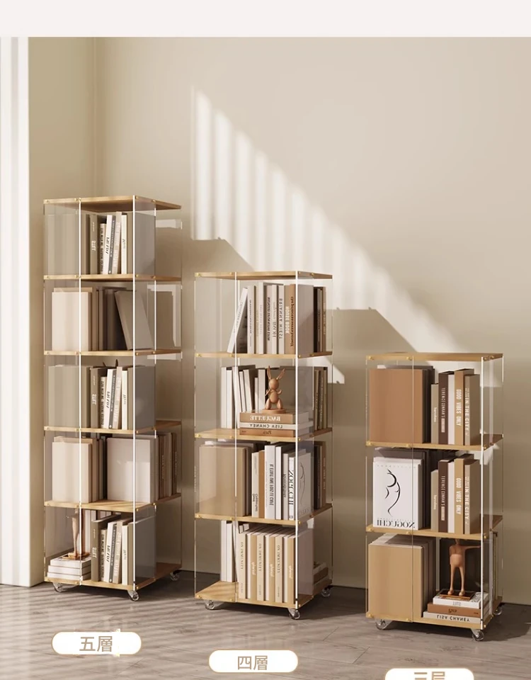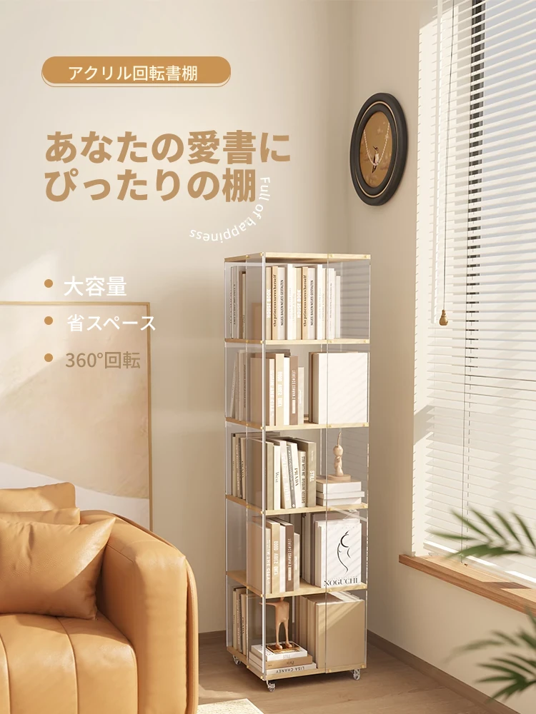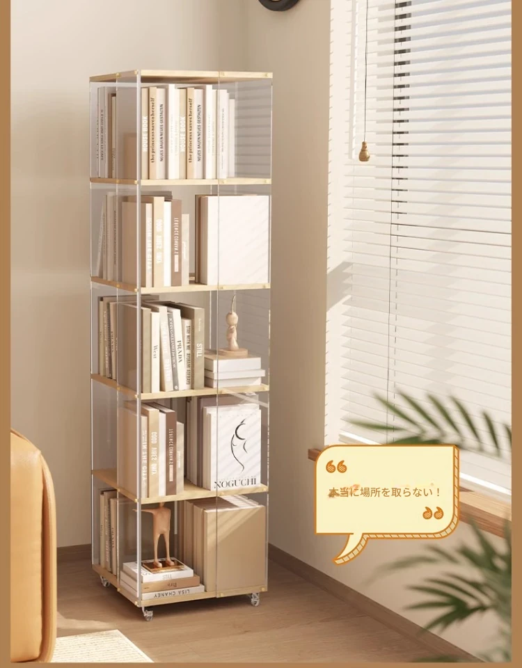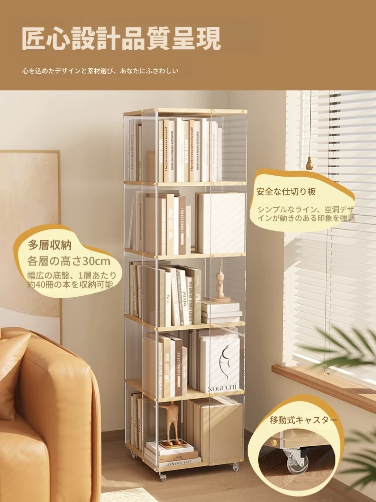 360度回転可能な実木製キッズ収納ラック!移動も楽々、キャスター付きのアクリル角型書棚。お部屋をおしゃれに彩る、子供の本を楽しく整理整頓!