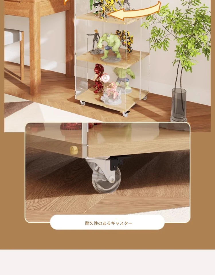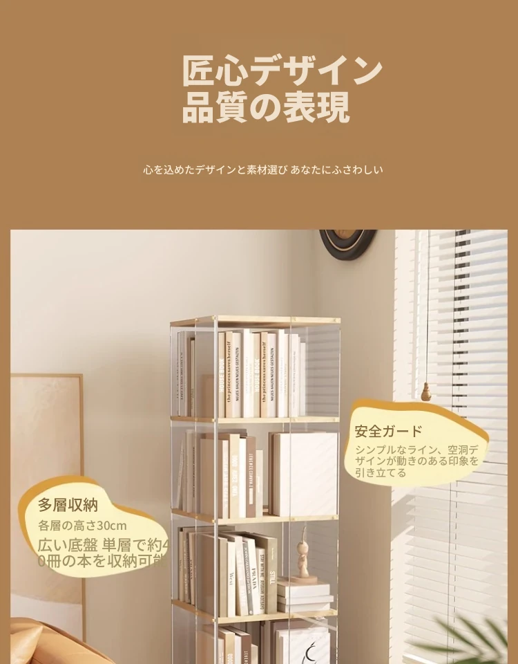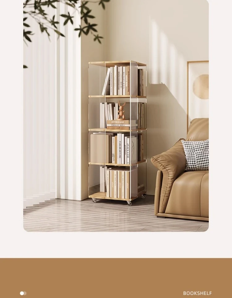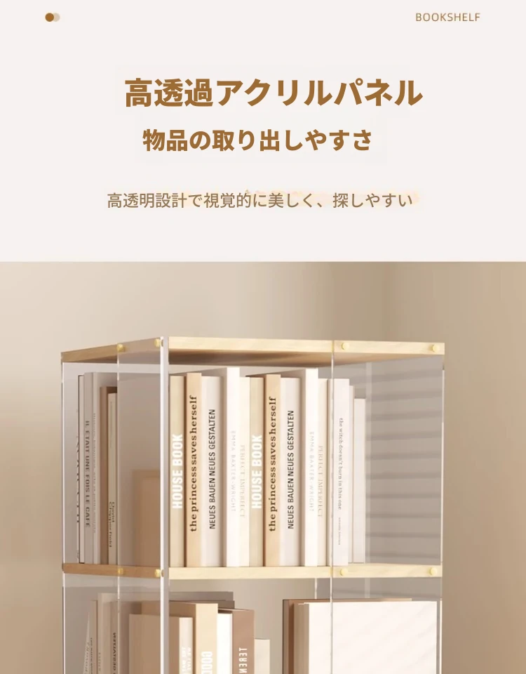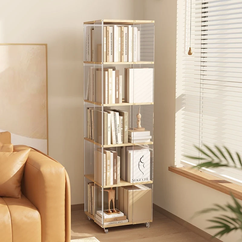 360度回転可能な実木製キッズ収納ラック!移動も楽々、キャスター付きのアクリル角型書棚。お部屋をおしゃれに彩る、子供の本を楽しく整理整頓!
