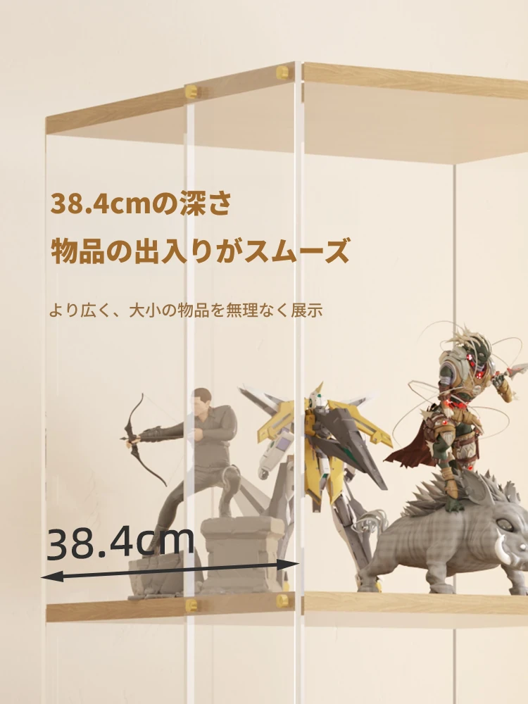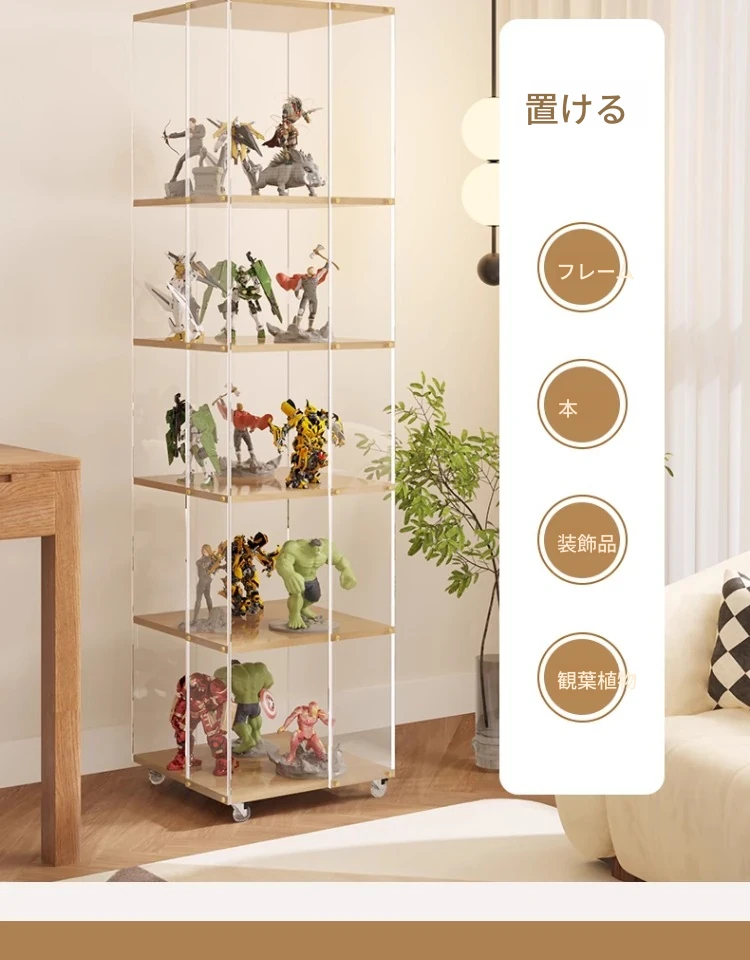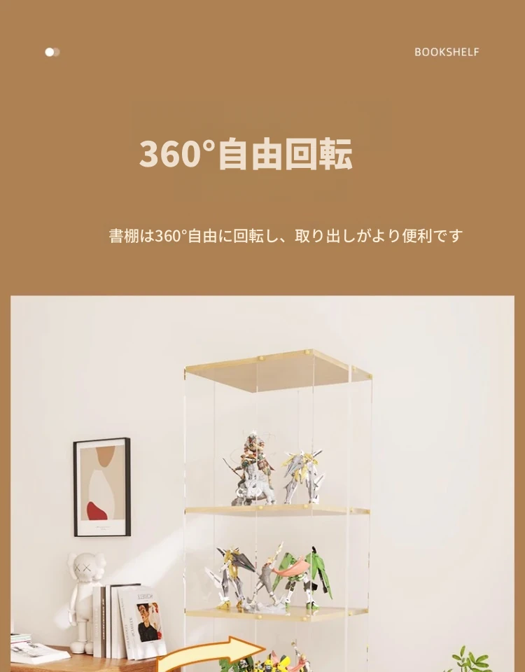 透明/ナチュラルウッド色五段【高透明アクリル360°回転】
