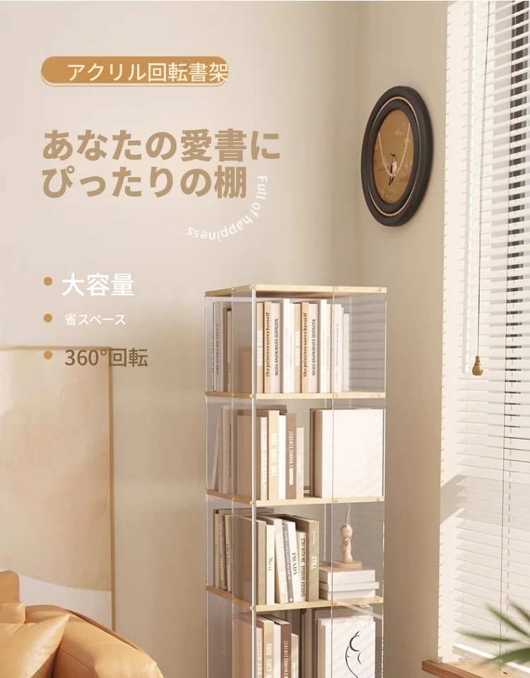 透明/ナチュラルウッド色四段【高透明アクリル360°回転】