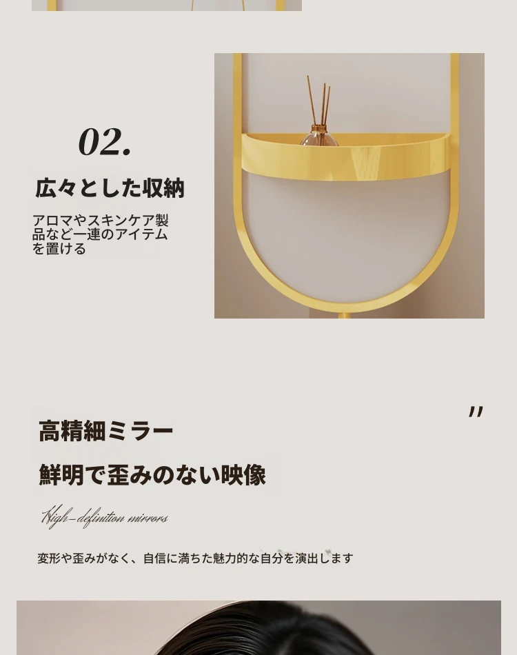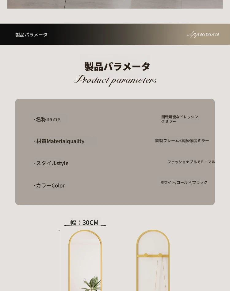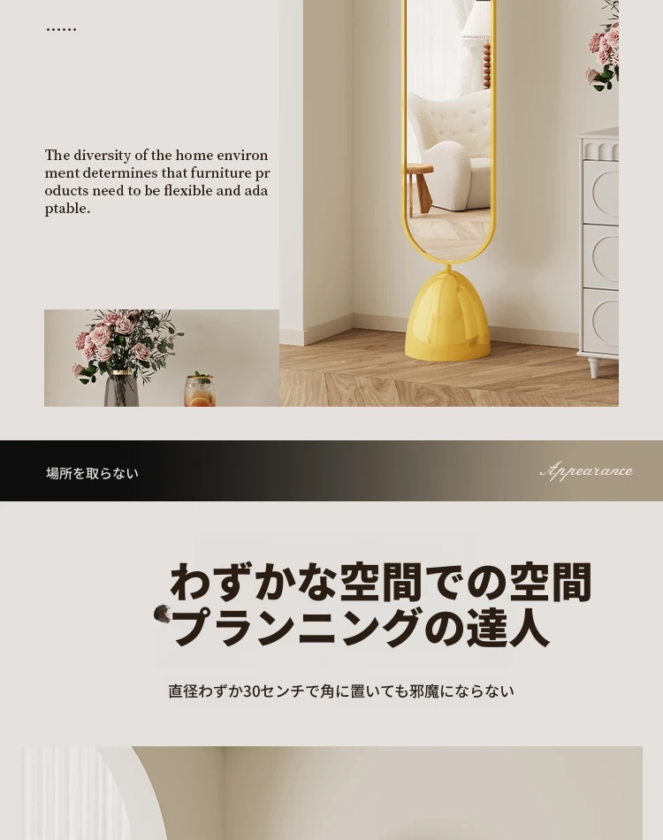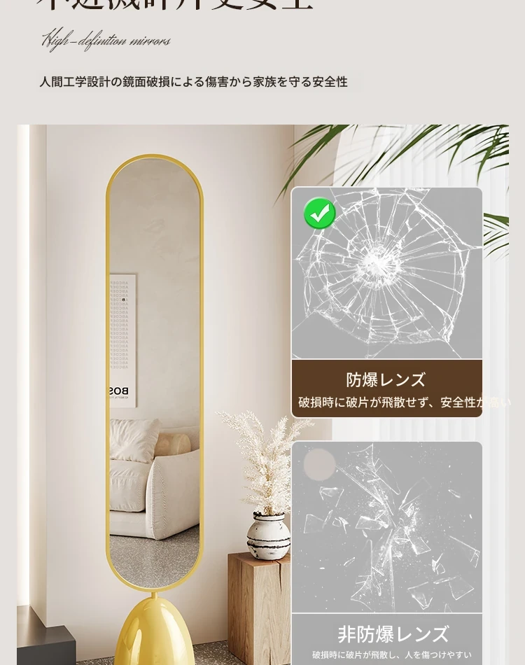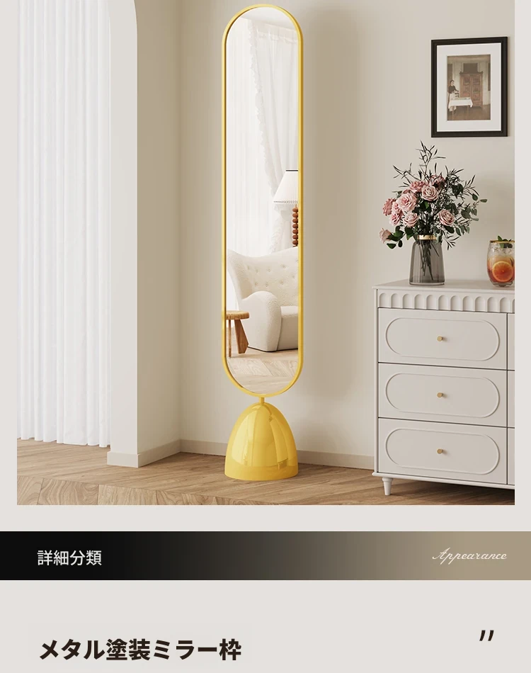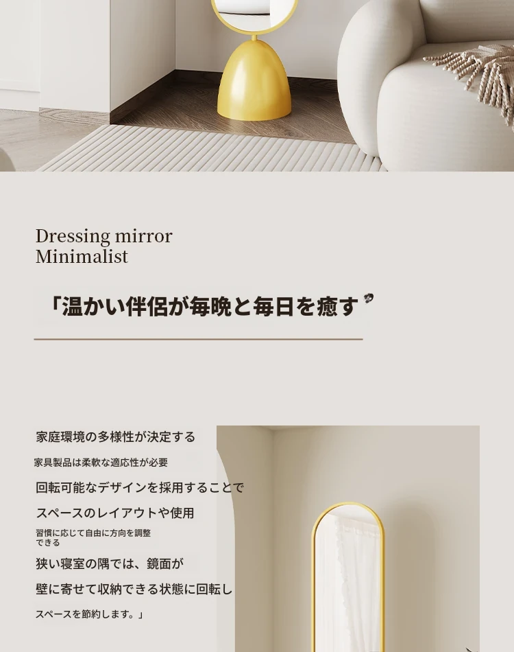 全身鏡 家庭用クリーム風ドレッシングミラー 小型リビングに最適 シンプルでモダンな玄関用スタンドミラー おしゃれにコーディネートを楽しむ必需品!