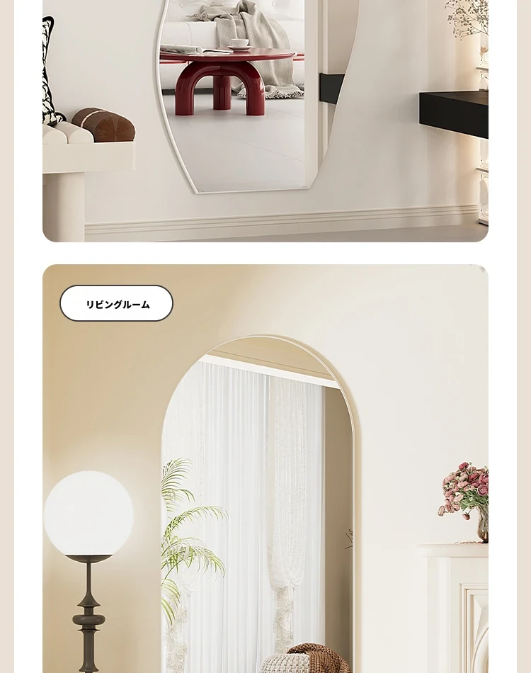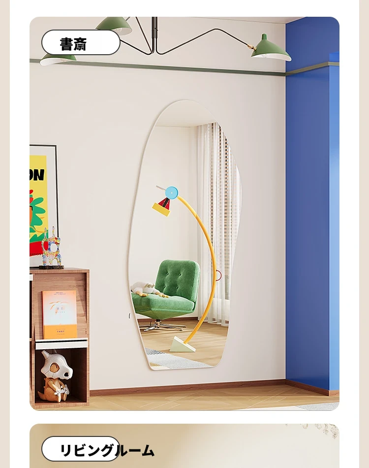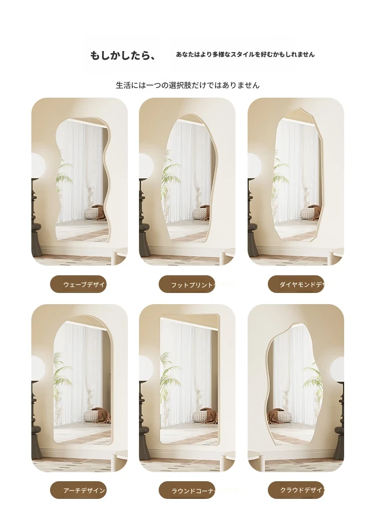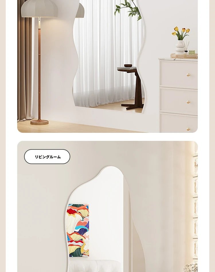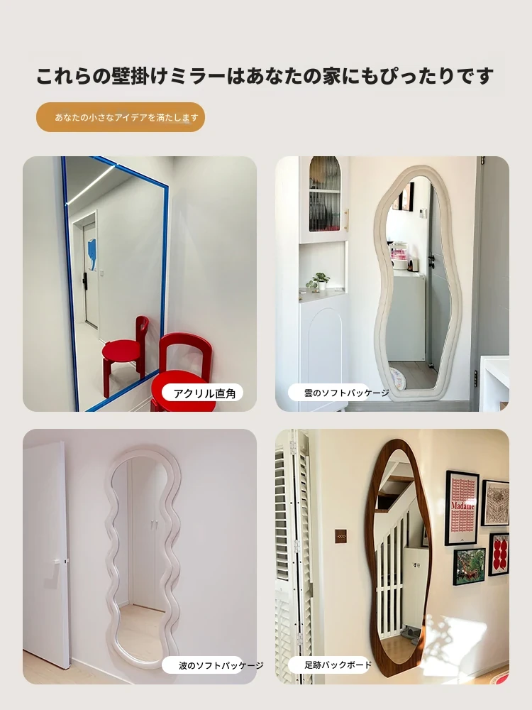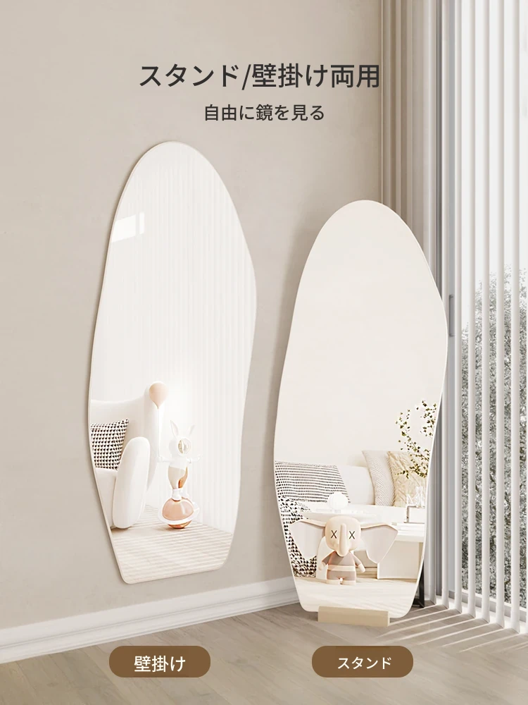 クリーム風全身鏡|壁掛け式・不規則デザイン・女の子の寝室にぴったりな試着用ミラー|おしゃれで個性的な空間を演出!