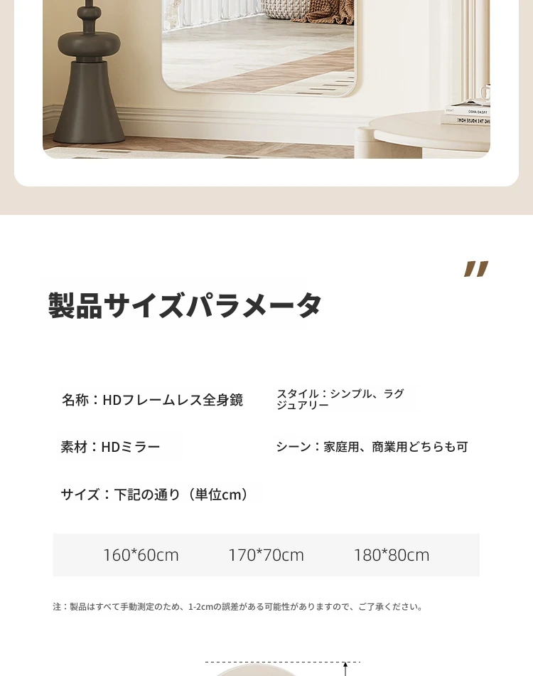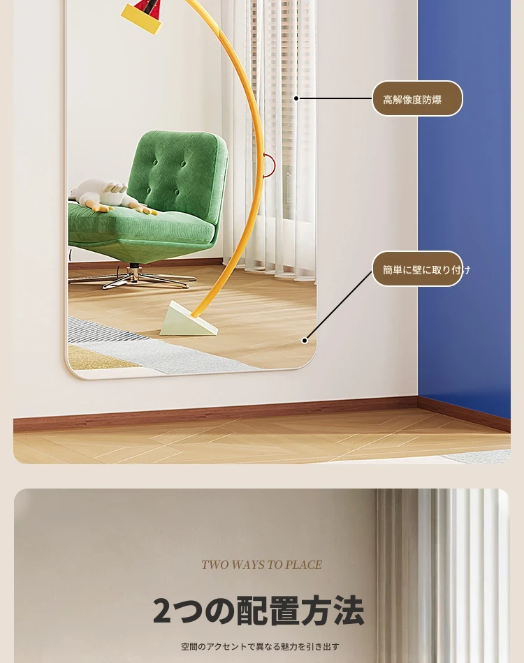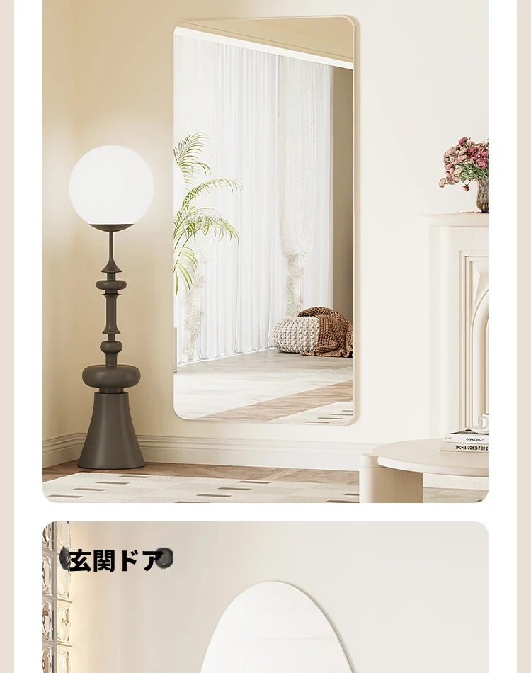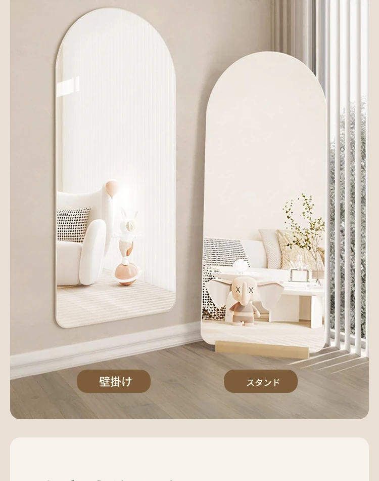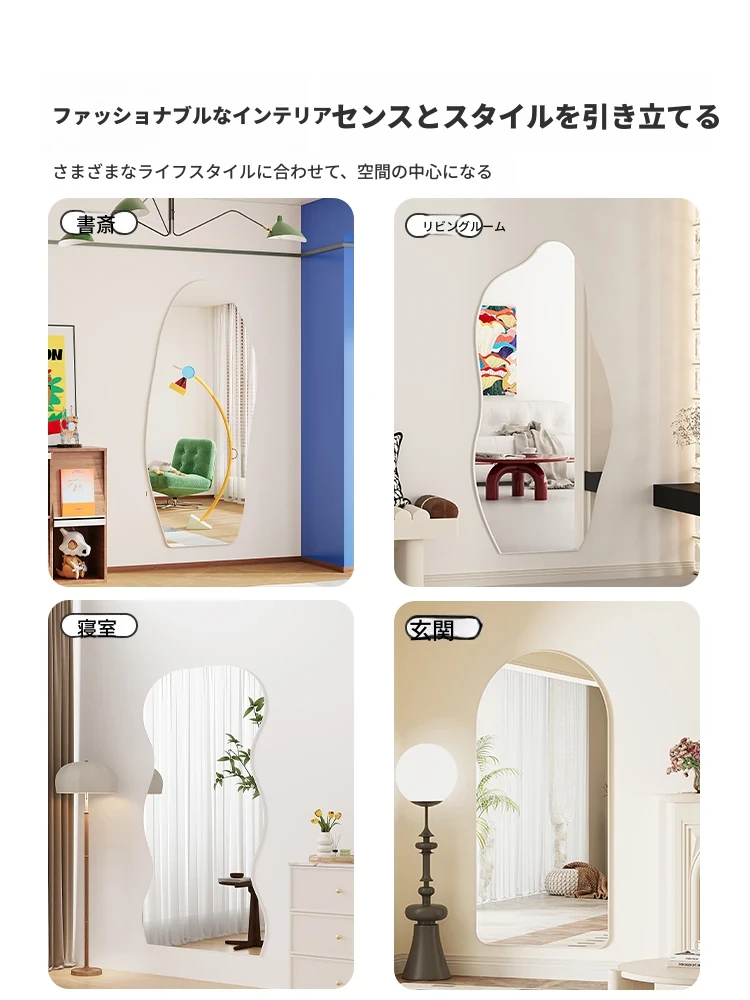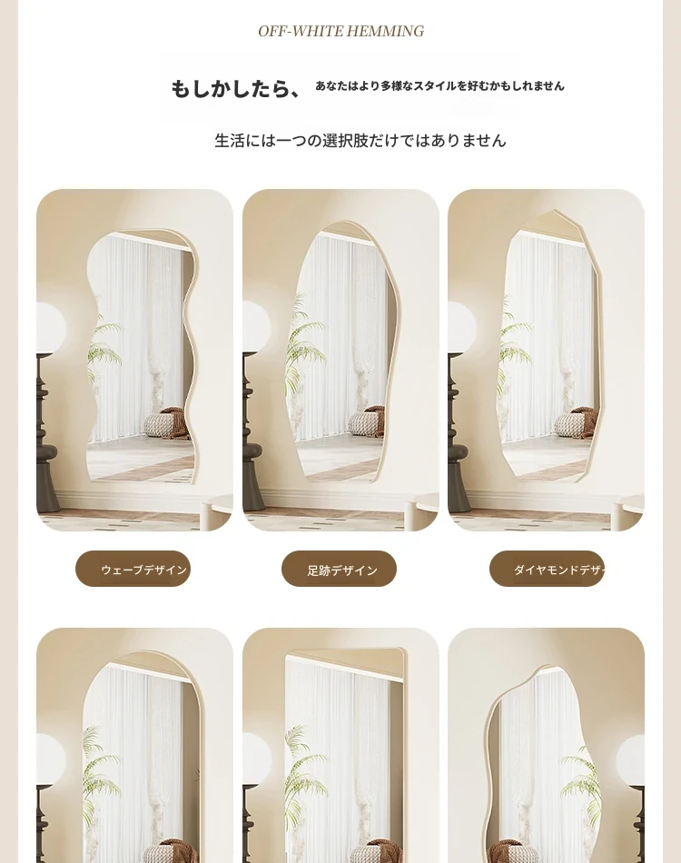 クリーム風全身鏡|壁掛け式・不規則デザイン・女の子の寝室にぴったりな試着用ミラー|おしゃれで個性的な空間を演出!
