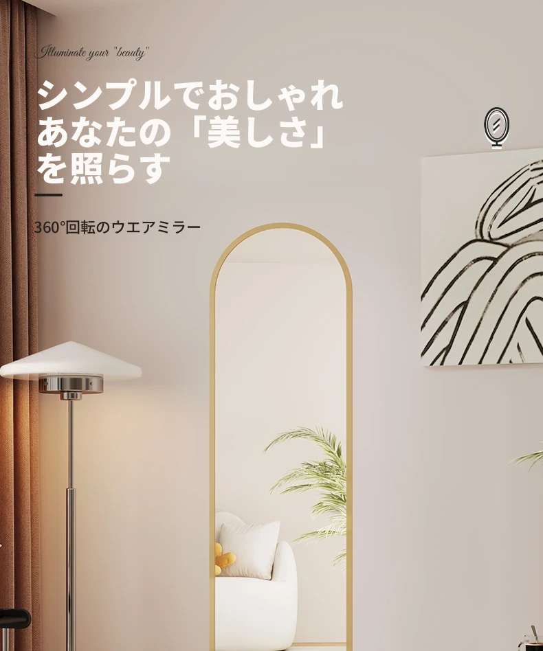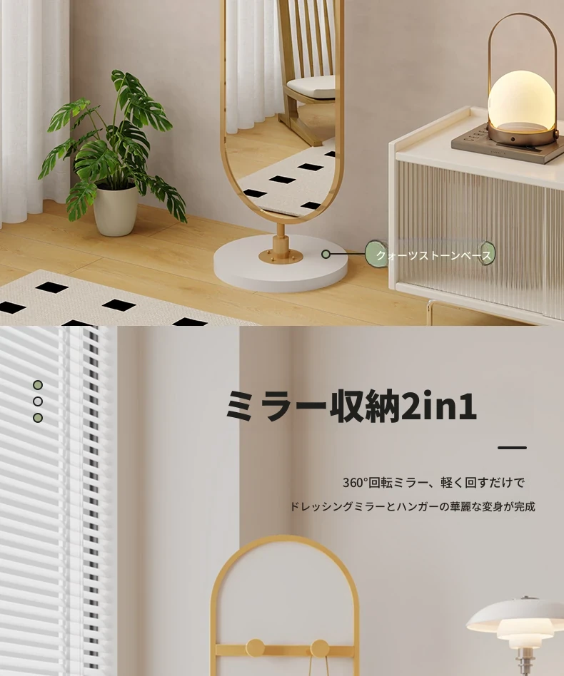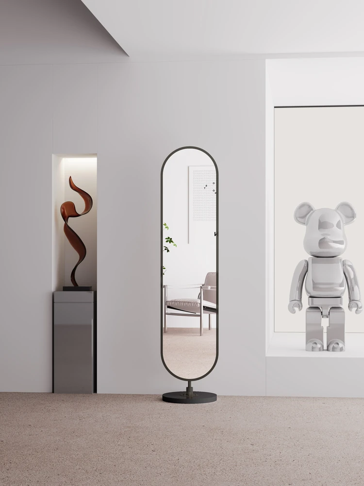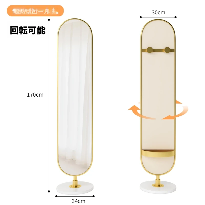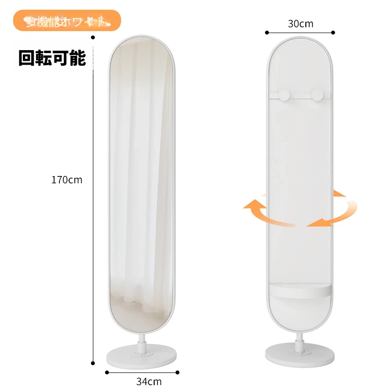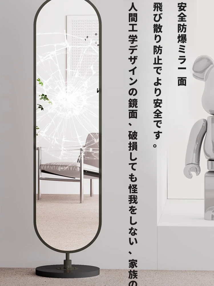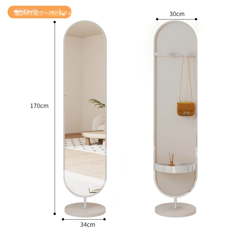クリーム風家用全身鏡 - シンプルでスタイリッシュな立体型、寝室に最適な回転式試着鏡!小型スペースにぴったりフィット、コーディネートを楽しくサポートします。あなたのスタイルを引き立てる一品!