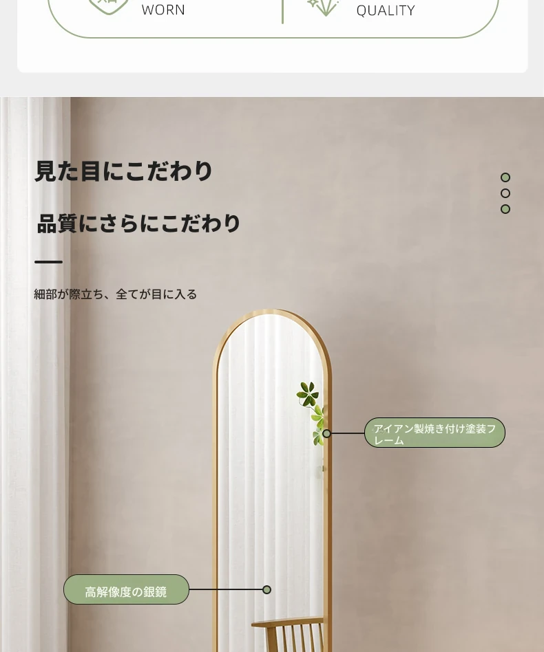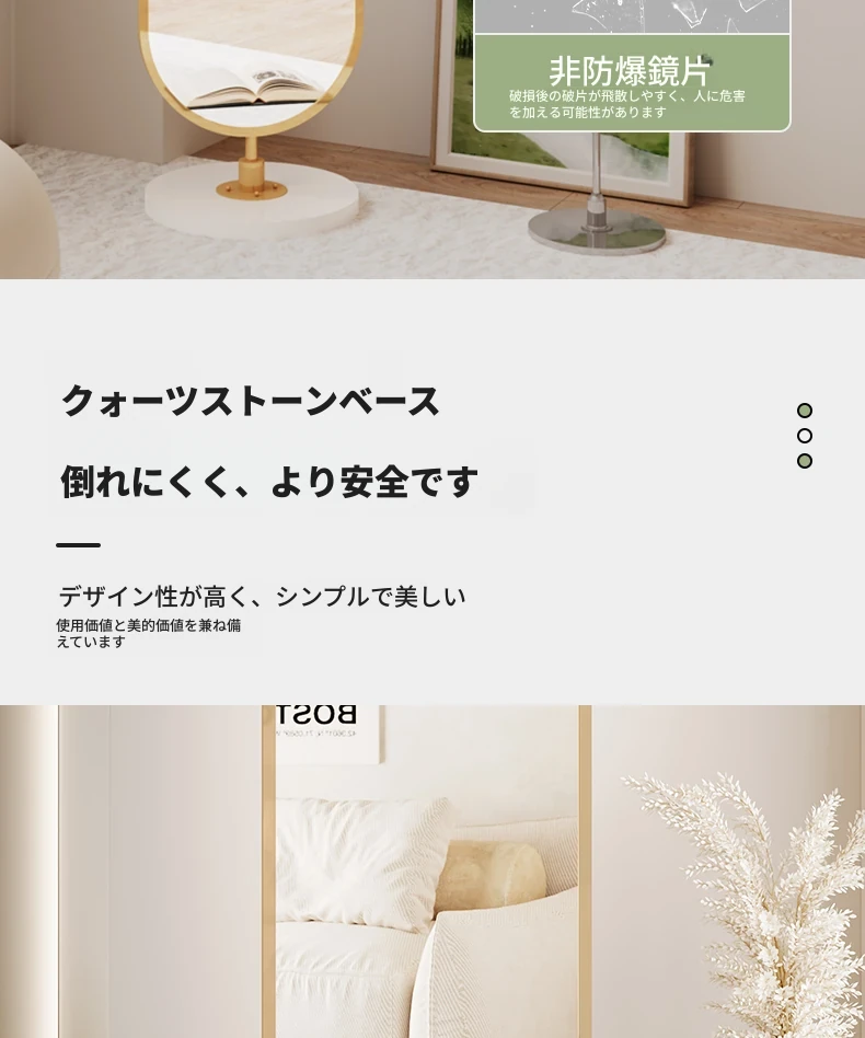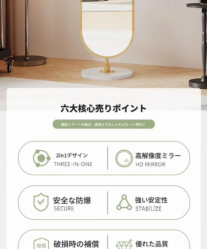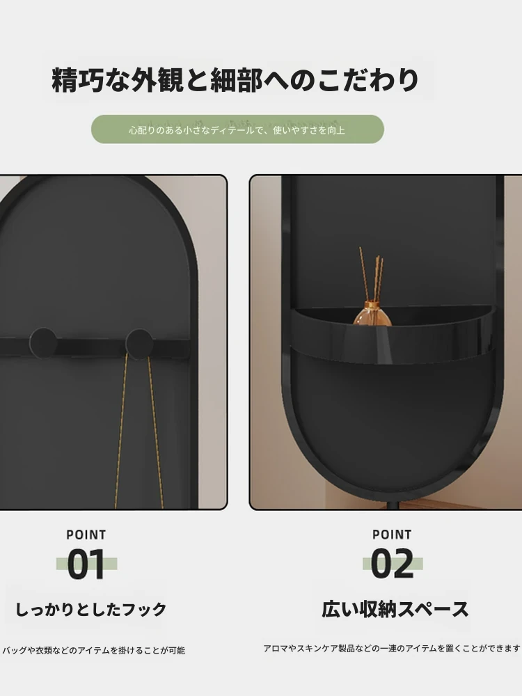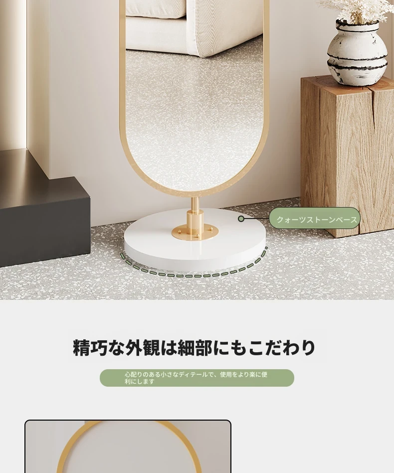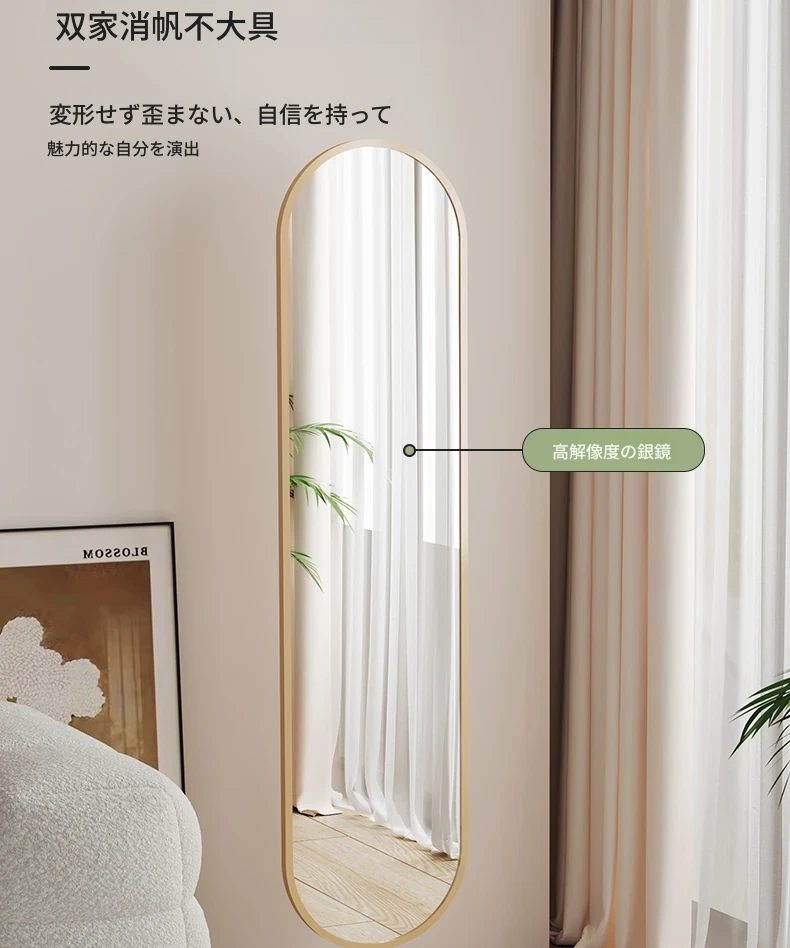 クリーム風家用全身鏡 - シンプルでスタイリッシュな立体型、寝室に最適な回転式試着鏡!小型スペースにぴったりフィット、コーディネートを楽しくサポートします。あなたのスタイルを引き立てる一品!