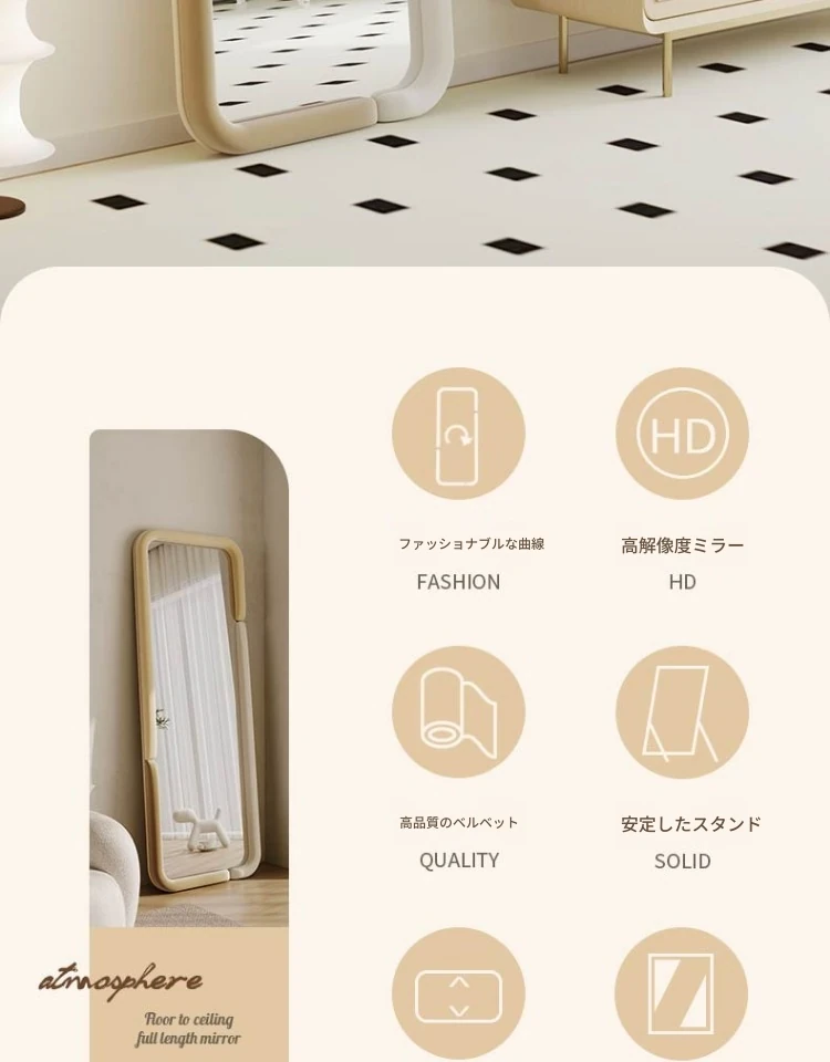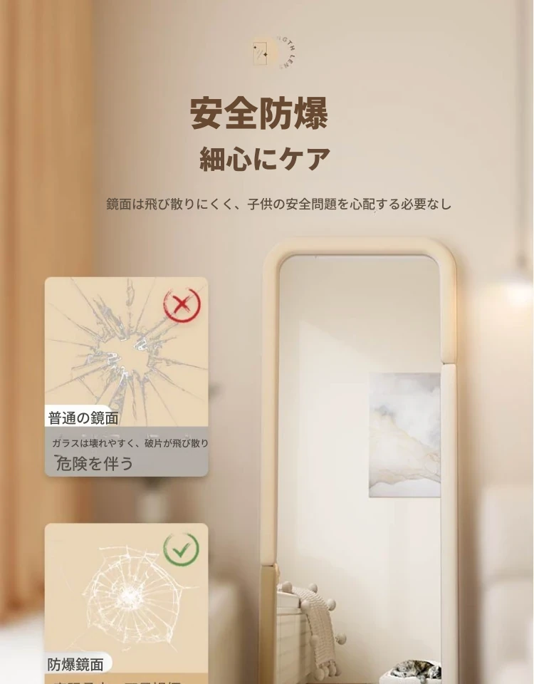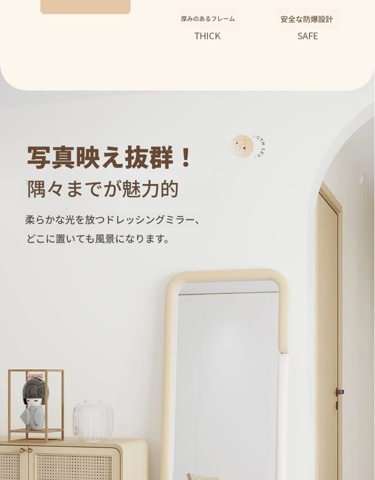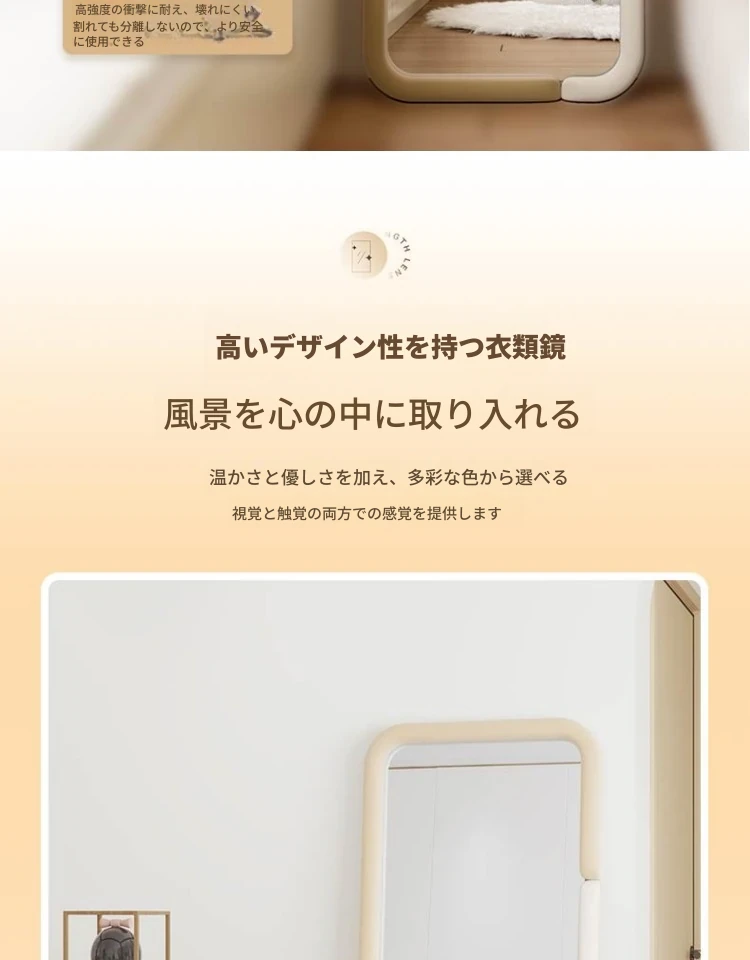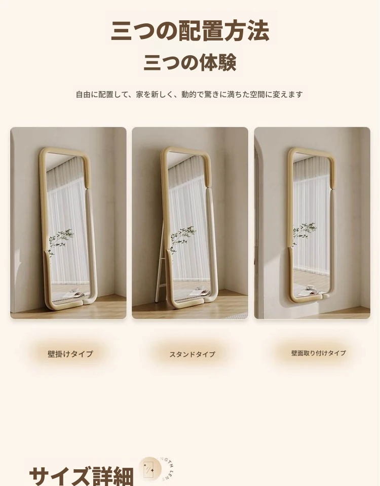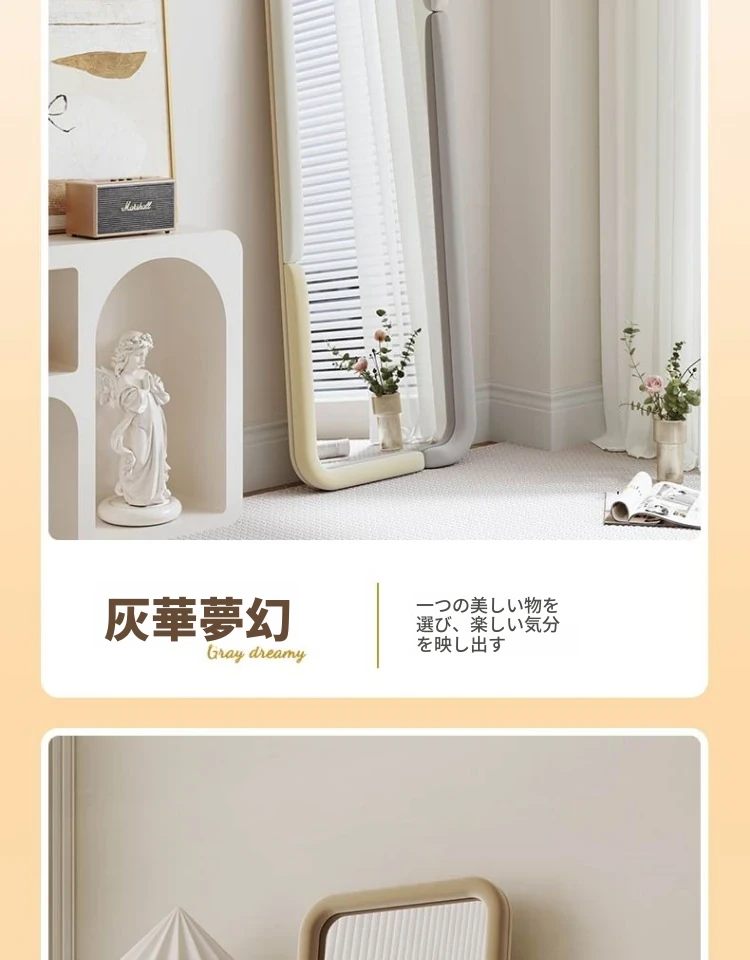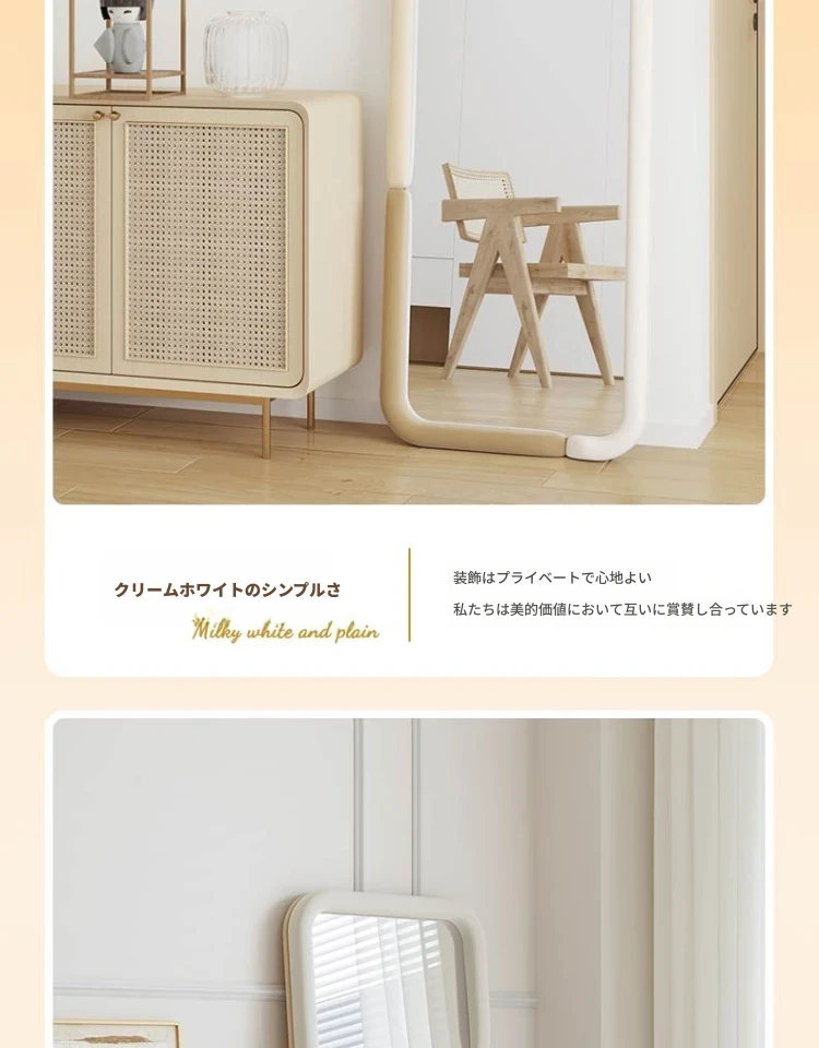 クリーム風アーチ型全身ミラー 壁掛け式 高級感のあるドレッシングミラー インスタ映えする立て掛けミラー 家庭用試着ミラーで、スタイリッシュなコーディネートを楽しむ!