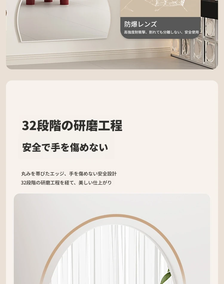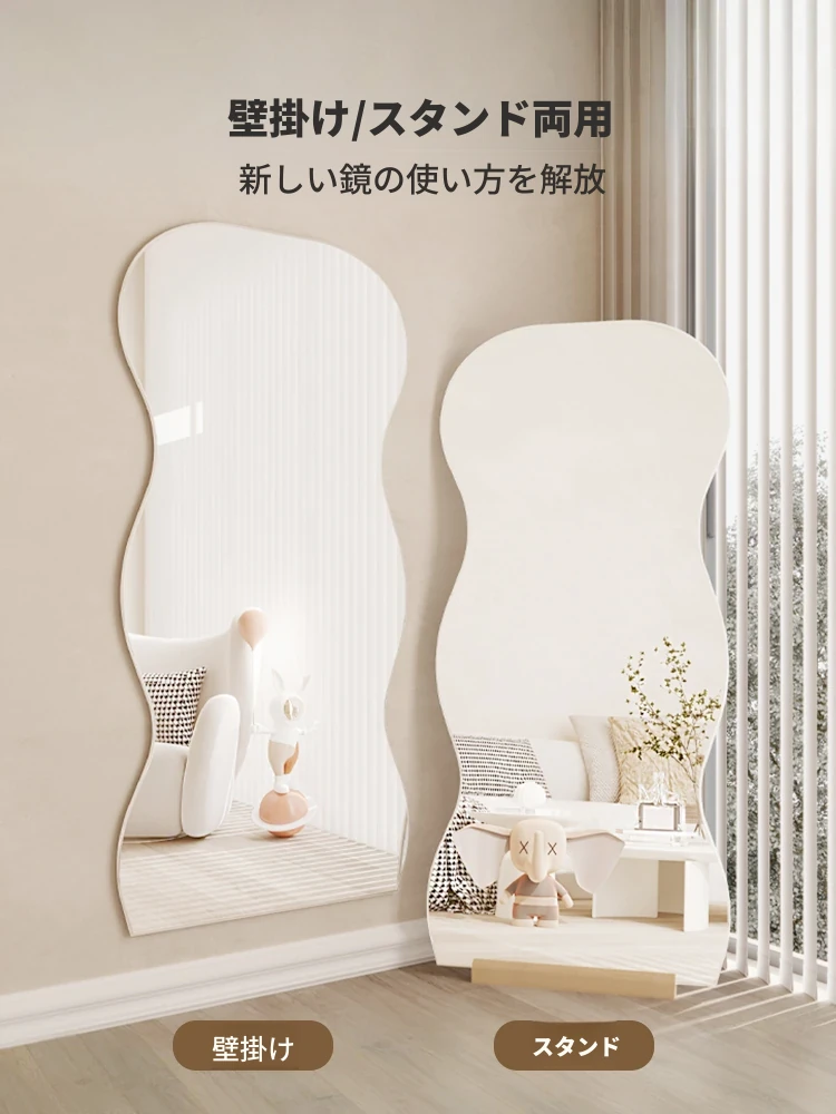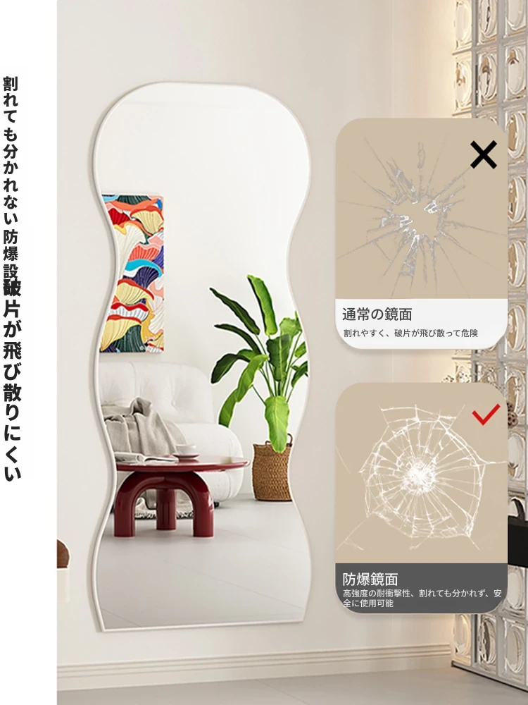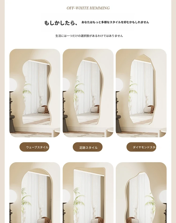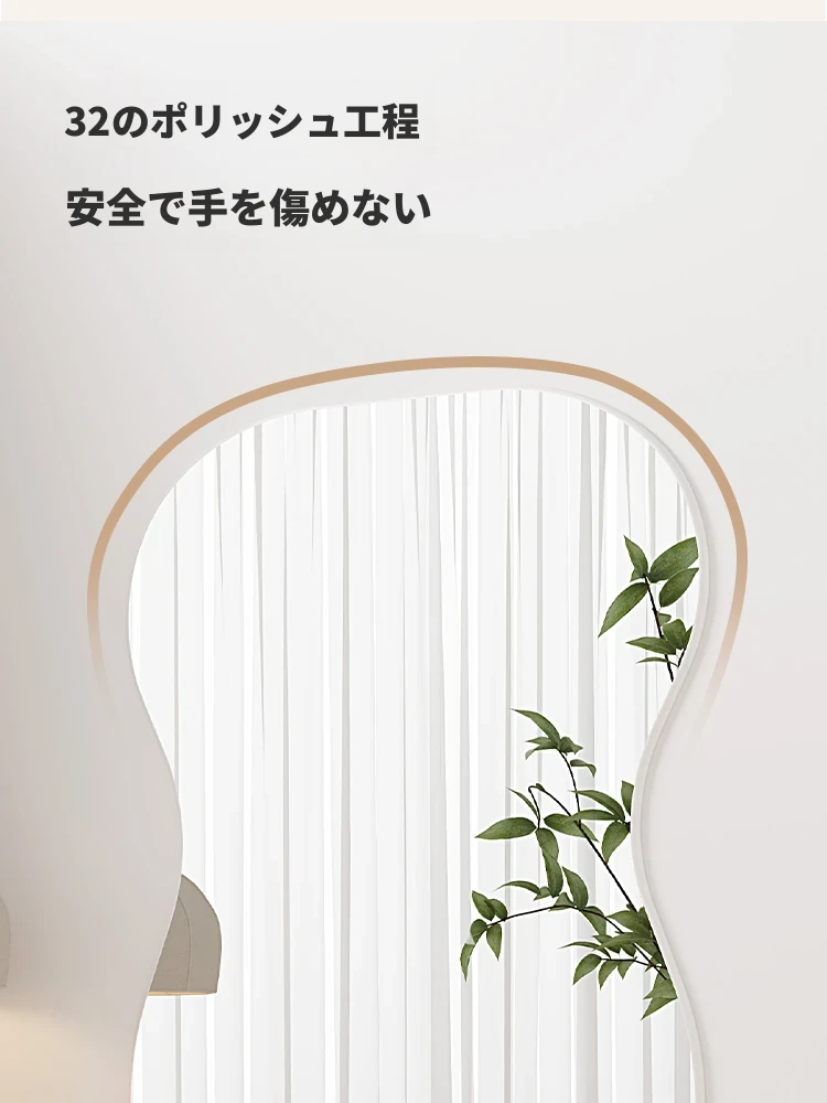 高級感漂うクリーム風全身鏡 - 女の子の寝室にぴったりの壁掛け不規則デザイン!おしゃれな試着用ミラーで、毎日のコーディネートを楽しもう。
